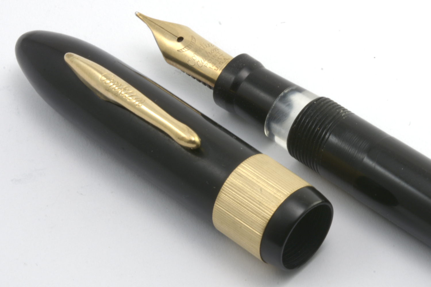 Denna penna ser ut som en Glider, om än något längre och med en betydligt bredare huvring. Pennan har det karakteristiska bläckfönstret placerat i förstycket, den har ett Cushion Point-stift (vilket enligt uppgift alla Glider-pennor var försedda med) och den är en hävstångsfyllare – så är det inte en Glider är det en väldigt nära »släkting» designad och tillverkad vid samma tidpunkt. Inskriptionen på behållaren är identiskt med den »vanliga» Glider - och talar följaktligen om att pennan är tillverkad efter Conklins flytt till Chicago - och baserat på dessa iakttagelser gissar jag att detta är en (proto?) Glider tillverkad cirka 1938-1940 med lite högre kvalitetsambitioner än senare Glider-modeller.