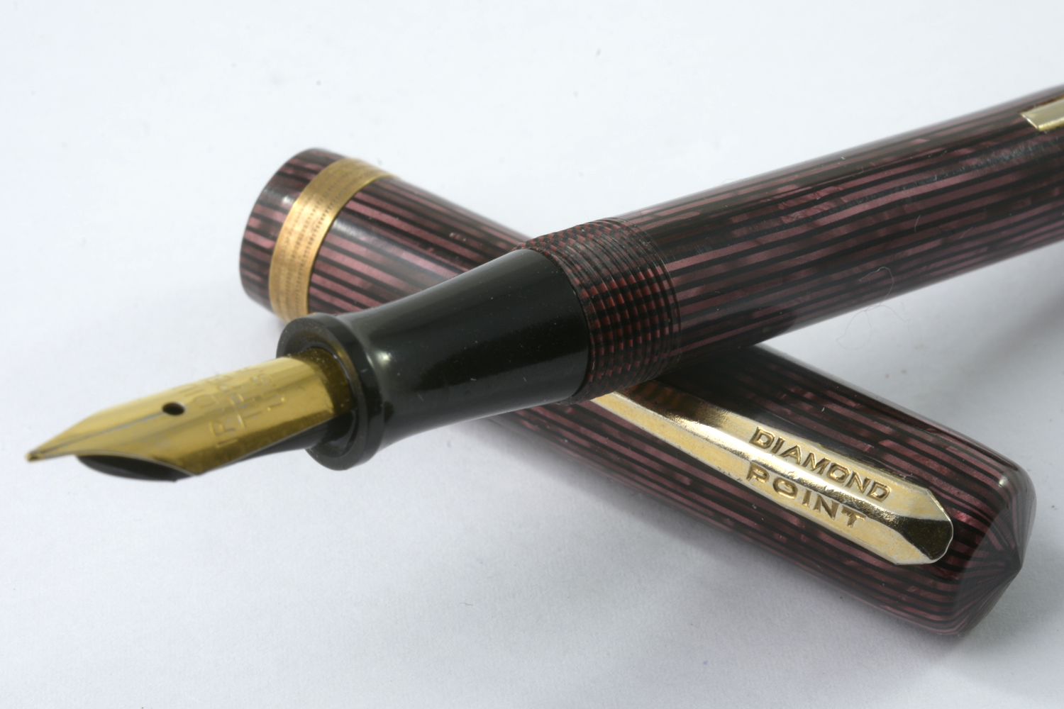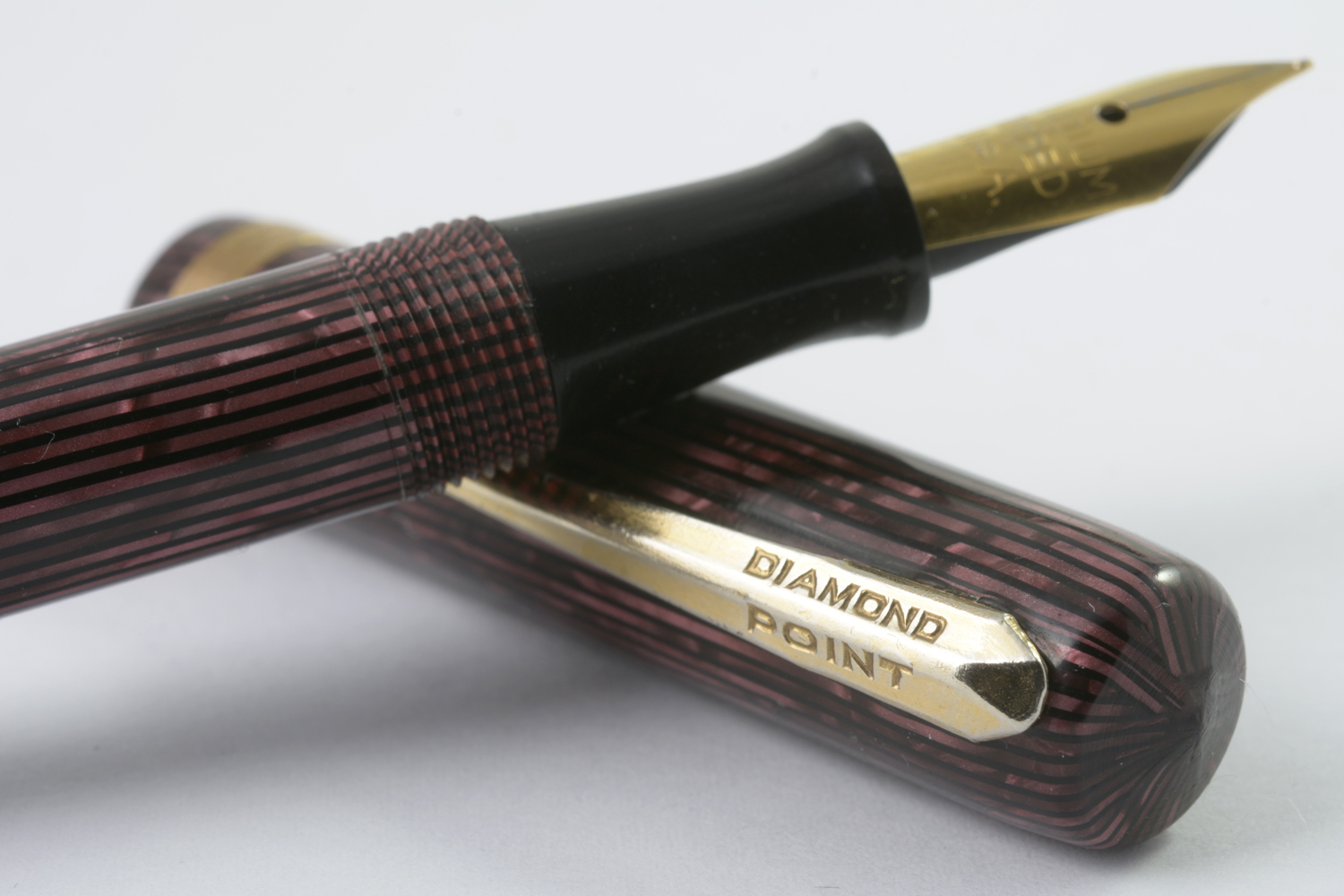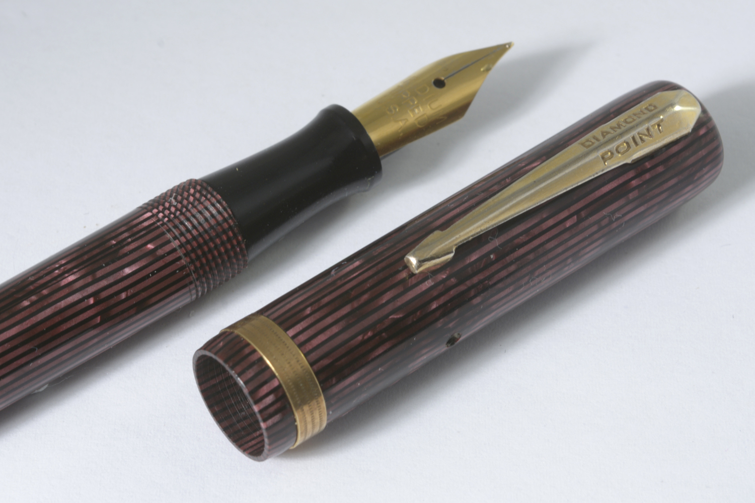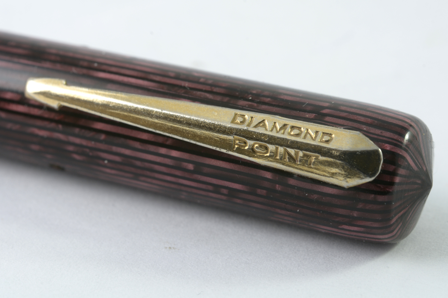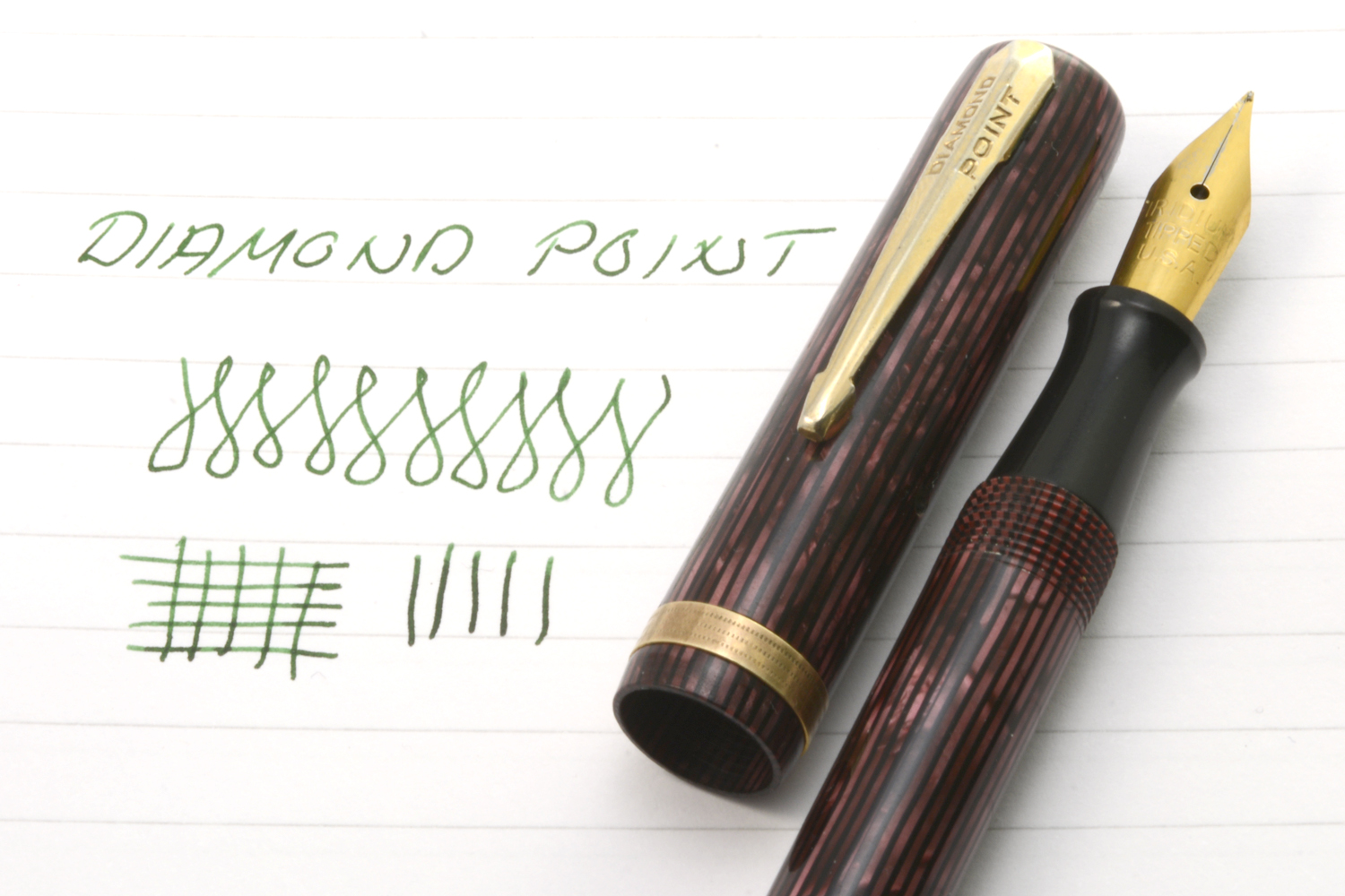 Diamont Point tillverkade budgetpennor – något som på denna penna framför allt lyser igenom på metalldelarnas tunt pålagda förgyllning och det gulfärgade stålstiftet – men som budgetpenna är den synnerligen välgjord utan egentliga tecken på att vara åttio gammal. Den är välbalanserad och ligger bra i handen, och dess stålstift är riktigt skönt att skriva med.