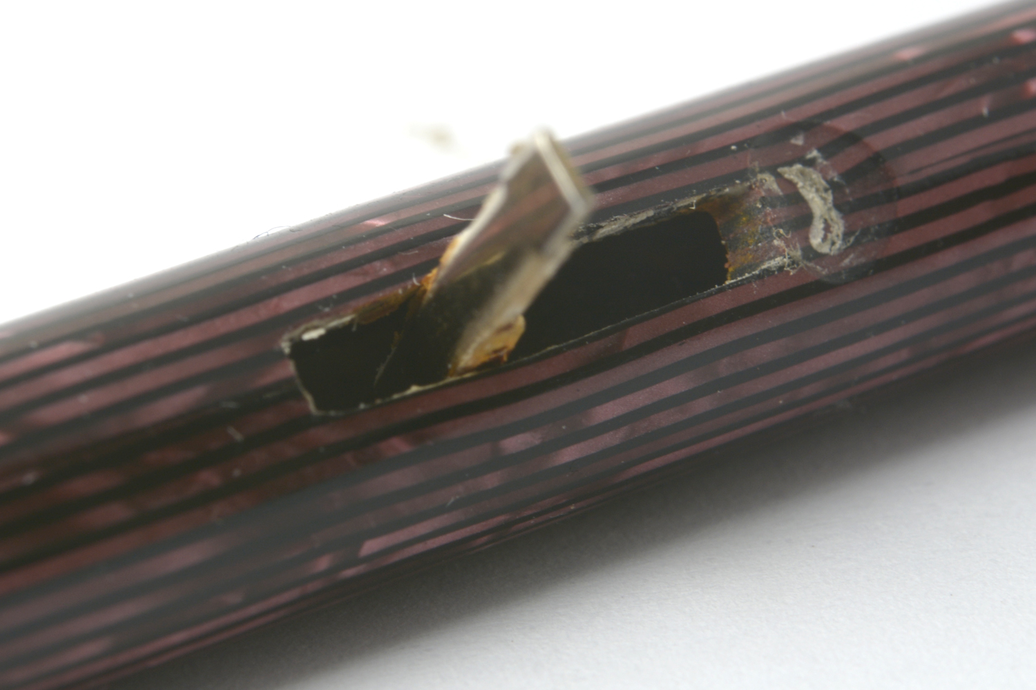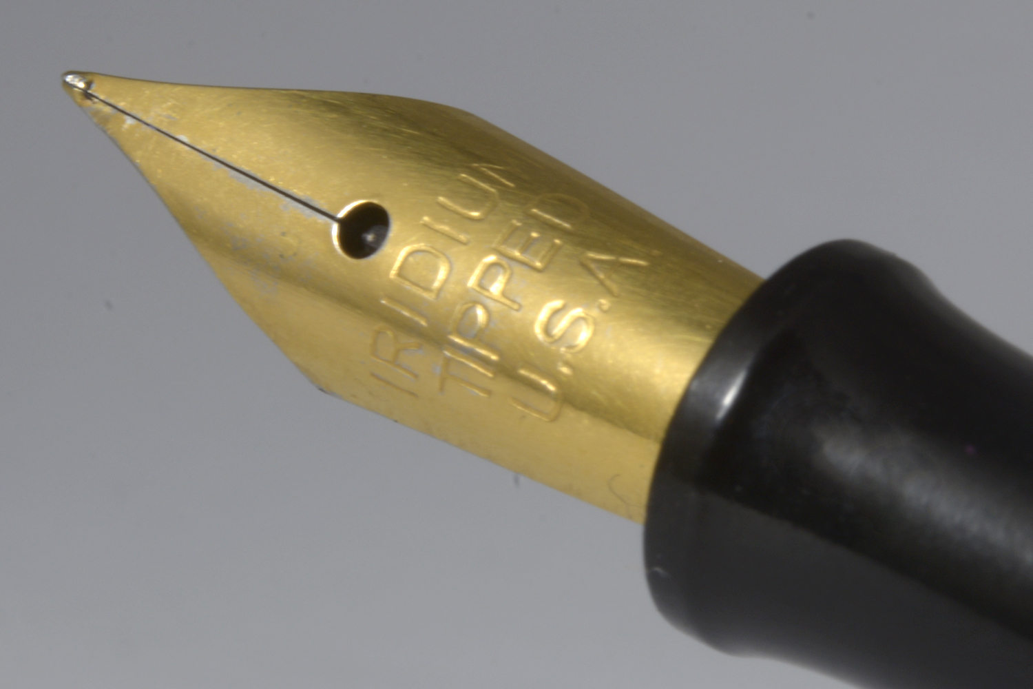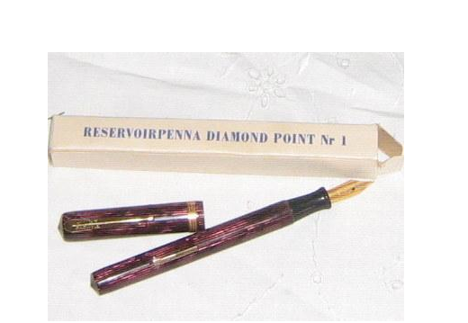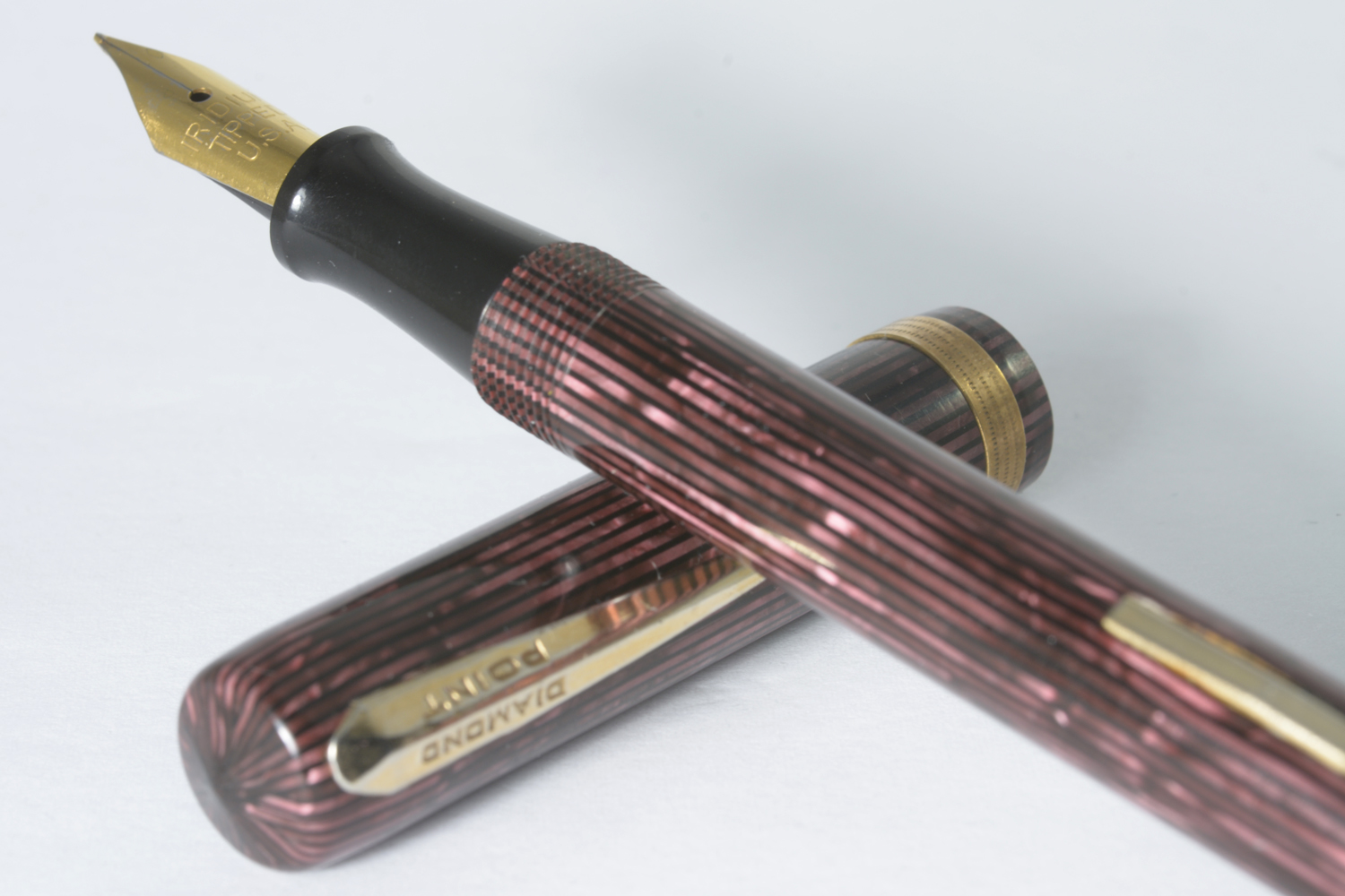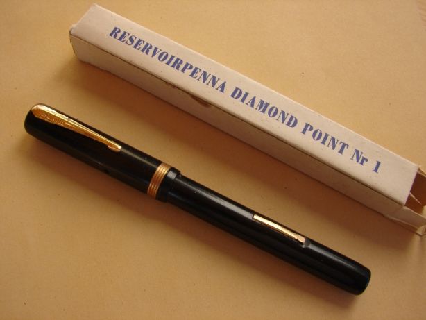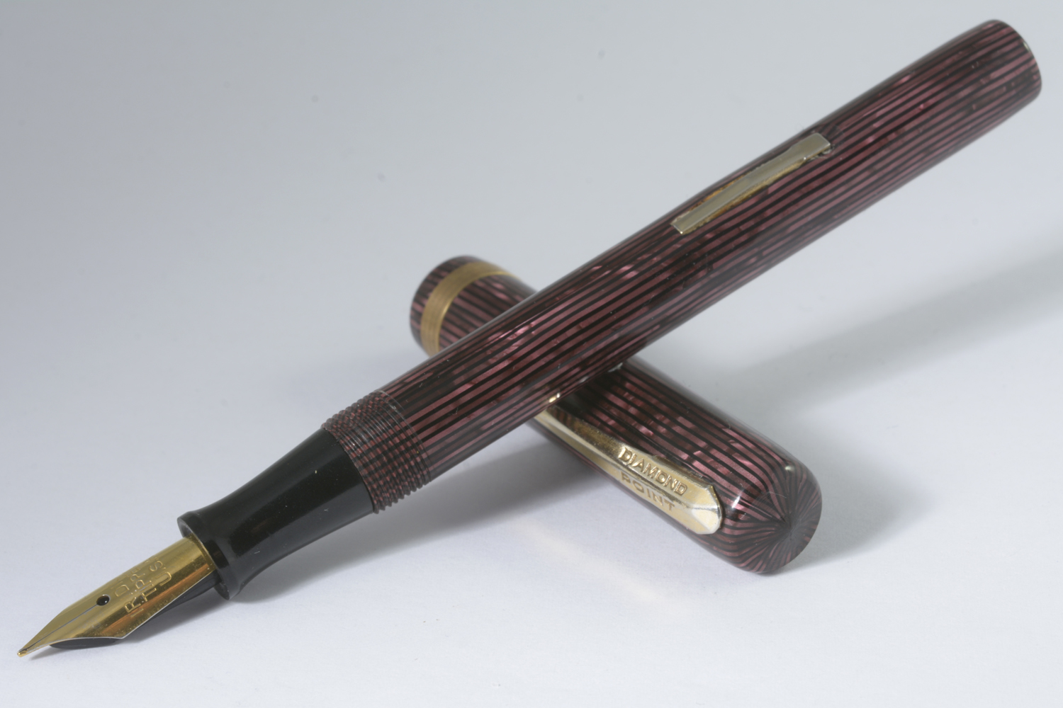 Diamont Point tillverkade budgetpennor – något som på denna penna framför allt lyser igenom på metalldelarnas tunt pålagda förgyllning och det gulfärgade stålstiftet – men som budgetpenna är den synnerligen välgjord utan egentliga tecken på att vara åttio gammal. Den är välbalanserad och ligger bra i handen, och dess stålstift är riktigt skönt att skriva med.