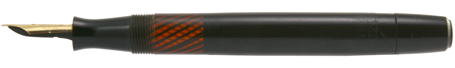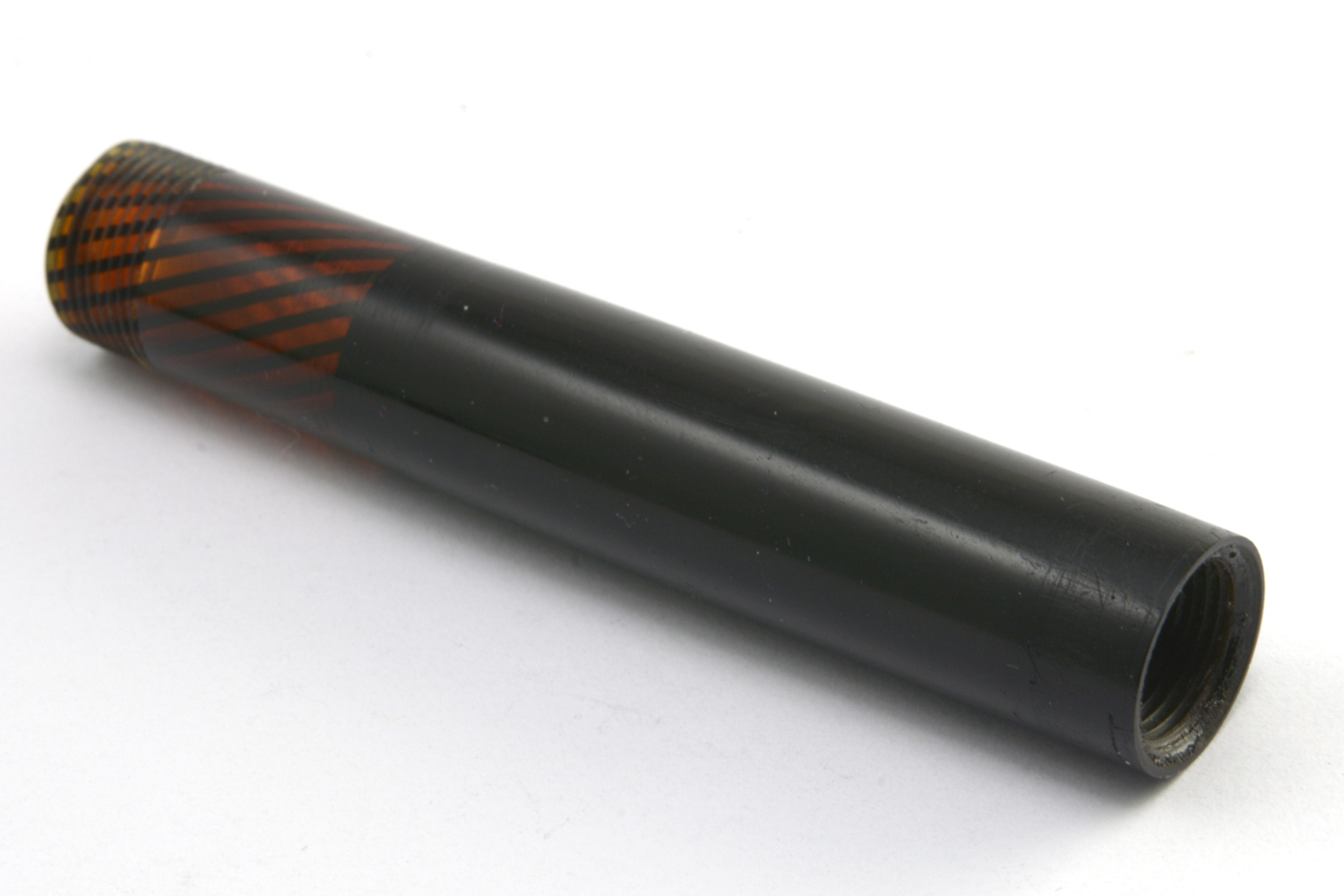 Behållarens bläckfönster är bärnstensfärgat med ett diagonala ränder i svart och 13 mm långt.