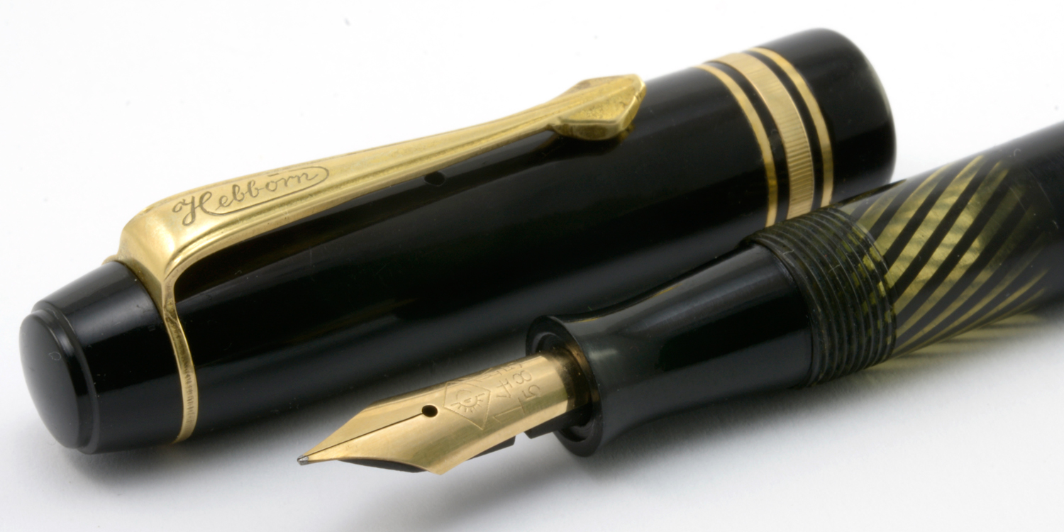 Denna Hebborn 57 är en – för 1930/40-talet – normallång penna som exteriört är anmärkningsvärt lik en Matador 974 från samma tid (eller möjligtvis tvärtom), vilket inkluderar såväl bläckfönstrets färg och mönster som clipsets utseende. Både denna och en annan liknande 57:a är försedda med ett Degussa-stift, varför en kvalificerad gissning är att dessa pennor levererades med dessa stift. Om stiftet är original borde pennan vara tillverkad mellan 1932 och 1939 – alternativt efter 1945 eftersom Nazityskland under krigsåren förbjöd tillverkning av guldstift – där jag tentativt gissar att denna penna är tillverkad omkring år 1938.