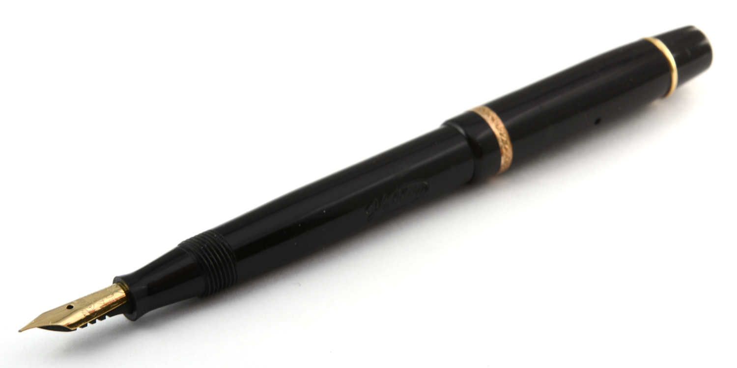 Utseendemässigt har pennan en »tidlös» design som gör den svår att datera, där den detalj jag gillar bäst är huvringen med sitt sirliga kedjemönster. För mig är detta en svårdaterad penna. Att det är en pumpfyllare kan tyda på att den är tillverkad före 1940 – tillverkade Hebborn/Luxor några pumpfyllare efter 1935? – men å andra sidan är pennan så smal att den troligen inte går att tillverka som en kolvfyllare. En tentativ datering är någonstans mellan 1935–1945.