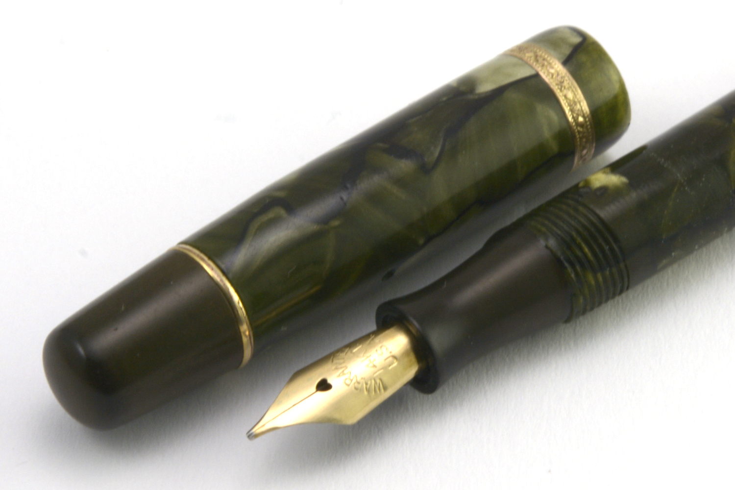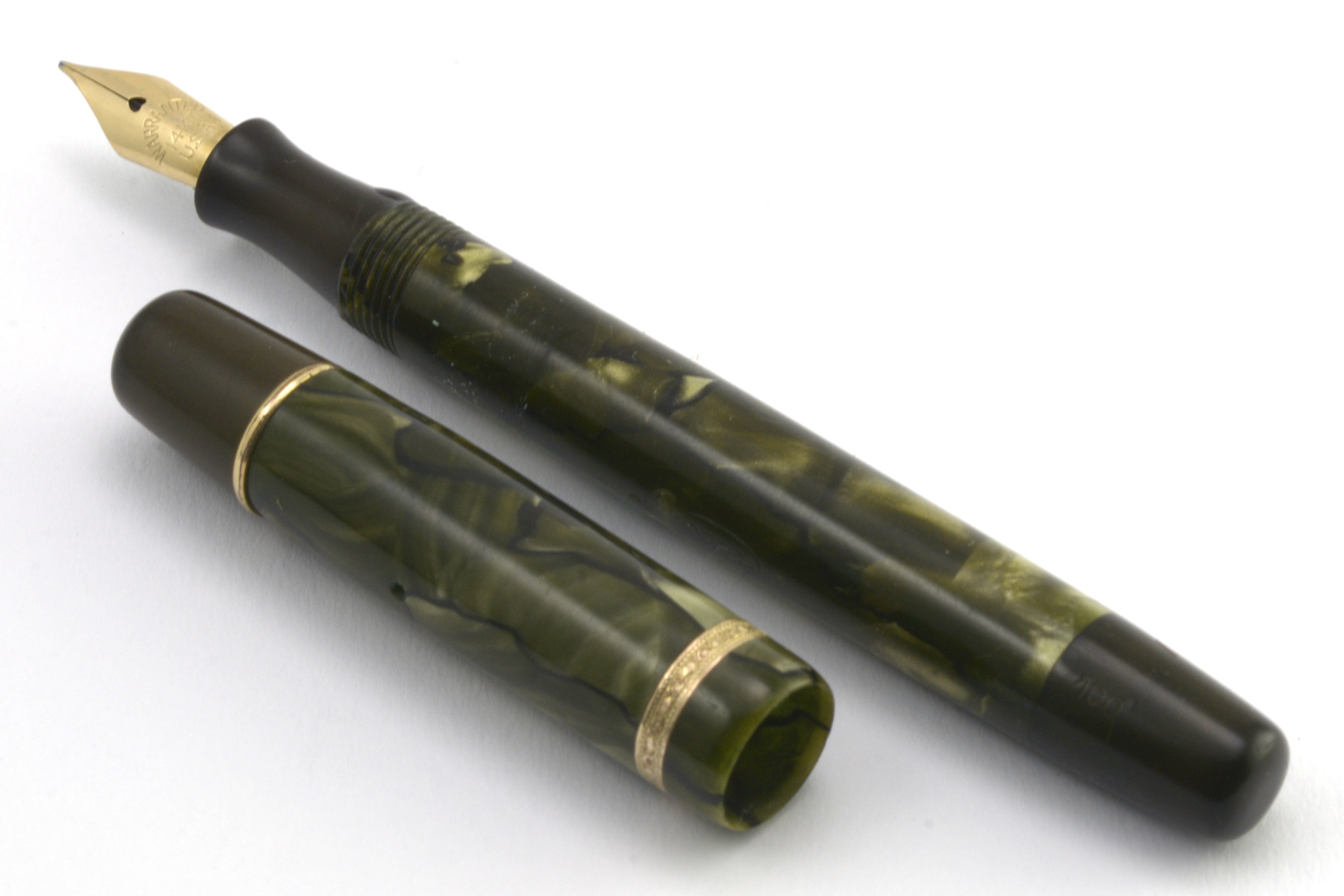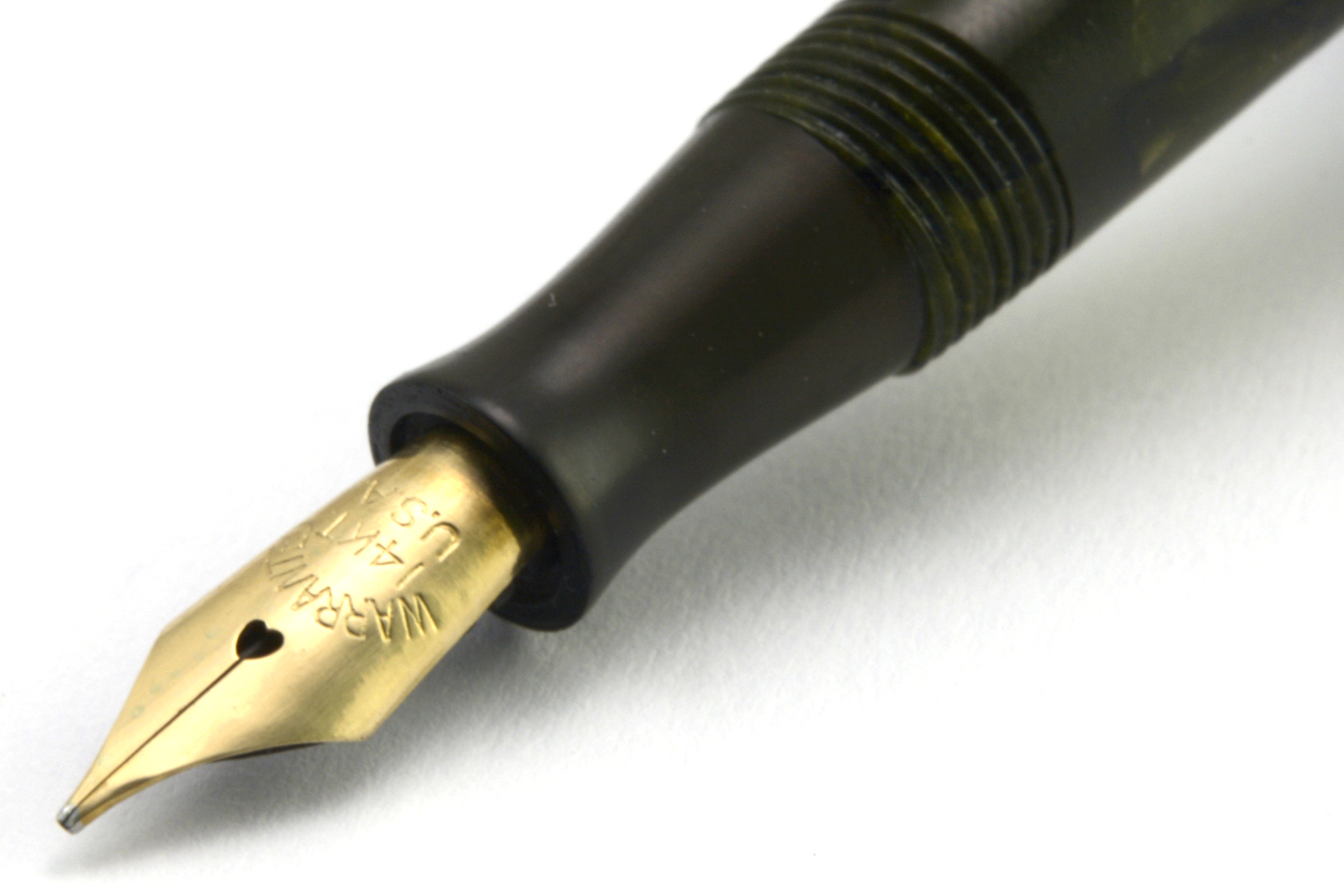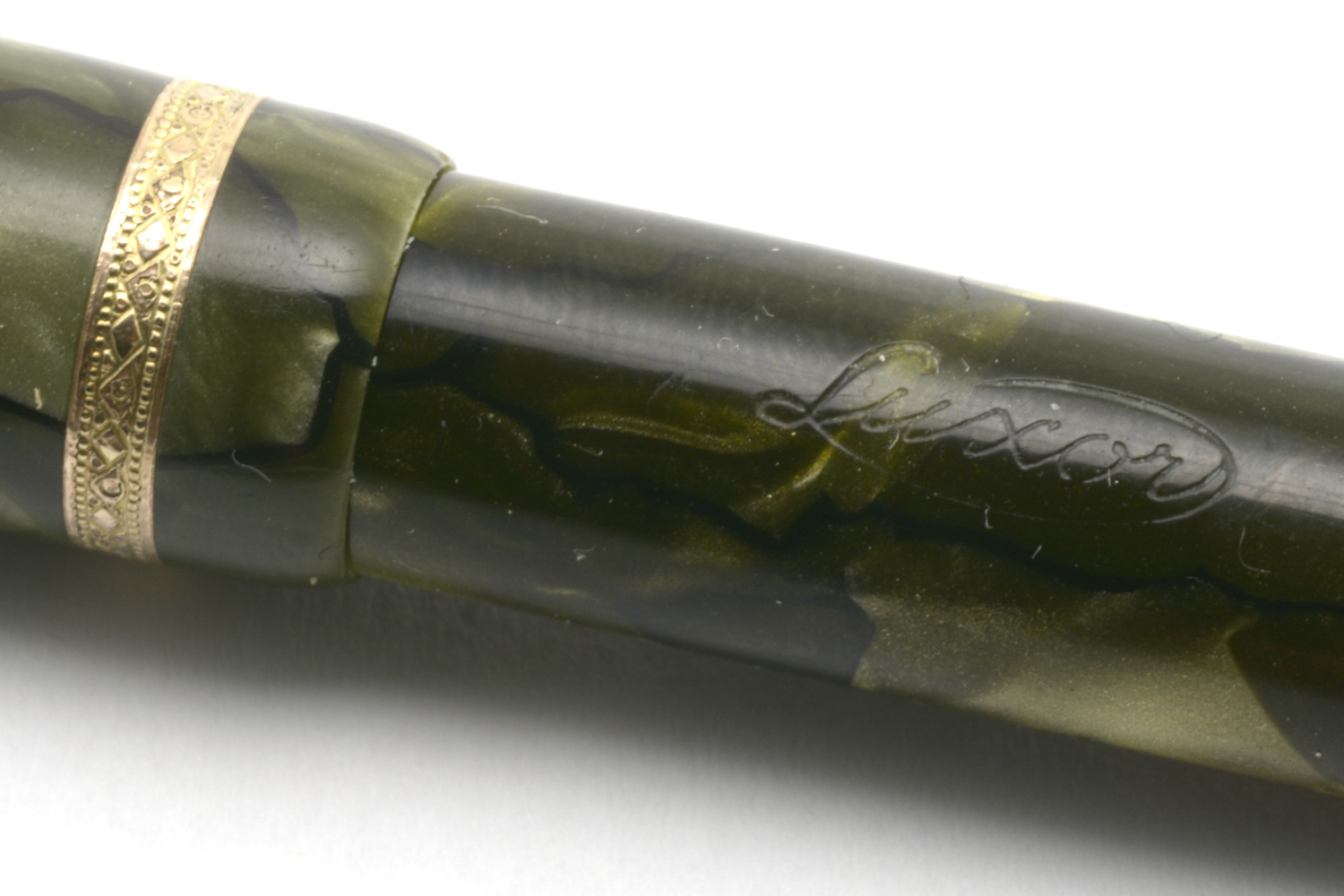 Denna grönmarmarmorerade Luxor 100 blev en positiv överraskning. Trots sitt smäckra yttre uppträder den som en »vuxen» penna och det amerikansk-tillverkade guldstiftet med F/M-bredd är härligt följsamt och skönt att skriva med. Stiftet har ingen flex att tala om, och lite beroende på hur stiftet ligger mot pappret kan ett svagt raspande uppstå. I min hand skriver pennan nästan helt ljudlöst med bra bläckflöde – även vid snabbare rörelser – och kräver i princip inget spetstryck.