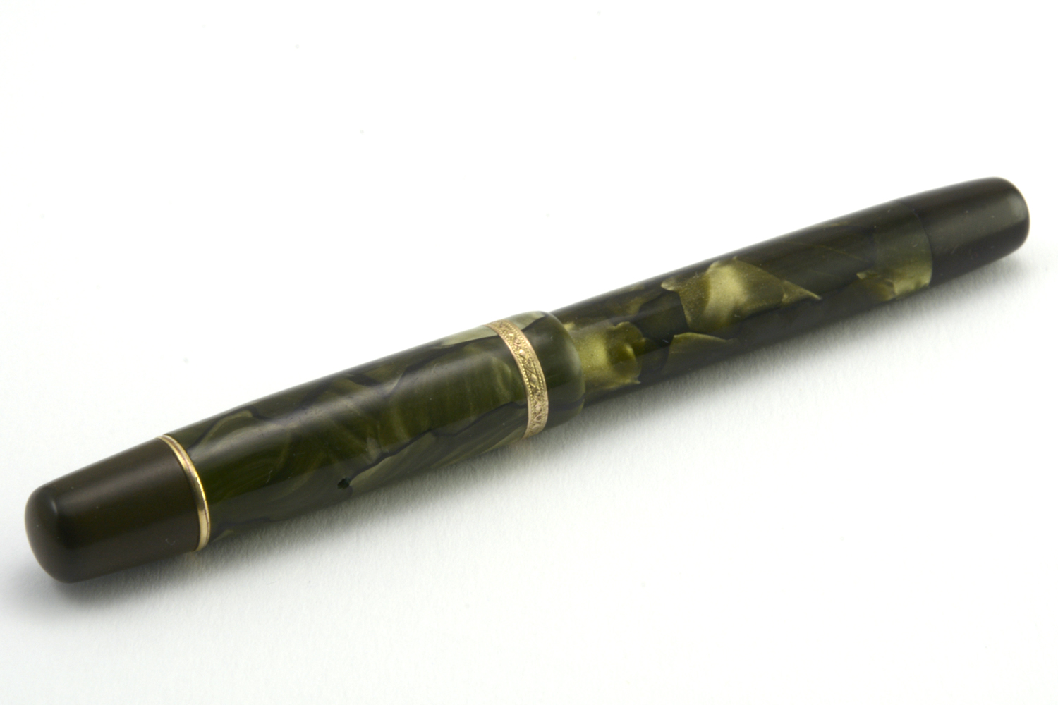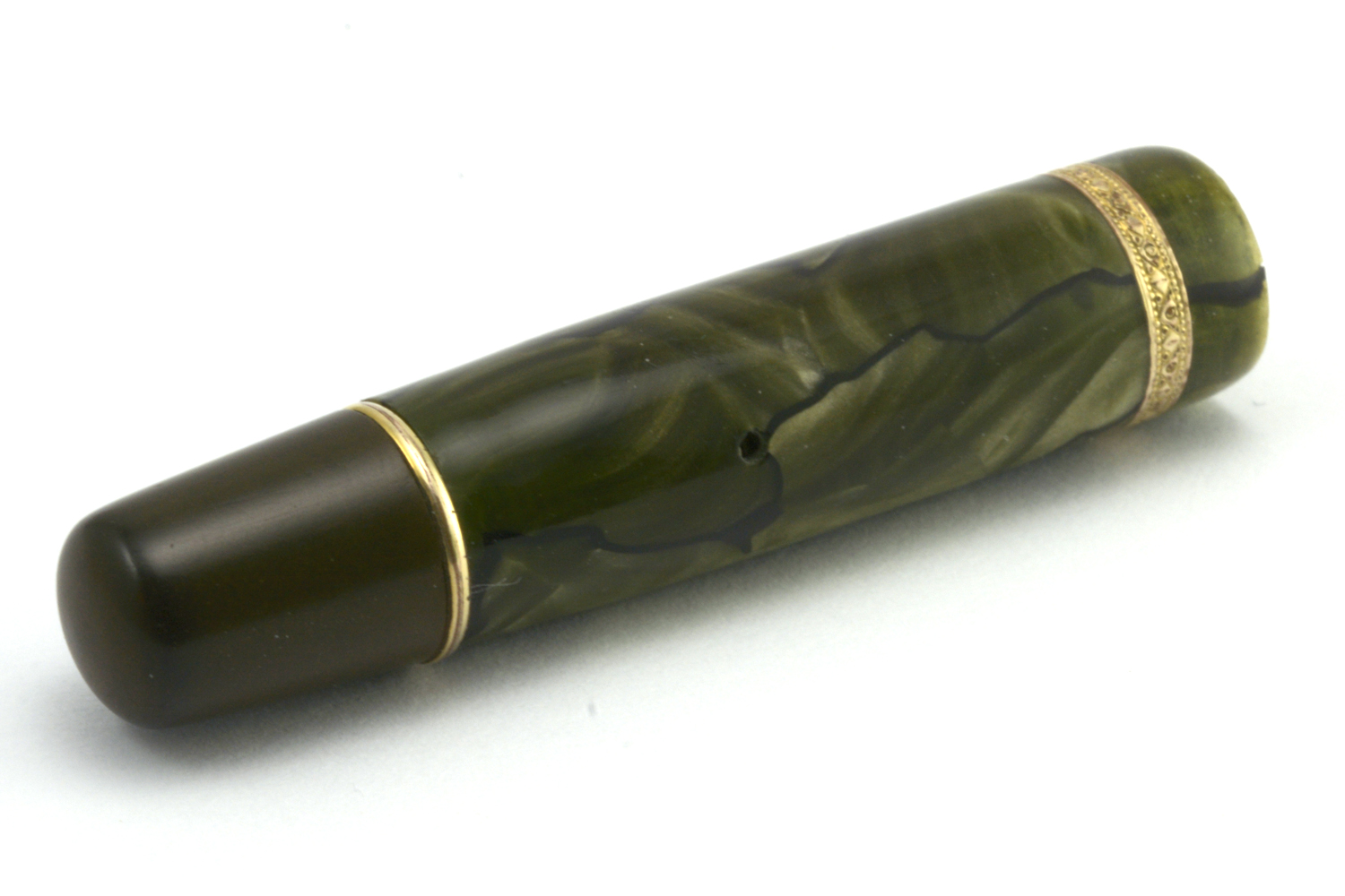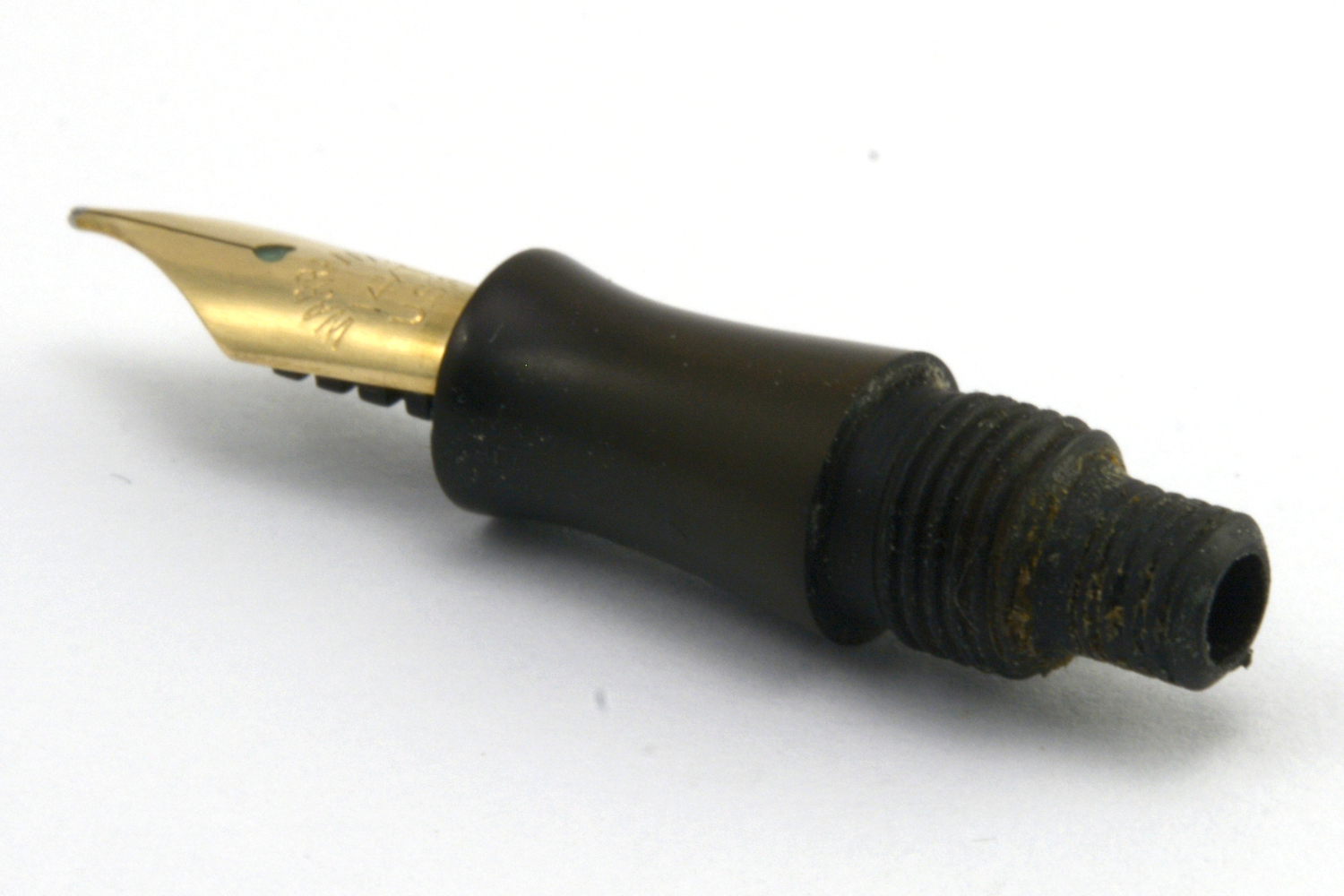 Pennan var oproblematisk att renovera, där jag valde att demontera pennan så lite som möjligt. Förgyllningen är – med tanke på åldern – helt okej, och med blotta ögat syns inte de slitna delarna. Pennans tryckmekanism är märkt med en inskription – "HOMACC J.R.G.M. – som jag inte mött tidigare och inte heller lyckats dechiffrera.