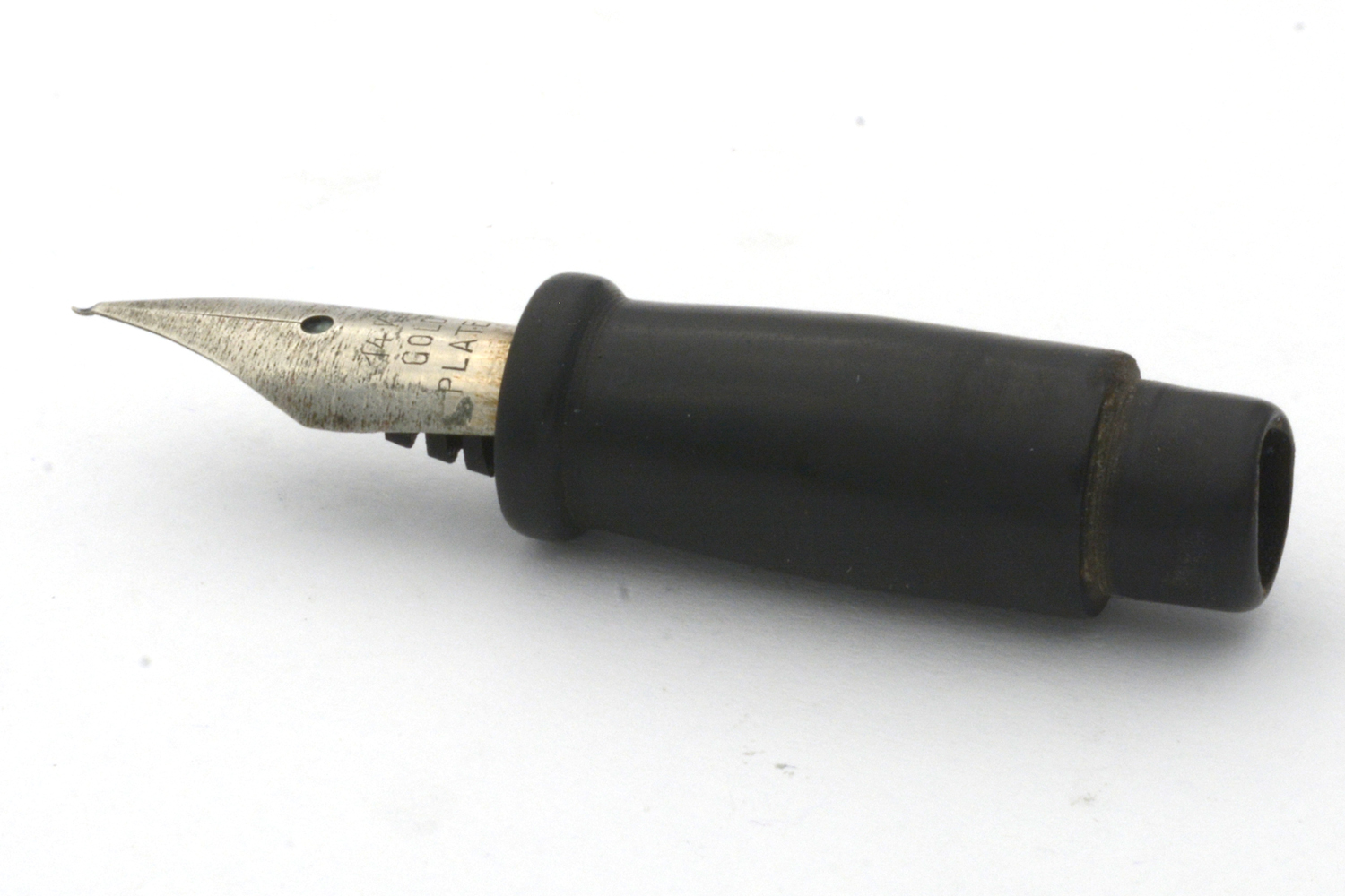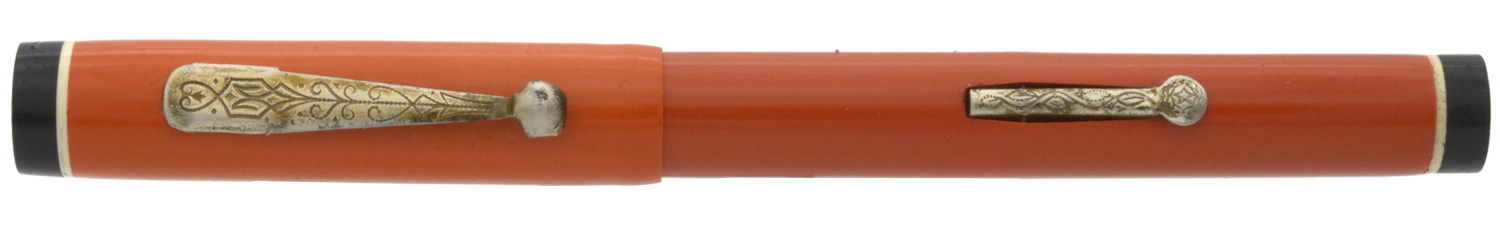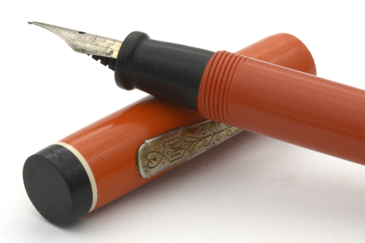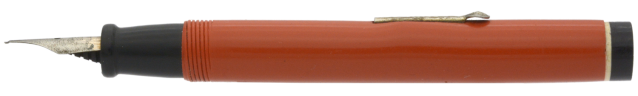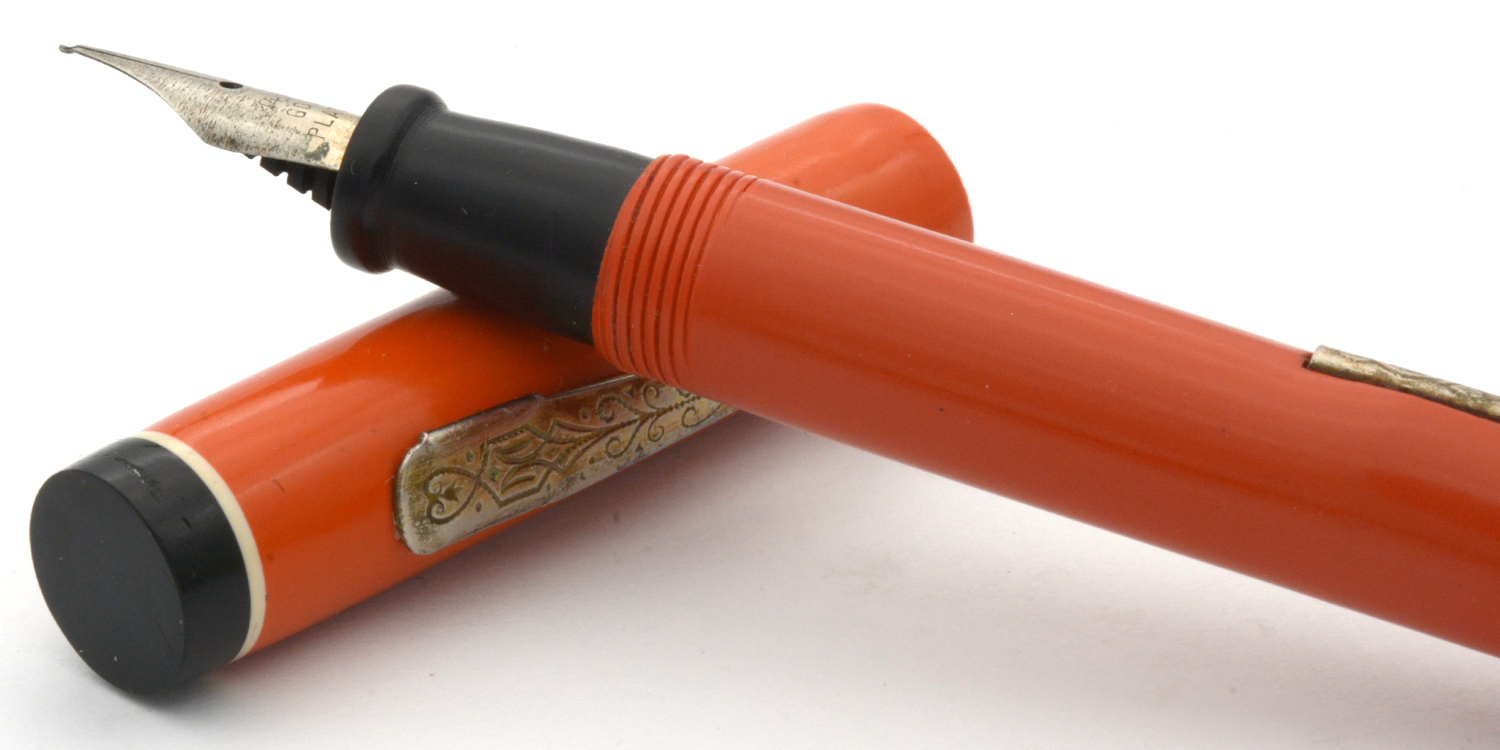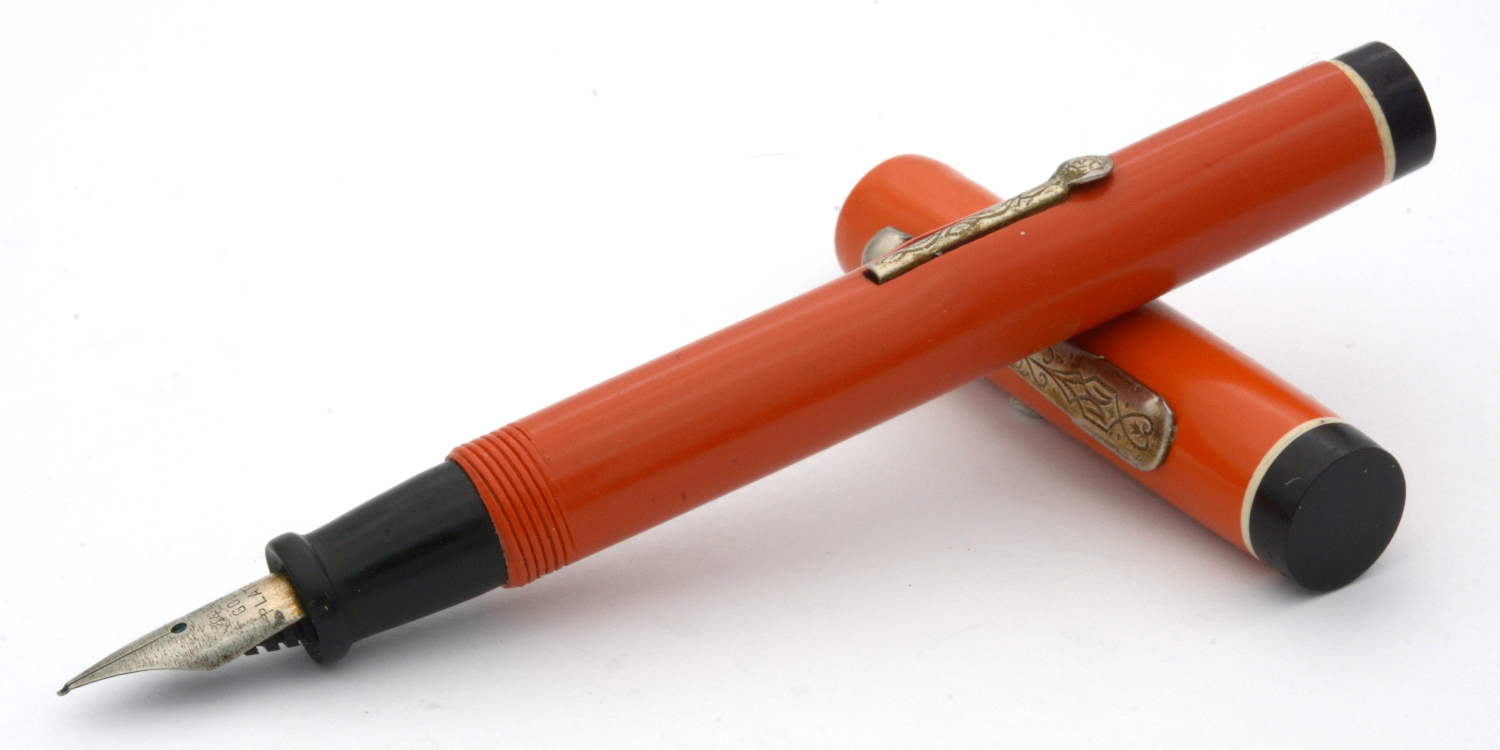 Denna tysktillverkade, namnlösa penna är en budgetpenna med en stor dos rustik charm. Den har en formgivning som direkt hämtad från Parkers Duofold och Watermans 1920/30-talspennor, vilket man kombinerat med sirlig gravyr på pennan clips och hävstångsfyllare. Dessa var troligen, precis som pennans stift, förgyllda när pennan var ny, men idag återstår bara små spår av denna gula färg. Stiftets spets har en liten »krok» istället för iridium, och även om stiftet därmed inte är lika mjukt och följsamt som ett stift med iridium så fungerar lösningen utmärkt. Vid lätt spetstryck skriver det med F/M-bredd för att med lite högre tryck ha flex till BB-bredd.