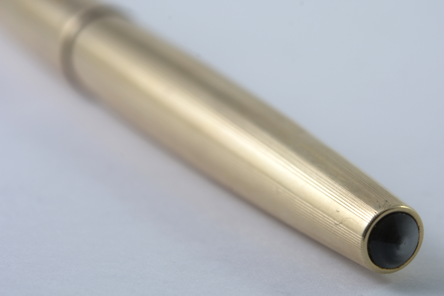 Mellan dessa finns dels Parker-logotypen, dels en »Parker-specialare» som visar att pennan är i 12 karat gulddouble