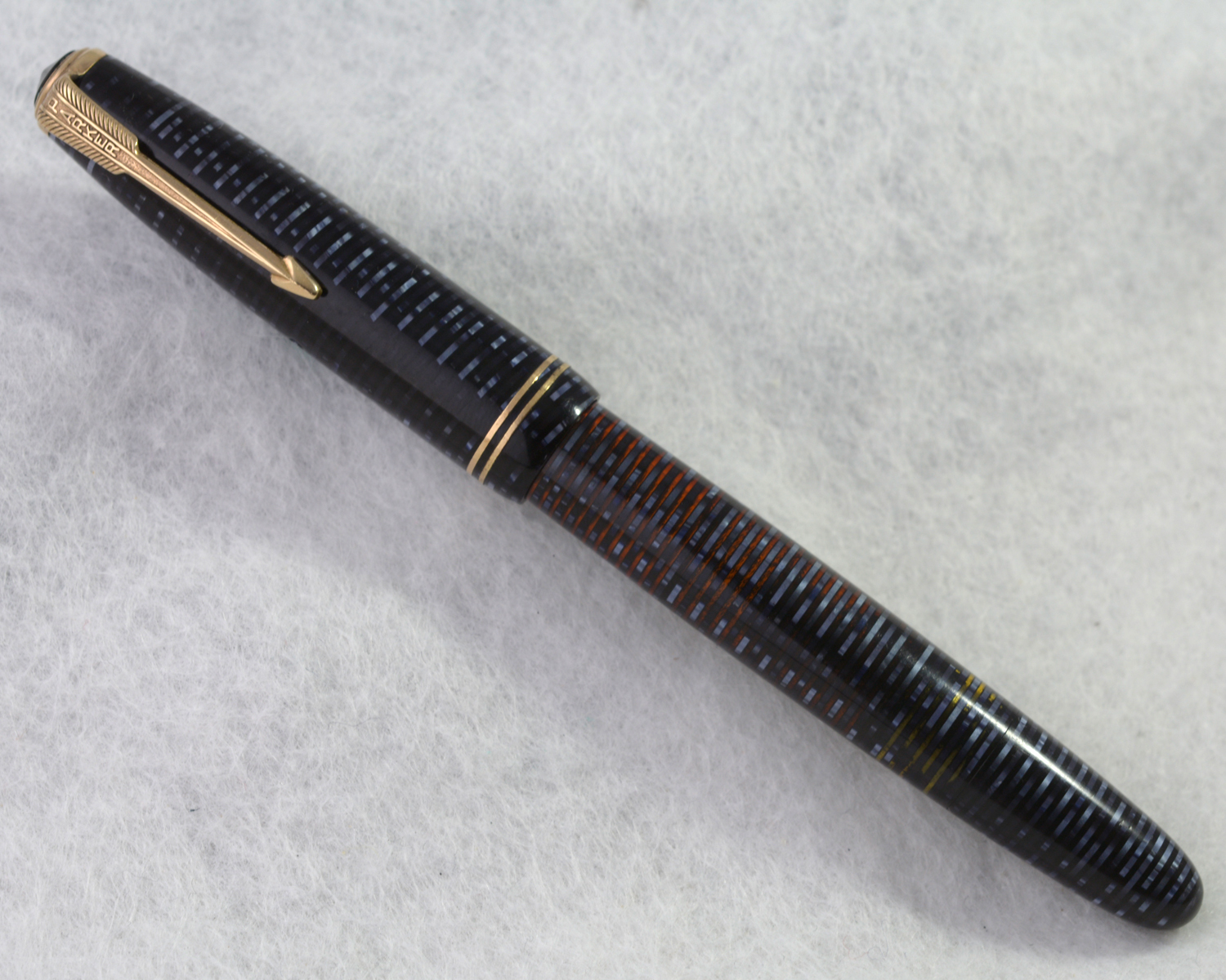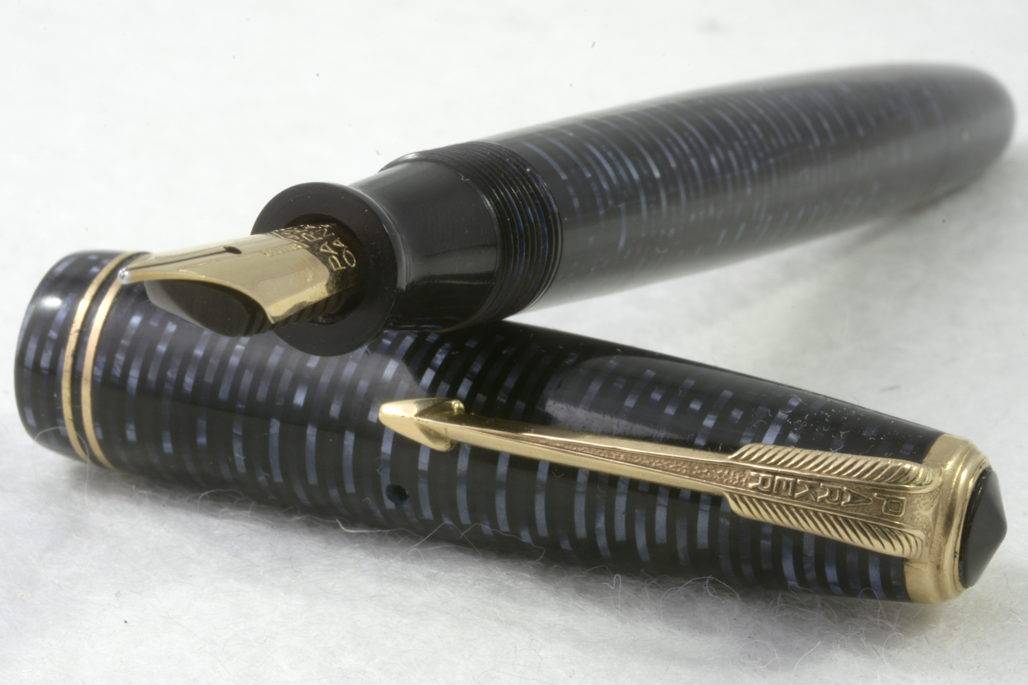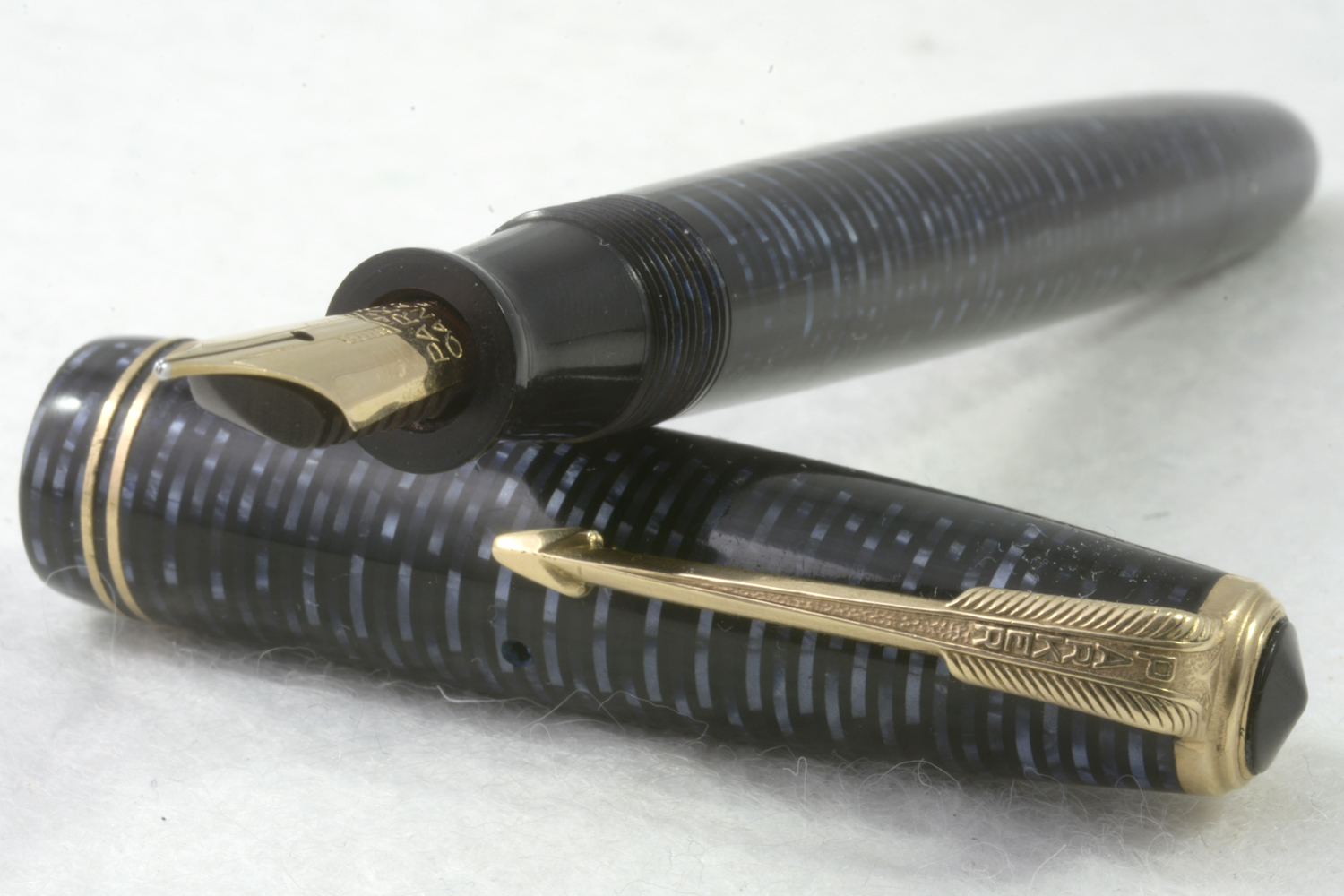 Stiftet är 14k guld, tillverkat av Parker i Kanada med präglat pil-mönster.