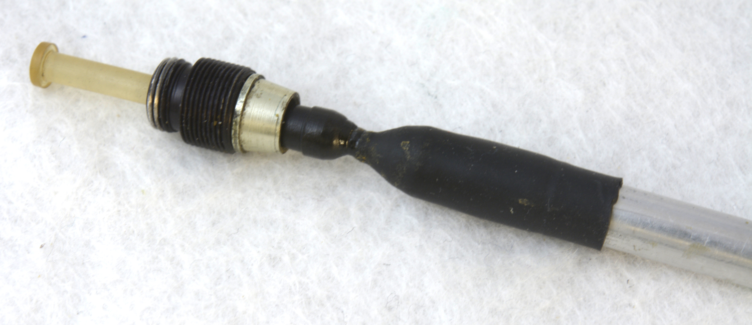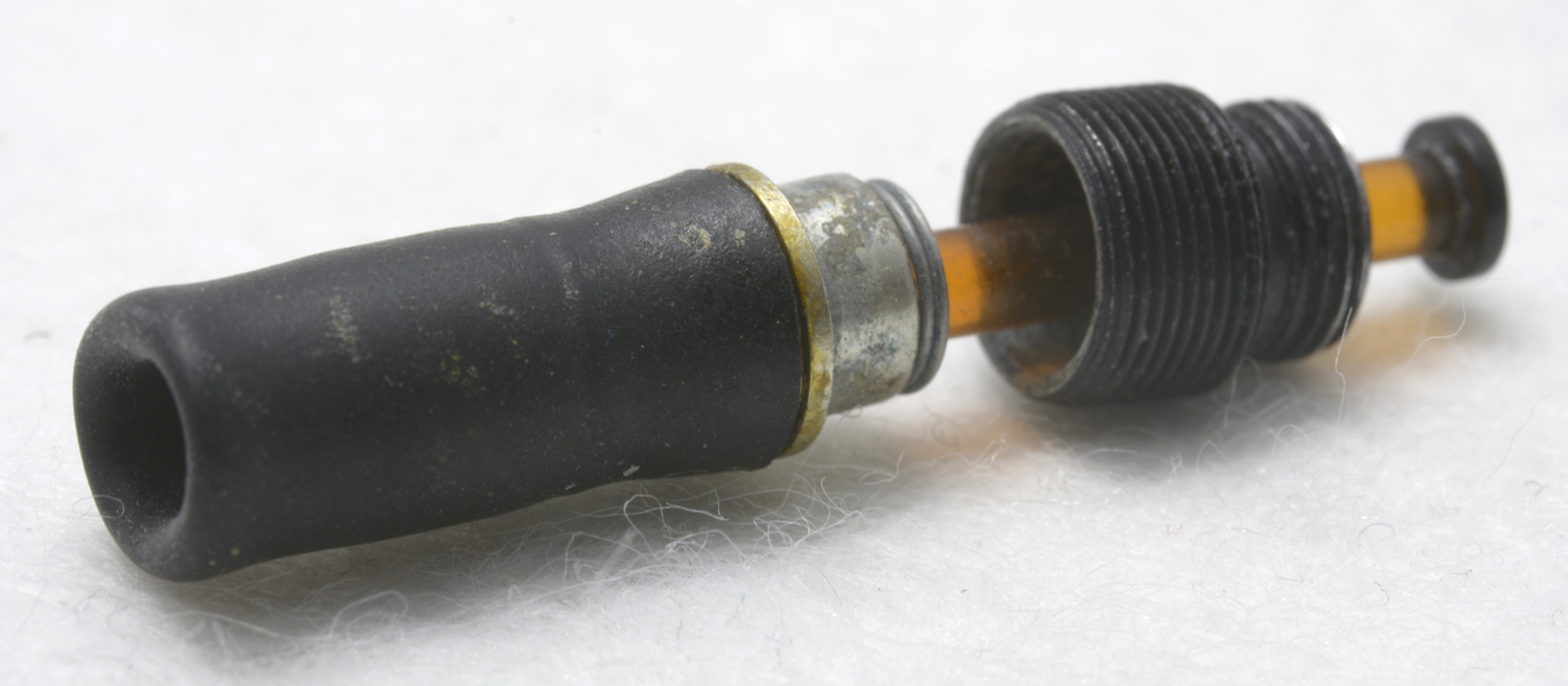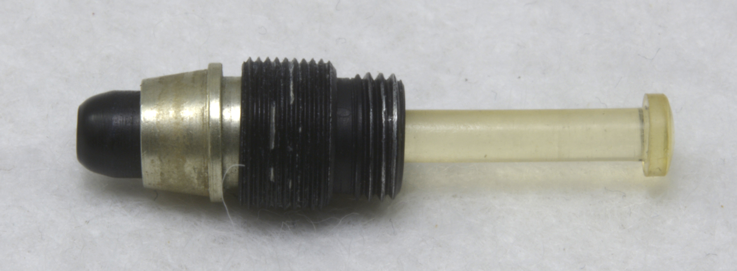 Tryckmekanismen är 34 mm lång, »tryckpinnen» är av bärnstensfärgad plast.