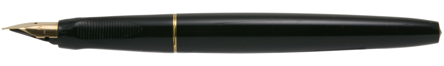 Den här pennan köptes enkom för min samling, och jag har varken putsat på den eller skrivit med den. Det enda jag gjorde var att köra förstycket och stiftet en stund i ultraljudstvätt så att stiftet gick att demontera. Förgyllningen på clipset visar tydliga spår av »brassing» men i övrigt är pennan i ett okej skick. En fundering rörande denna penna: hade alla svarta pennor en förgylld ring mellan behållare och förstycke, eller är detta en indikation på att denna penna borde haft en förgylld huv?