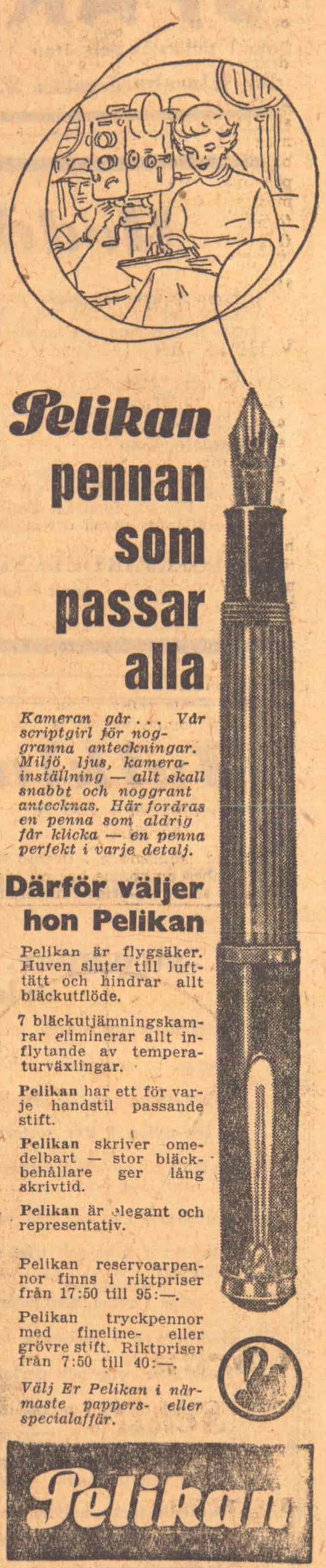 - I december 1954 började man använda Pelikan-logotypen på stiften; dessförinnan hade det bara stått »Pelikan».