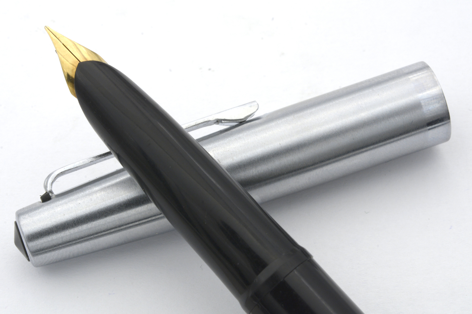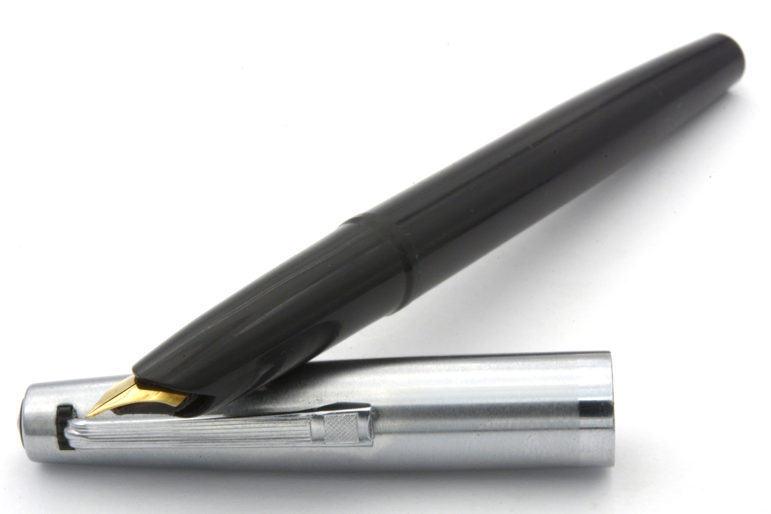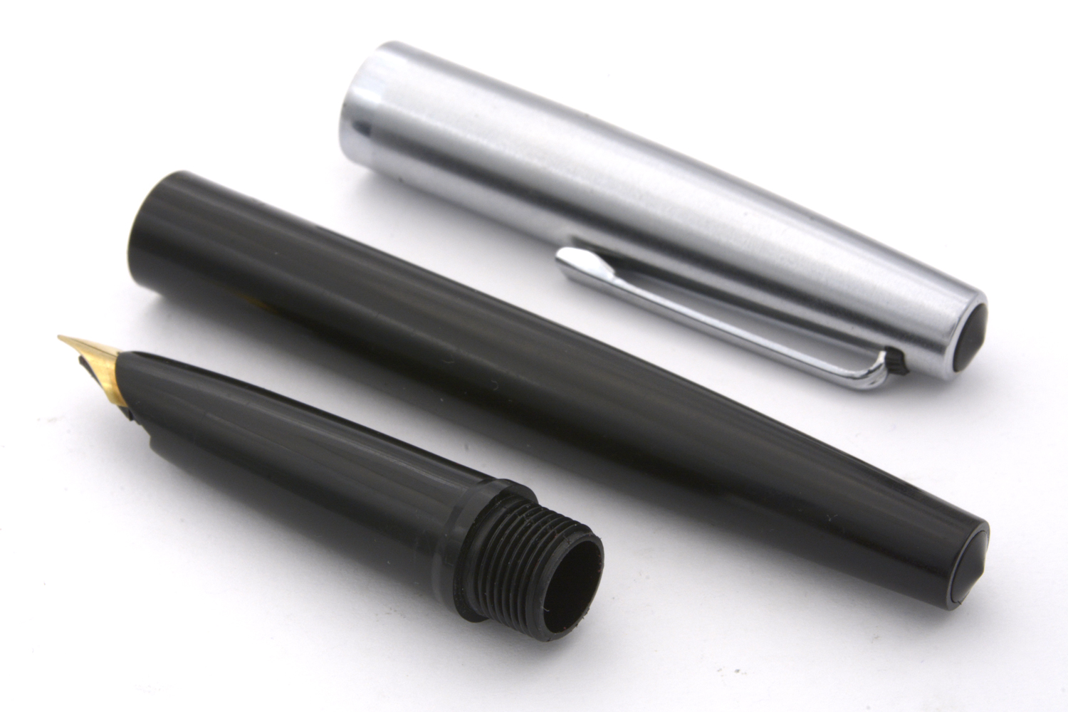 Denna fullt fungerande, svarta Penol 67 med huv i metall, tillverkad i Danmark omkring 1965, är en - enligt dåtidens reklam pålitlig och okrossbar - skolpenna avsedd för konverter eller (Parker Quink)bläckpatron. Pennan har ett smalt, gulfärgat stålstift som vid lätt spetstryck skriver med EF-bredd. Pennans längd: 138 mm. Vikt: 15 gram. Vid köp medföljer en bläckpatron.
