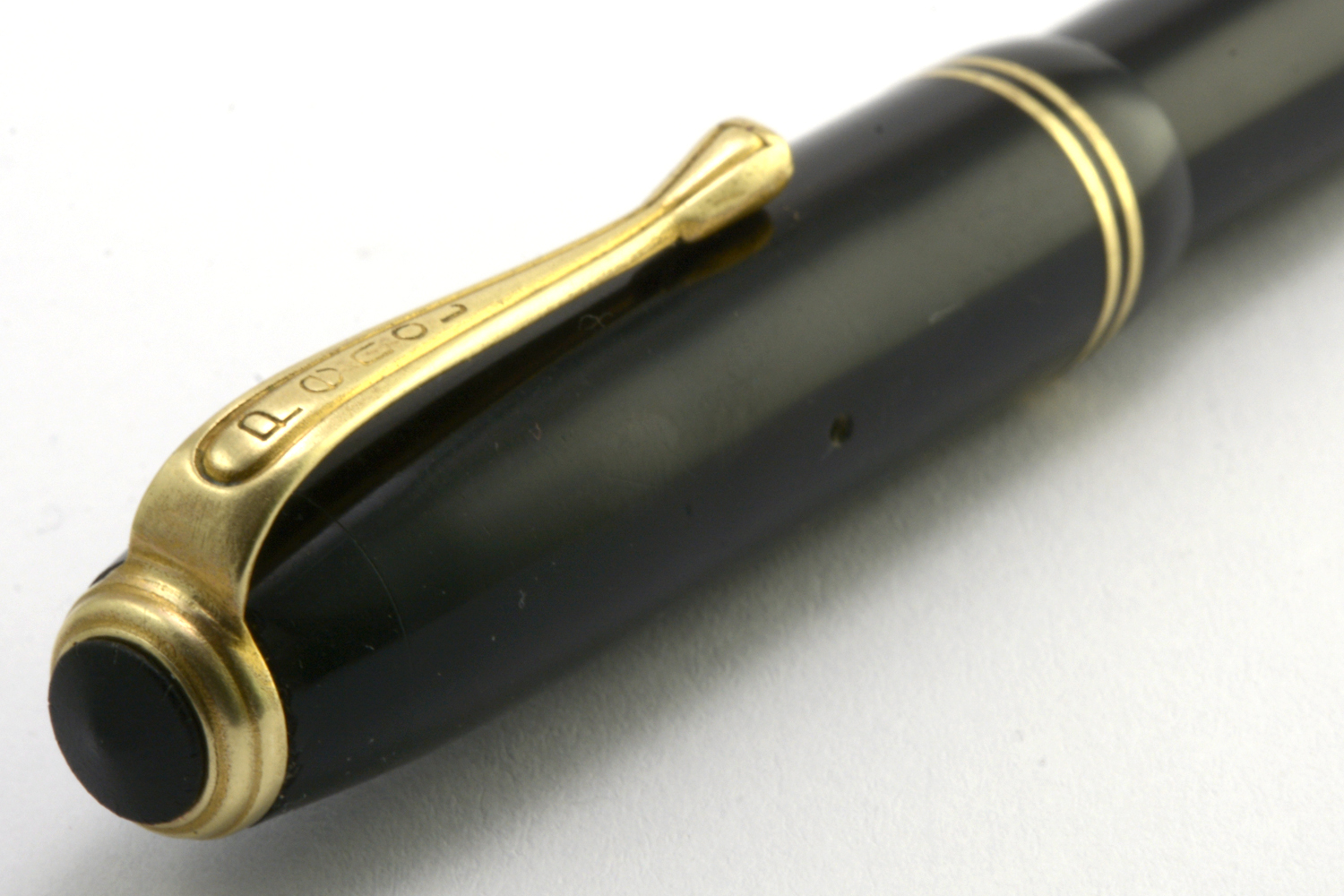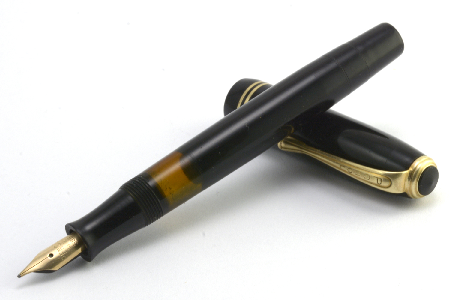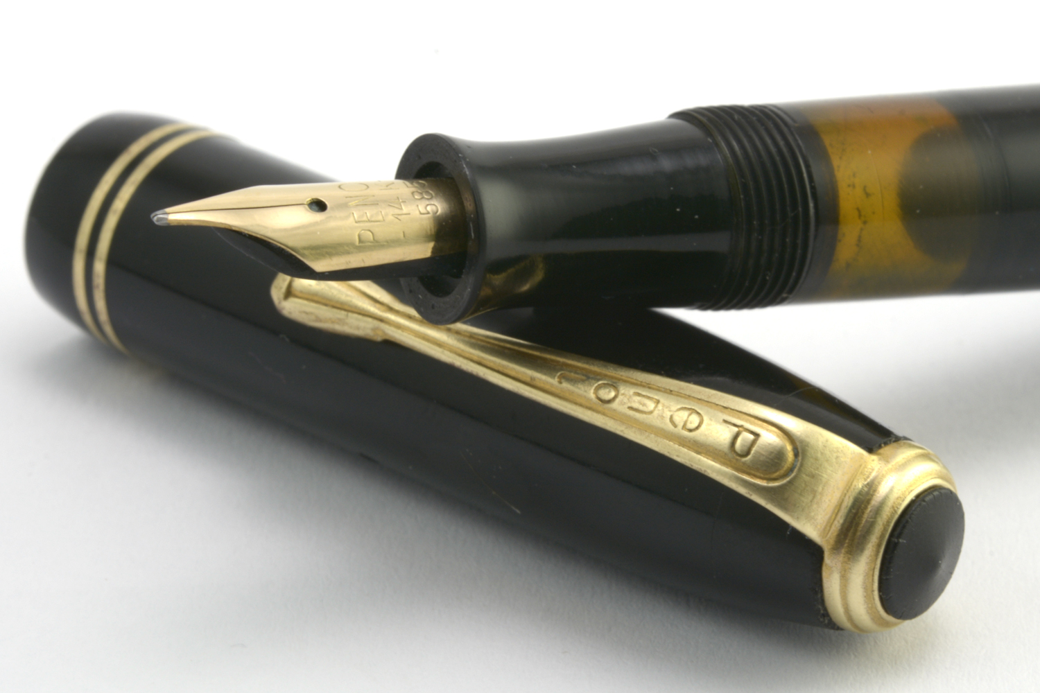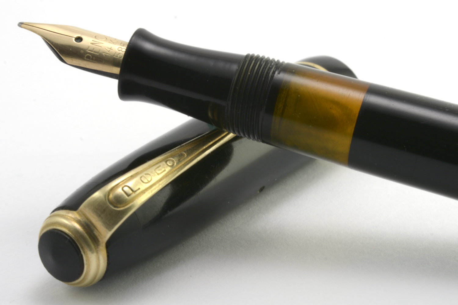 Den här pennan, tillverkad mitt under brinnande krig i juni 1943, är försedd med ett engagerande stift med god flex från F/M-bredd till BB. Vid start kan bläckflödet vara lite trögt men om man inleder skrivandet med en halv sekunds stilla tryck på pappret kommer bläckflödet igång och fungerar därefter klanderfritt, även under relativt snabba penndrag, och kräver inte speciellt stort spetstryck. Vid skrivande finns en viss feedback och spetsen har en svaga misslinjering från en tidigare ägares användande, men detta är inte något som stört när jag använt pennan.