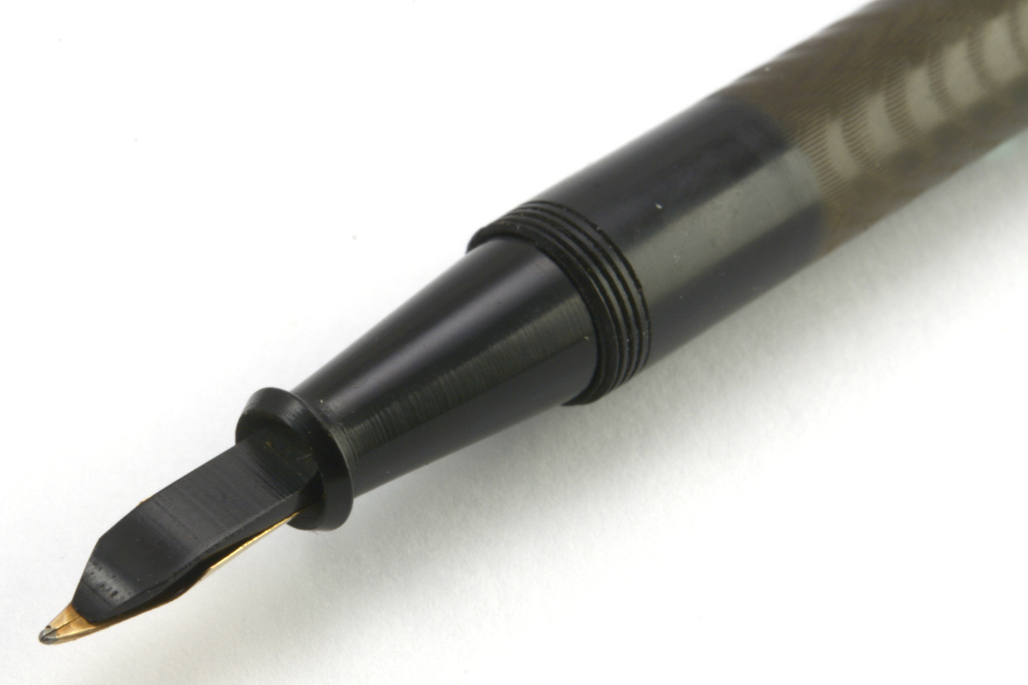 Pennan har fått en försiktig rengöring och ny bläcksäck installerad. Dess stift är styvt med tydlig feedback, och skriver med en tunn F-bredd vid normalt spetstryck. Stiftet har en svag flex, men med högre spetstryck blir bläckflödet så oregelbundet att stiftet ger ifrån sig stora bläckplumpar. Dessa plumpar skapas också vid längre tids skrivande med normalt spetstryck, varför detta inte är en penna för vardagligt skrivande utan främst en penna för pennsamlingen. Pennans längd: 140 mm. Vikt: 13,7 gram.
