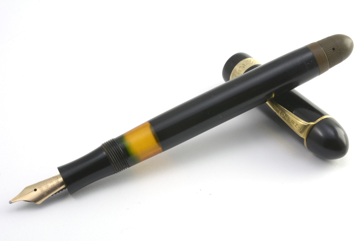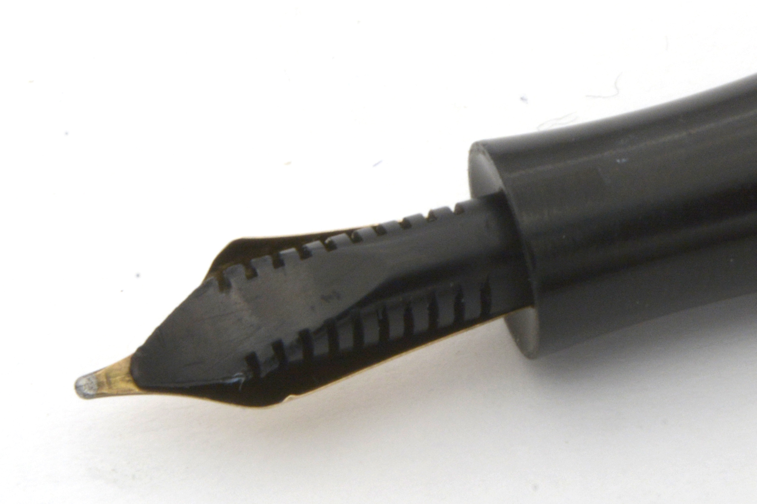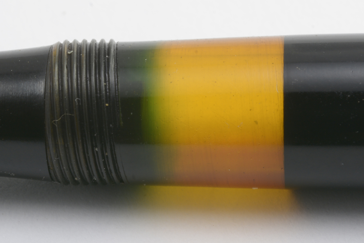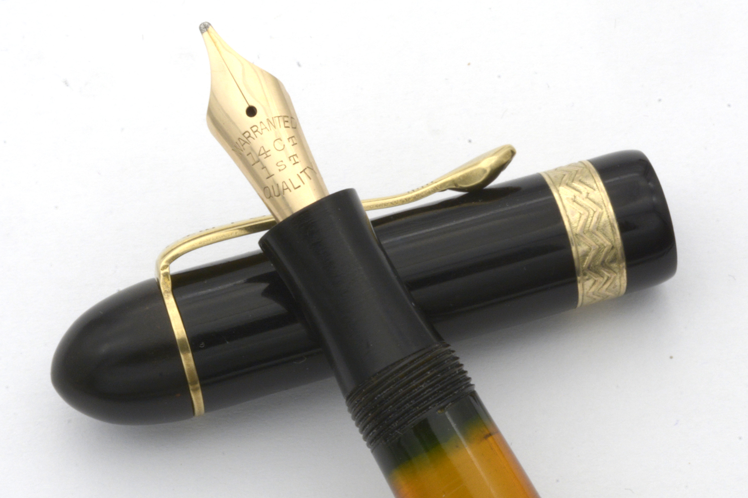 Denna renoverade och fullt fungerande The Tower Superior är tillverkad i Tyskland för den svenska marknaden i slutet av 1930-talet. Det är en skönt balanserad penna, både med och utan huven postad, med god förgyllning på de förgyllda delarna och med ett guldstift med mediumflex. Vid lätt spetstryck skriver pennan med M/B-bredd för att med högre tryck skriva med BB/BBB-bredd. Pennan har några tydliga ålderstecken – bläckfönstret är partiellt missfärgat, celluloiden är lite bräcklig vid pistongmekanismen och skruvar man ut pistongmekanismen i sin fulla längd kan den eventuellt fastna (något som kan åtgärdas på egen hand men kan upplevas irriterande) – något som tagits hänsyn till vid prissättningen. Pennans längd: 131,5 mm. Vikt: 20 gram.