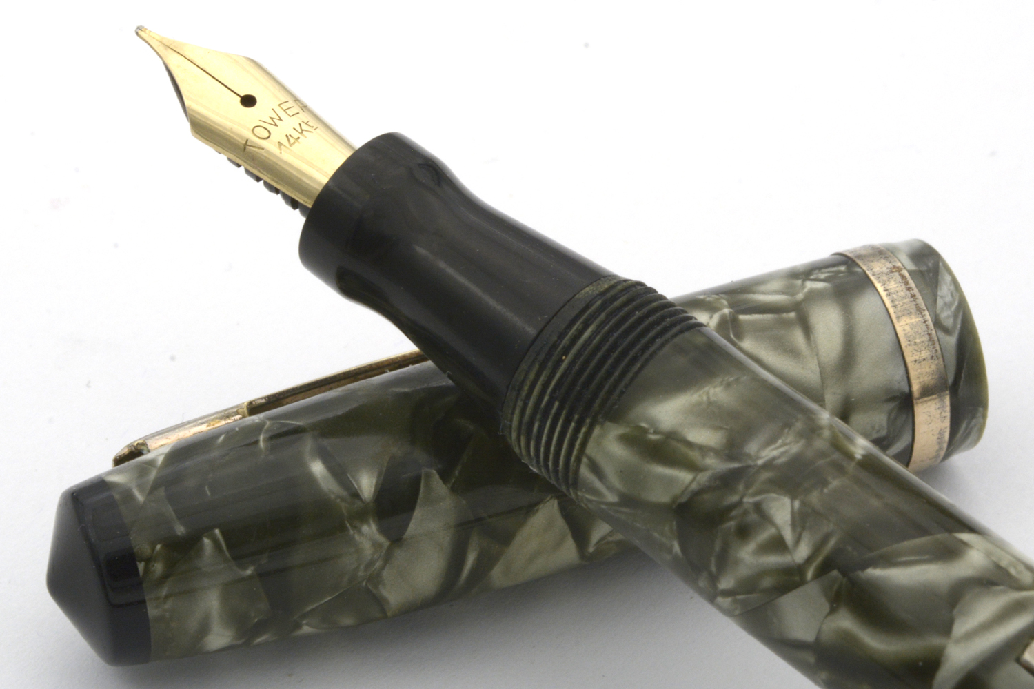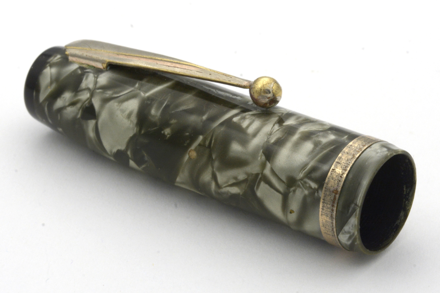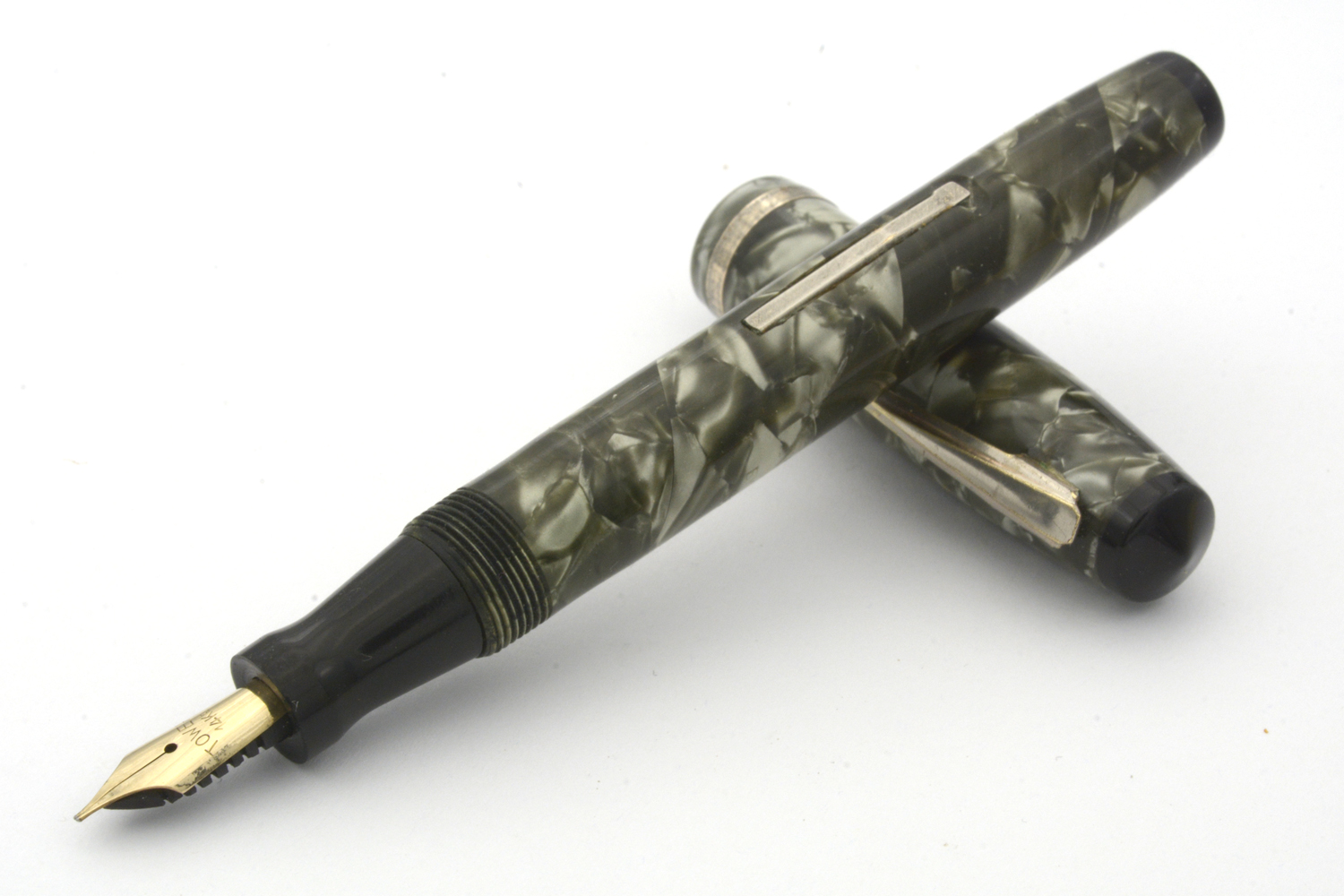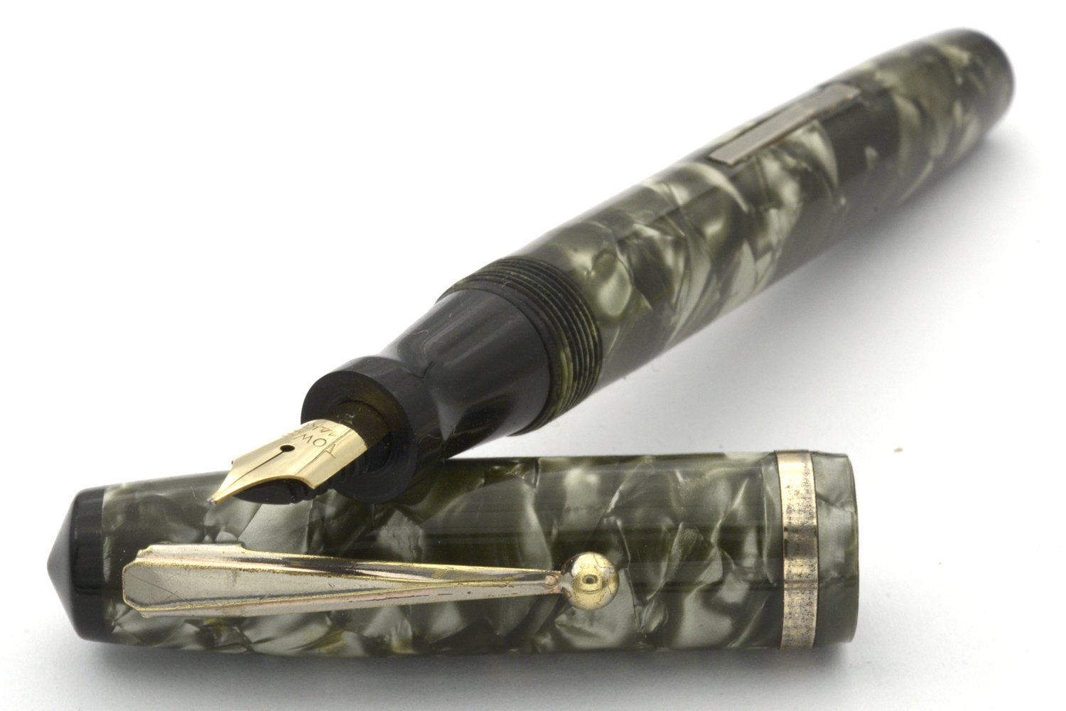 Wahl Oxford var Wahl Eversharps budget-penna, en celluloidpenna med ett attraktivt melerat mönster som enligt företagets marknadsföring erbjöd hög kvalitet och guldstift – i bredderna F eller M – till lågt pris, och även om clips och huvring inte längre har mycket kvar av sin ursprungliga (tunna) förgyllning så syns dessa kvalitetsanspråk fortfarande. Detta exemplar saknade dock stift när den kom i min ägo, något jag åtgärdat genom att förse den med ett stift från en Tower Minor som inte gick att renovera.