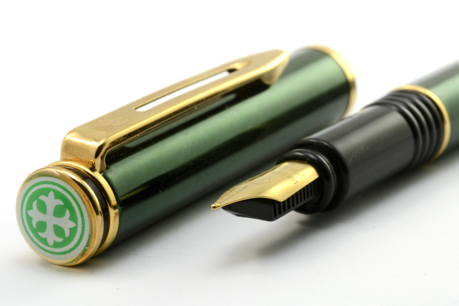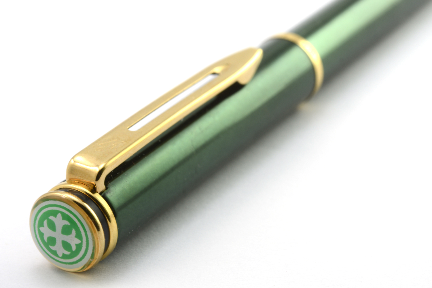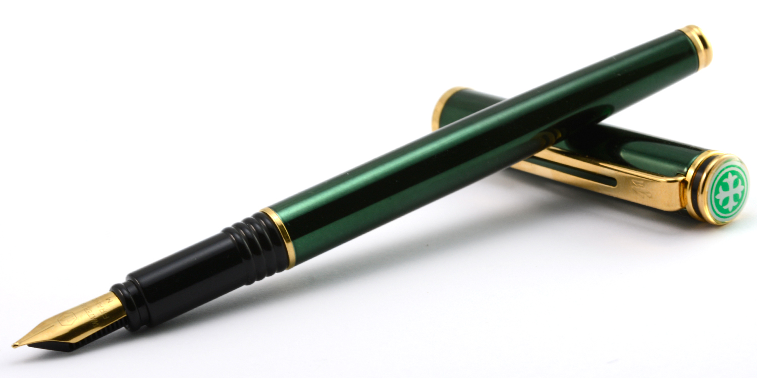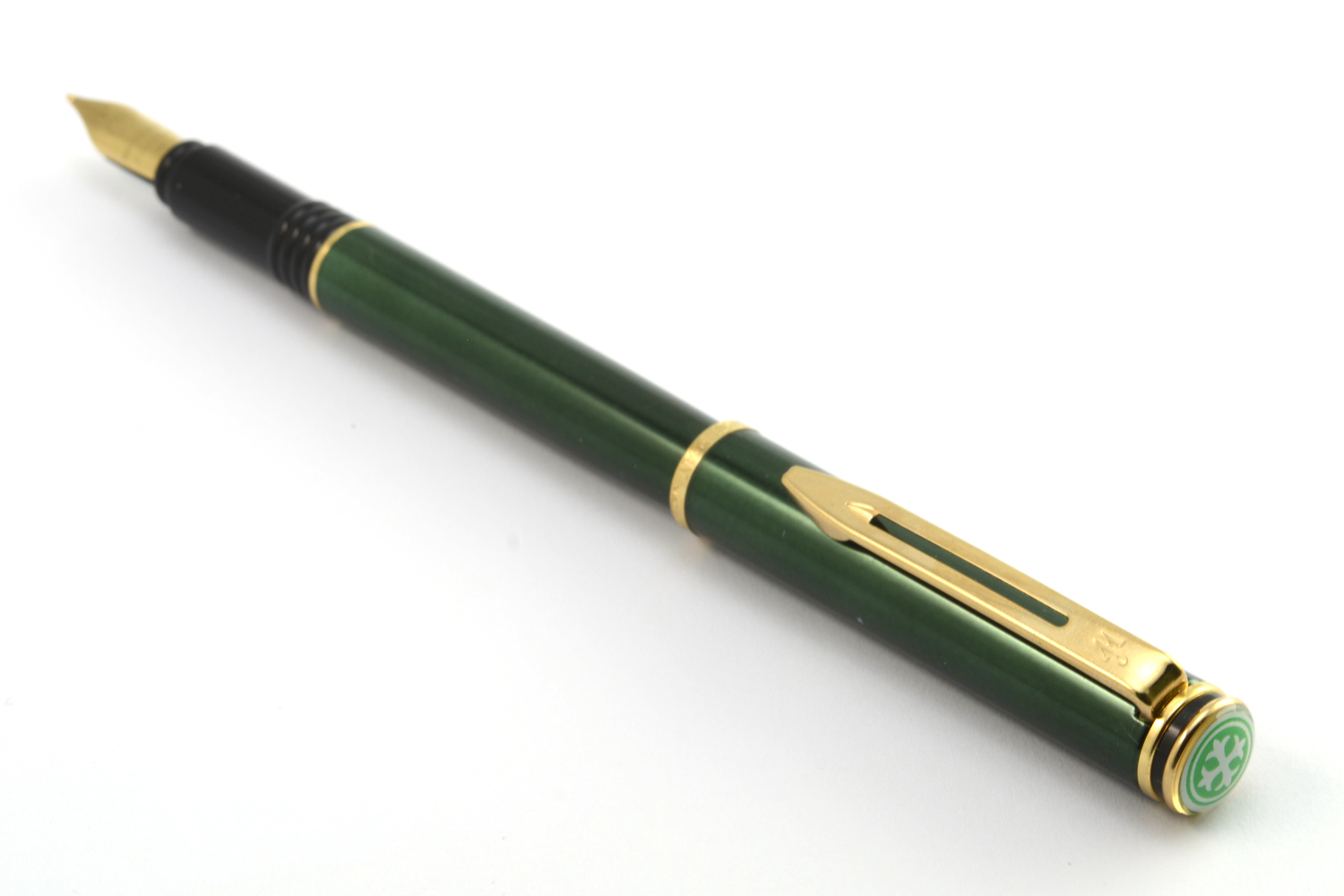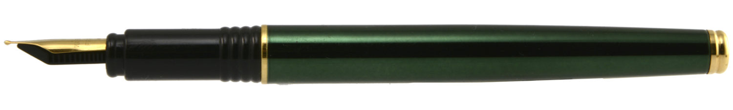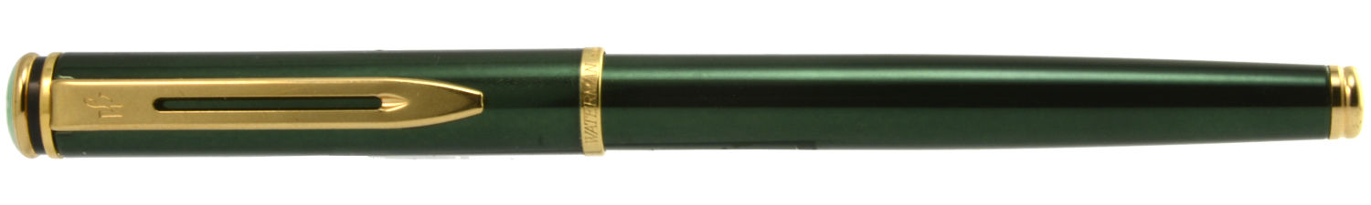 Denna tubformade Waterman i grön metallicfärg med förgyllda detaljer sticker definitivt ut och ser dyrare ut än vad den egentligen är. Formmässigt bygger den vidare på det designspråk som Waterman påbörjade i början av 1980-talet med Le Mans-modellen, vilket i sin tur känns som en blinkning till 1930-talets klassiska modeller. Ganska snyggt, men inte helt rätt i min hand.