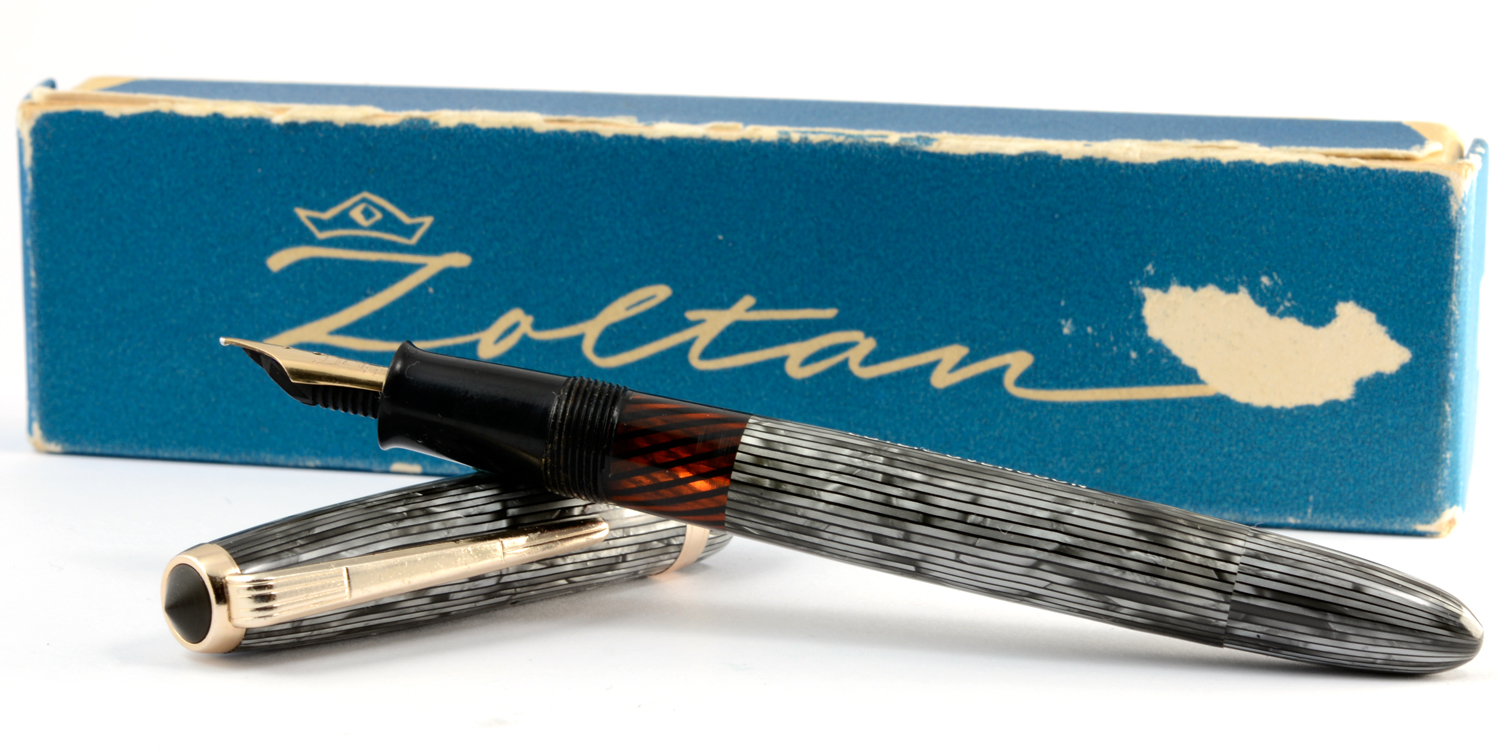 Denna Zoltan-penna är en ganska svårfångad raritet, som ytterst sällan läggs ut till försäljning och därmed också kostar avsevärt mycket mer idag än när den såldes första gången. Just denna penna köptes av Ester Svensson 1956, möjligtvis av en sådan »energisk direktförsäljare» som Pennfabriken Ingvar Nord i Sundsvall annonserat efter i dagspressen tidigare det året, och i vilken mån denna Ester någonsin använde pennan är tveksamt. I vilket fall var hon mån om att spara både följebrev och bruksanvisning / garantibevis till glädje för pennentusiaster sextio år senare.
