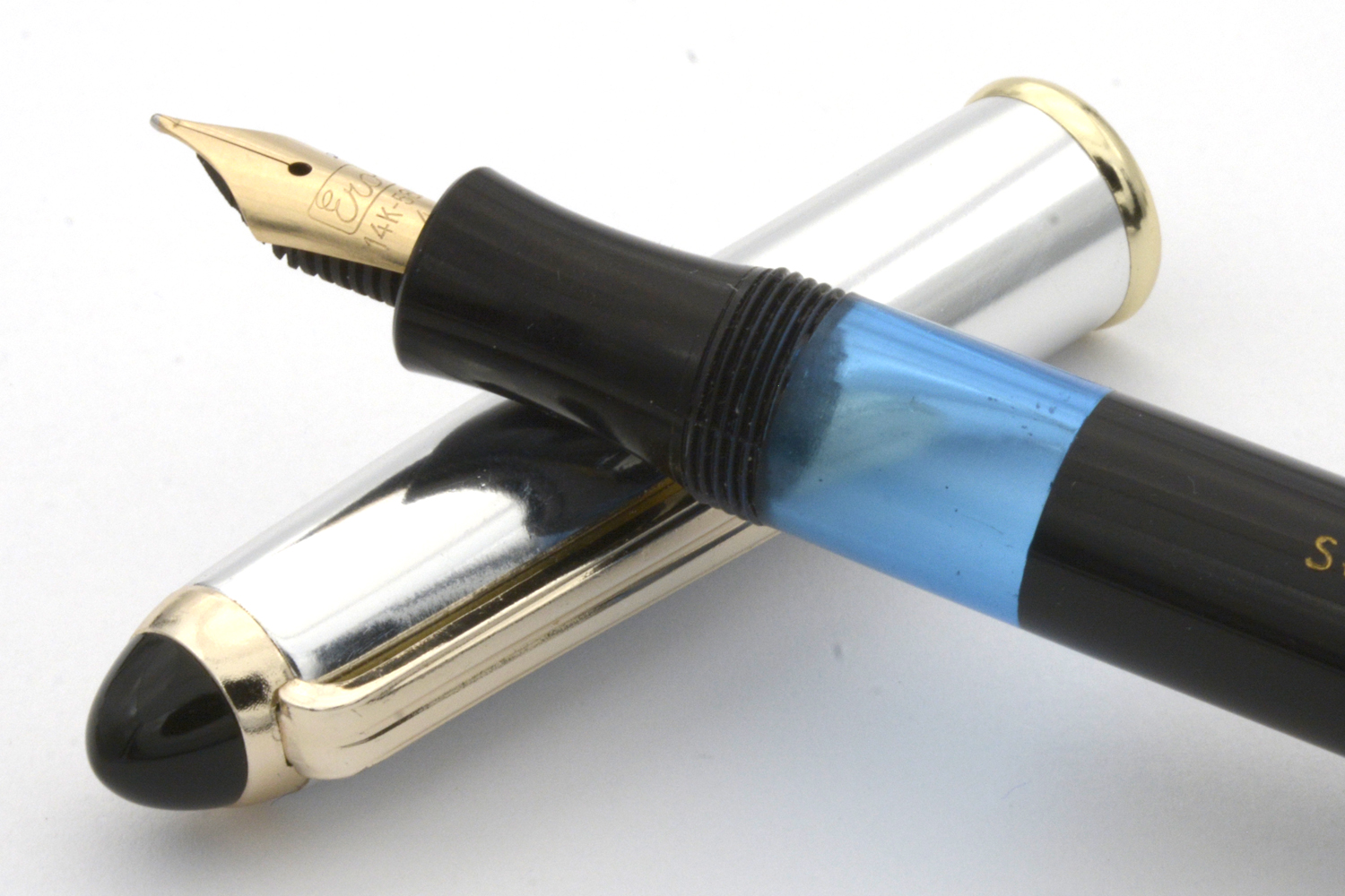 Pennan är i bra skick med en fullt fungerande pistongfyllare. Pennan har en skön vikt och bra balans, speciellt med huven postad, och är en utmärkt brukspenna. Det urskruvbara stiftet känns som en halvstorlek för litet, men eftersom jag har två pennor med samma stift får man anta att det är det stift som denna modell levererades med. På pennan anges stiftbredden som MK, men i och med att stiftet har mediumflex så är bredden - vid lätt spetsstryck – F-bredd för att med högre tryck dra linjer upp till B-bredd.