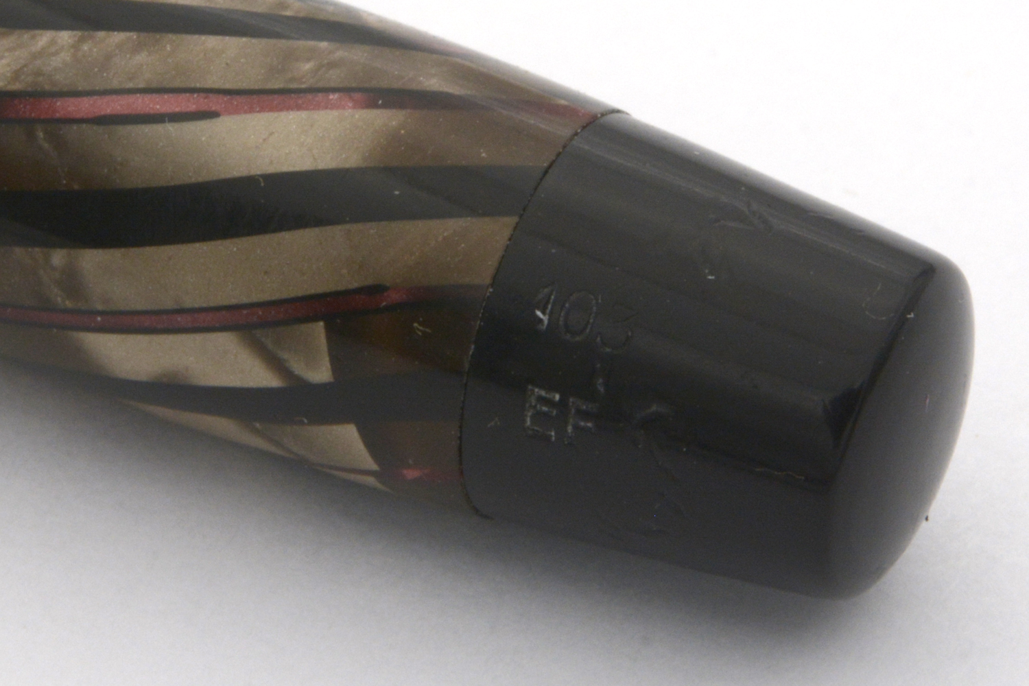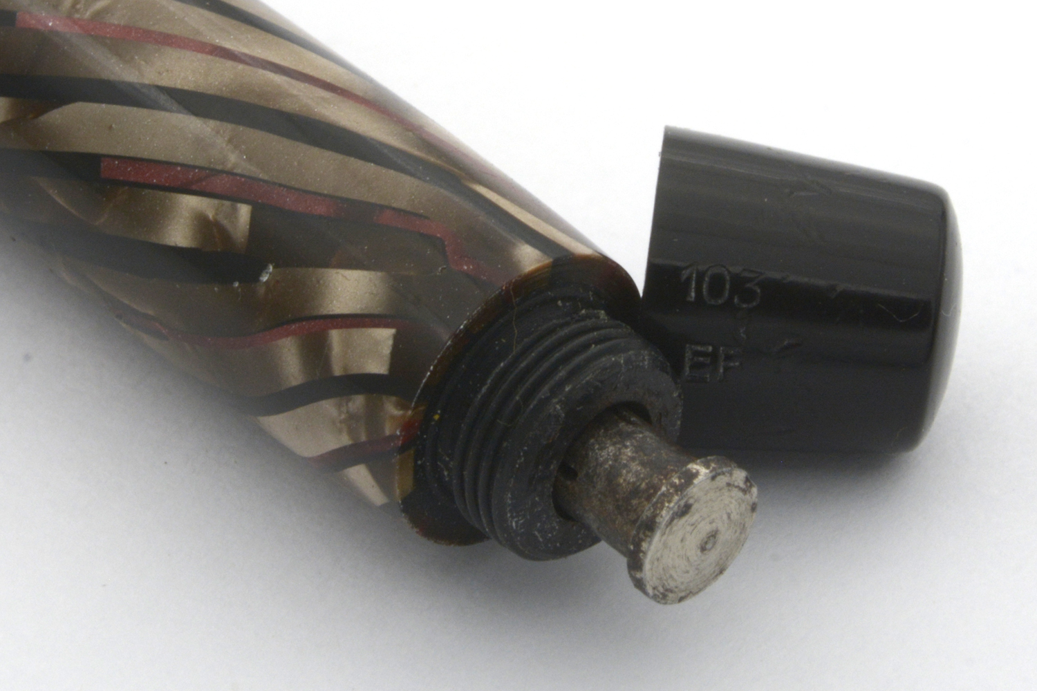 Hebborn 103 är en svårdaterad penna. Utseendemässigt andas den i många avseenden 1930-tal, något som till viss del förstärks av att det är en pumptryckare, men pennans clips signalerar snarare 1940-tal, varför jag tills vidare tentativt daterar den till 1940-talets första hälft.