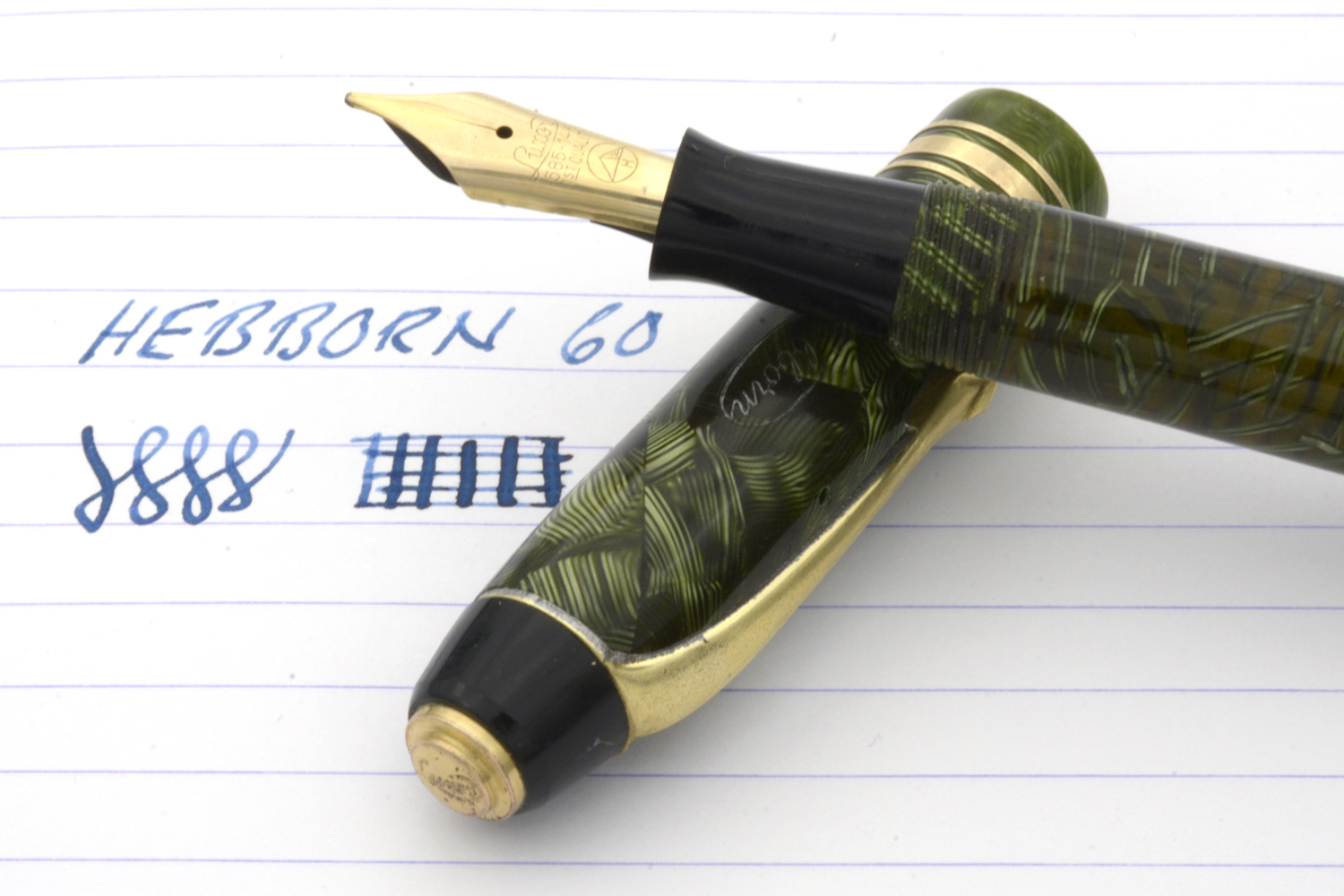 Hebborn 60 är – med sina 136 mm – den längre »herrmodellen» av Grandvisible-serien runt 1950 (som vid den tiden kallades »Teleskop»). Pennan inhandlades av en privatperson i Malmö, varför jag misstänker att pennan är svensksåld. Av skicket att döma har pennan haft en mindre gynnsam förvaringsplats efter att senaste ägaren slutat använda den. Stiftet var hårt nedsmutsat och de förgyllda delarna, i synnerhet clipset, var tydligt angripna av någon form av korrosion. Vid renoveringen gned jag bort så mycket jag vågade av detta yttre angrepp på de förgyllda delarna, vilket innebär att dessa detaljer vid en okulär besiktning ser okej ut – men vid större förstoring syns spåren av det fortfarande tydligt. Stiftet hade en tydlig fellinjering som ganska lätt åtgärdades, och i och med att pennans teleskopmekanism inte tagit skada räckte det med att tillverka ny kork för att pennan återigen skulle vara i fungerande och gott bruksskick. Noterbart är att den lilla »låsmuttern» på pistongmekanismen inte gick att demontera, vilket krånglade till monteringen av ny kork lite grann.