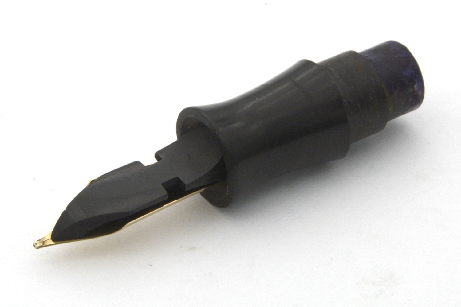 Huven till denna penna har krympt något – vilket märks genom att huvringarna sitter lite löst – och man bör undvika att skruva in pennan för långt, men med tanke på pennans ålder är detta en penna som andas kvalitet där pennans bläckledare är ett kapitel för sig. Utöver de vanliga skårorna på översidan har denna bläckledare även en skåra på undersidan, som förbinds med skårorna på översidan genom ett hål. Konstruktionen är omständlig, men fungerar utmärkt när det gäller att ge stiftet ett jämnt bläckflöde.