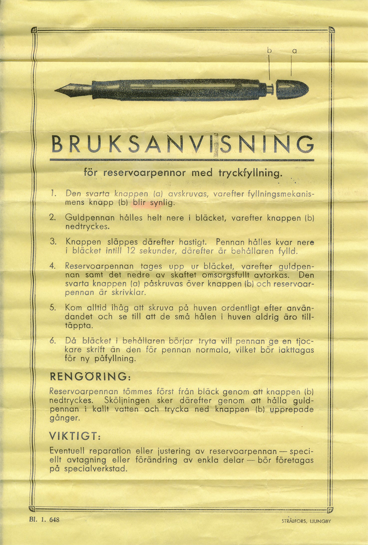 I december 1948 hade företaget en annons i Dagens Nyheter där de presenterade sin penna som ”välskrivaren till bra pris” som fanns till försäljning i ”ledande branschaffärer”. Att pennans guldstift var tillverkat i USA var en av de saker som framhölls i annonsen, liksom att bläckledaren ska vara »bläcksäker», vad detta nu innebär. Pennans rekommenderade försäljningspris var 32 kronor (motsvarande ca 750 kronor idag), vilket var i ungefär samma prisläge som mellanprispennor som Duofold och Tower Superior. Å kanske är just priset en anledning till att denna penna förefaller ganska sällsynt idag; gissningsvis var en Parker-penna mer attraktiv för potentiella pennköpare.