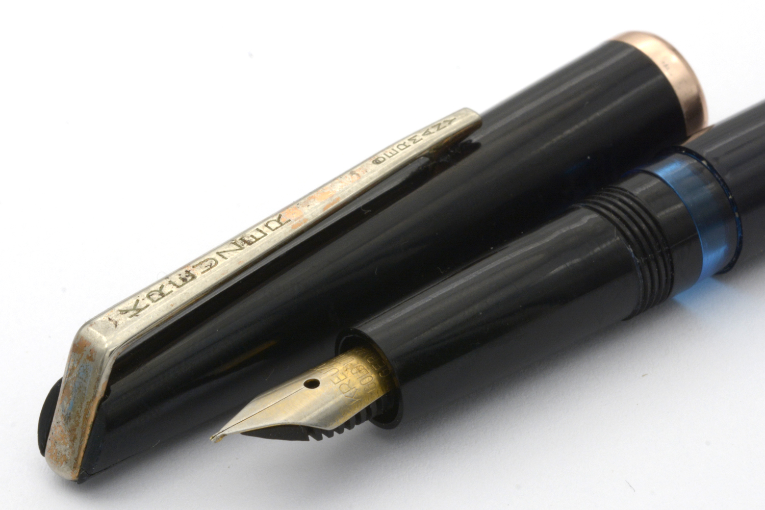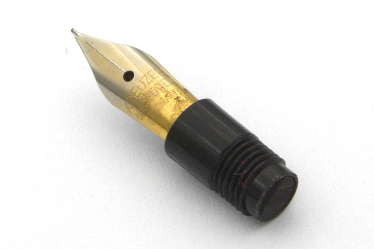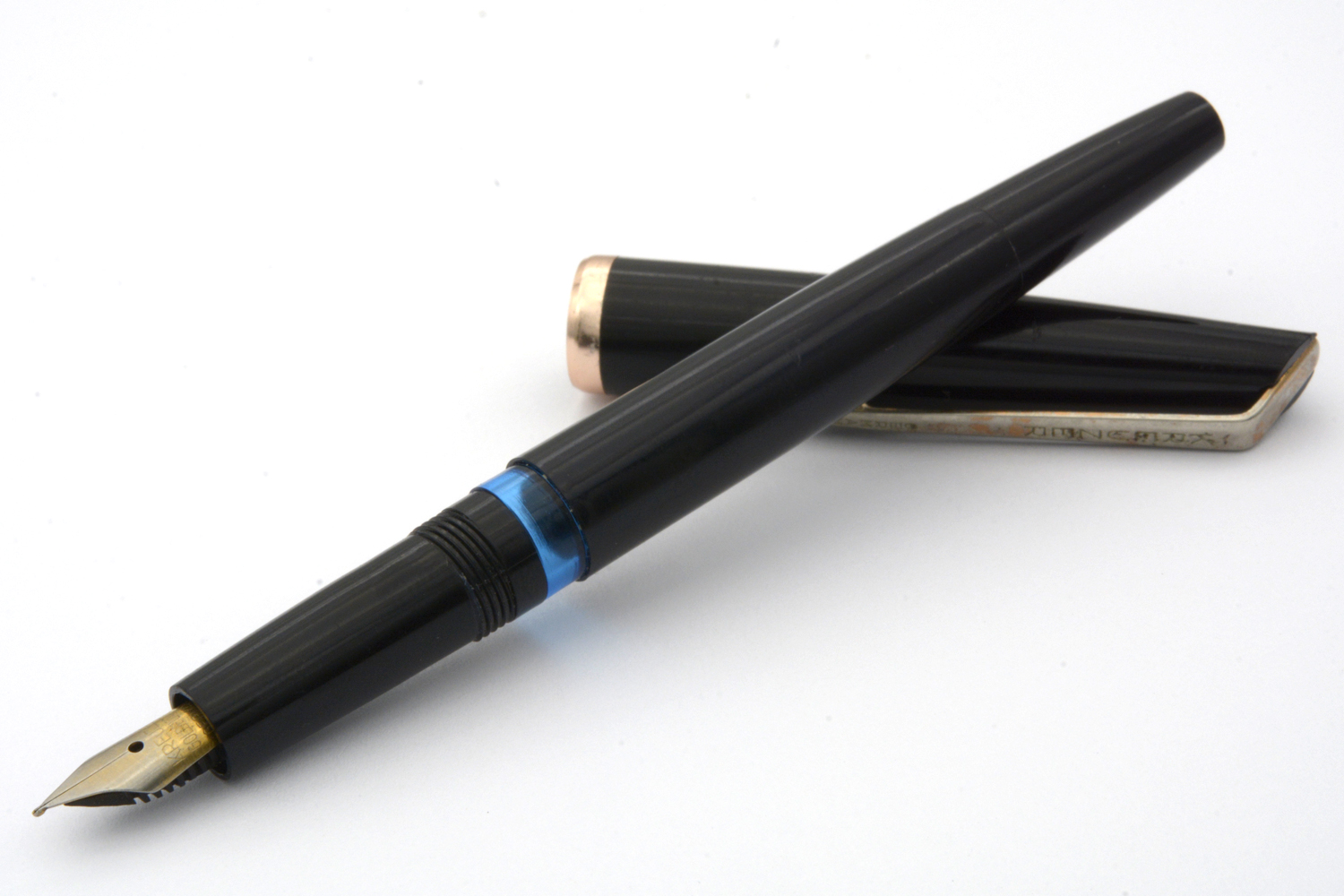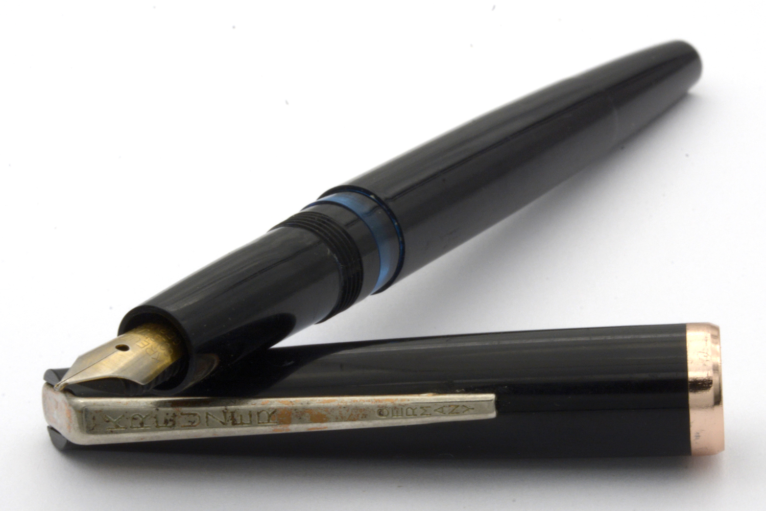 Denna Kreuzer är en enklare tysk brukspenna, gissningsvis från 1960-talet, med en väl fungerande pistongmekanism och ett stålstift som skriver löpande lätt med EF/F-bredd utan att kräva något spetstryck. Stiftets guldplätering är lite sliten och clipset har knappt någon gul färg kvar, men som vardagspenna är detta en nätt och riktigt trevlig skrivare. Längd: 134 mm. Vikt: 10 gram.