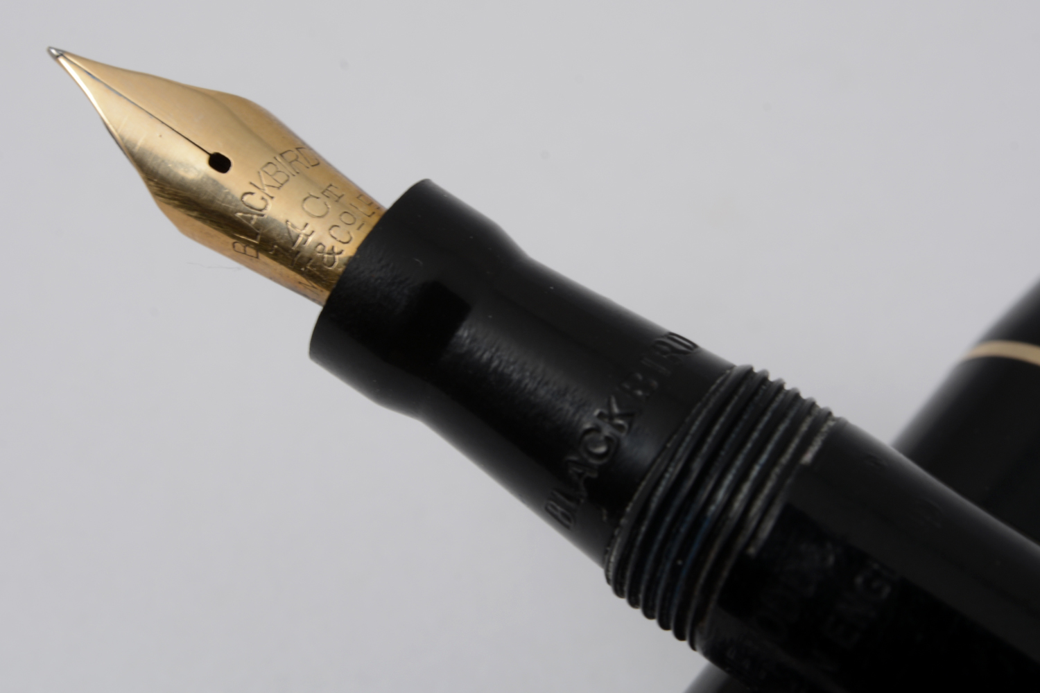 Denna Blackbird tillhör de senare, mer strömlinjeformade modellerna av pennan och är – likt övriga Blackbird – en budgetpenna, något som på denna märks på huvens och clipsets dåliga förgyllning. År 1950 kostade pennan 13.50 i Sverige, vilket motsvarade ungefär 27 liter mjölk och för en genomsnittlig, manlig arbetare tog fem timmar att tjäna in.