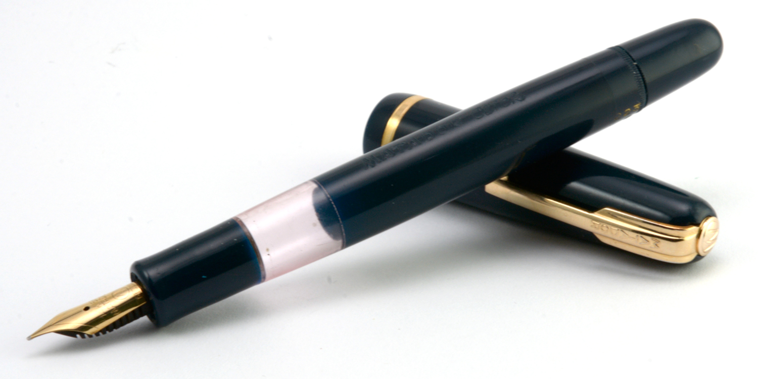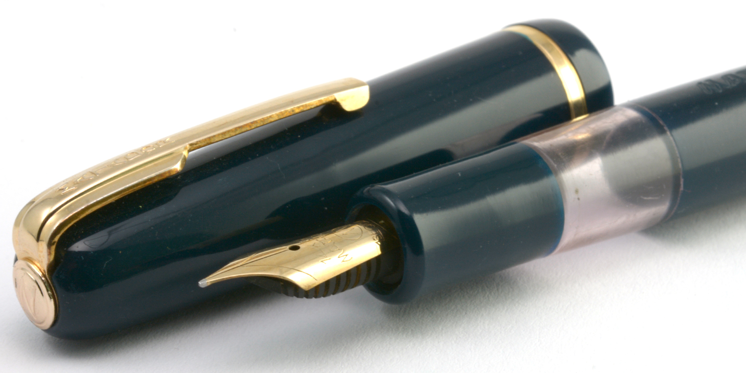 Denna Matador Click 223 är med stor sannolikhet aldrig använd. Det finns inga spår av slitage eller bläck och på pennans clips finns prisetiketten fortfarande fastsatt. Prislappen säger 29,50 (ungefär 420 i dagens penningvärde), vilket är det pris denna modell hade enligt tidningsannonser 1950. Pennan har den blågröna färg som kallades »grön» i marknadsföringen men snarare borde kallas »teal».