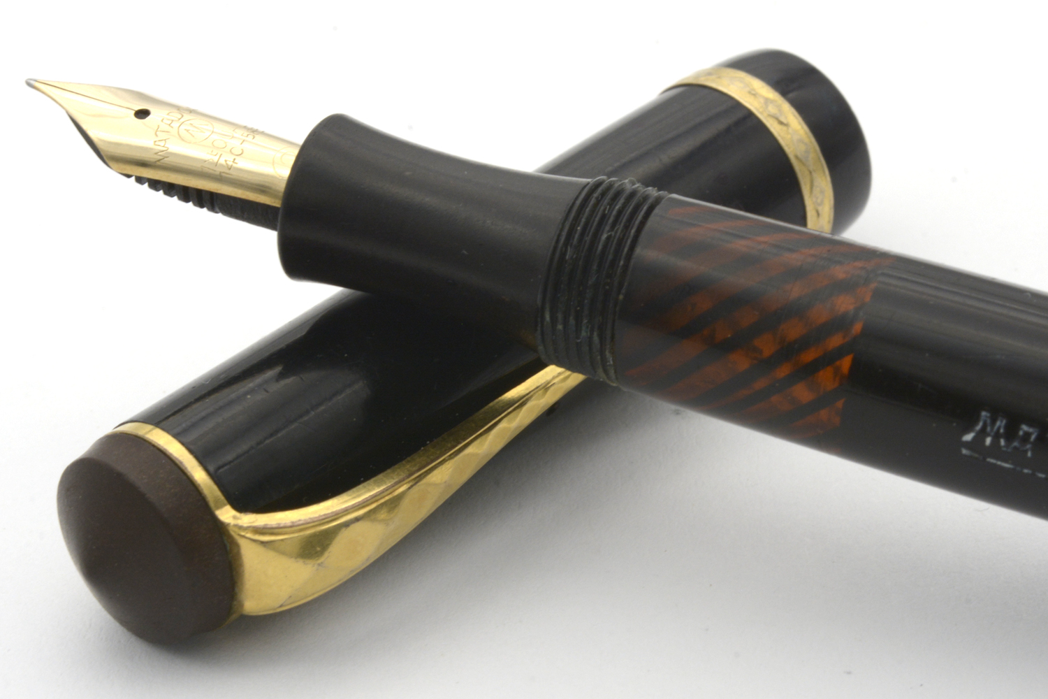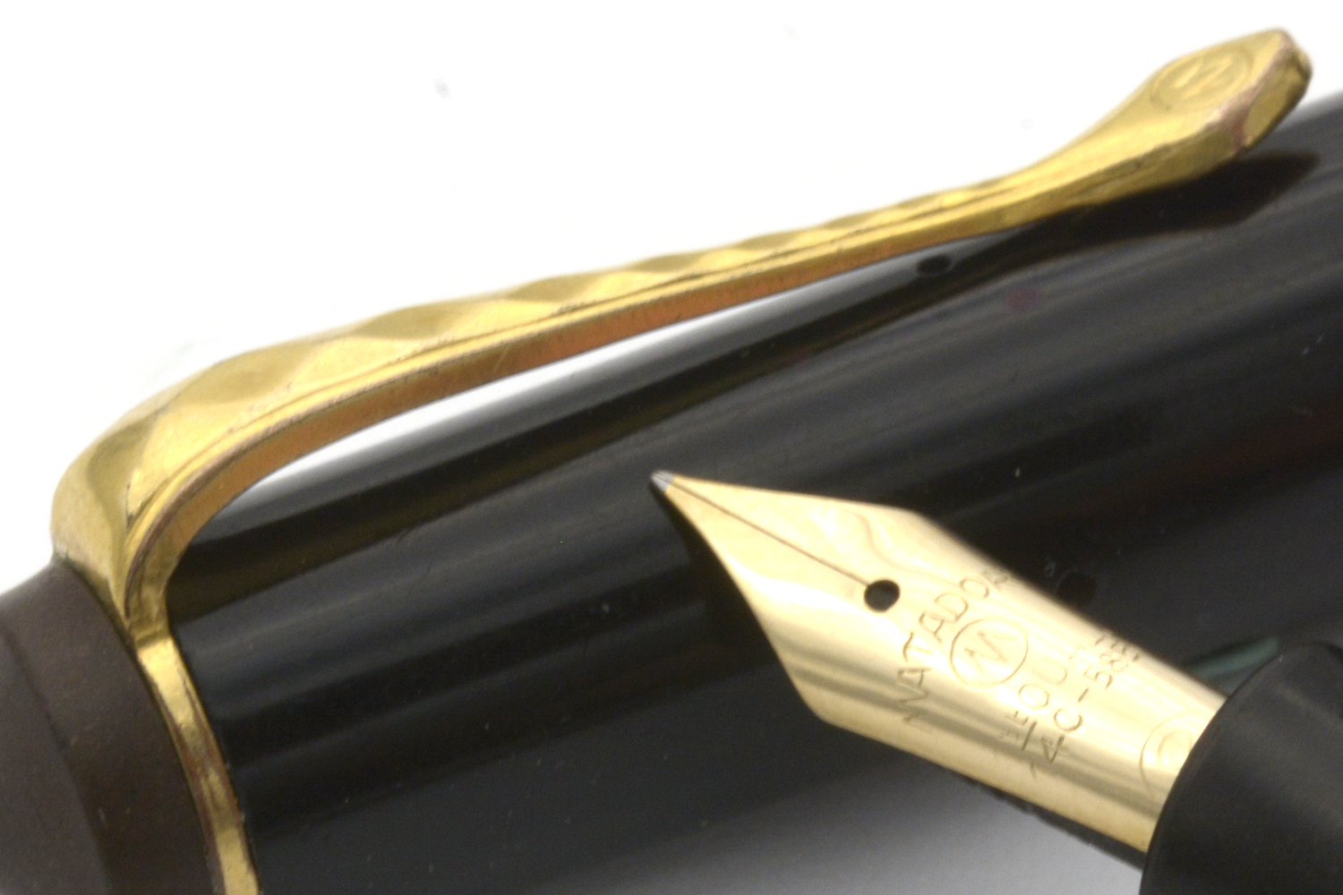 Denna Matador Express var del av en bytesaffär och kom till mig som renoveringsobjekt. Bakom smutsen och den fastklibbade korken dolde sig en penna som troligen varit med om en hel del. Det jag omgående upptäckte i samband med rengöringen var att pennans Matador-stift är en storlek mindre än Express-pennor brukar ha, vilket tyder på att originalstiftet någon gång bytts ut, och att huven har några exteriöra skador. I samband med demonteringen upptäckte jag också att bläckledaren hade en ganska stor spricka, något som ytterligare styrker misstanken att pennan någon gång tappats med stiftet först. Efter renoveringen är detta idag en brukspenna i förhållandevis bra skick. Den har en nytillverkad kork och en ny bläckledare med samma mått som den gamla, hämtad från en namnlös tysktillverkad kolvfyllare från ca 1950.