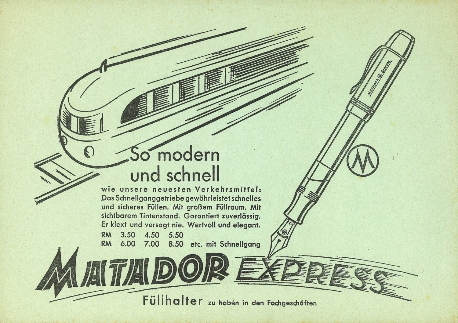 Matador Express liknar till det yttre många andra pennor från 1930-40-talet, och utan mer att gå på kan man alltså gissa på att pennan tillverkades vid 1930-talets mitt. Likt 1920-talspennorna finns här en »knubbig» grundform med toppskruv och skruvmekanism av ebonit, vilket här kombinerats med 30-talets lite mer avrundade former och celluloid som material.