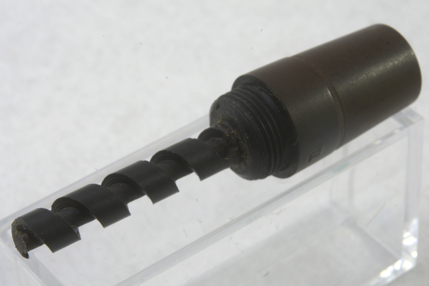 Kolvmekanismens skruv är av bakelit, korken är 5 mm bred och av kork.