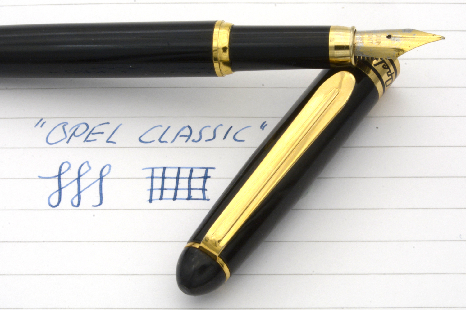 Denna förhållandevis tunga, namnlösa reservoarpenna, försedd med reklam för »Opel Classsic», är en fullt fungerande penna – avsedd för bläckpatroner – med en budgetpennas skrivegenskaper. Vid lätt spetstryck skriver dess styva stålstift med smal EF/F-bredd. Pennans längd: 136,7 mm. Vikt: 27,7 gram. Vid köp medföljer en bläckpatron.