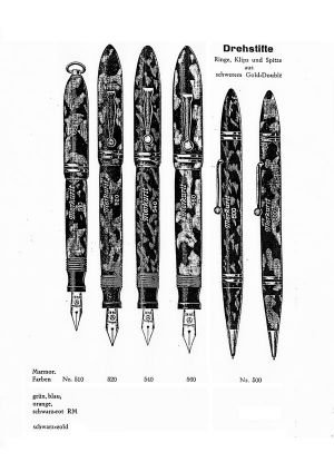 Pennan har så stora likheter med modellerna i Merkurit 5xx-serien som de avbildas i en katalog från 1933 att jag misstänker att det är samma penna med olika namn, och följaktligen använder detta årtal som datering. Merkurit tillverkades av Nielson-Werk GmbH in Hamburg-Blankenese, vilka var en av de tillverkare som Johannes Ivesson importerade pennor ifrån.