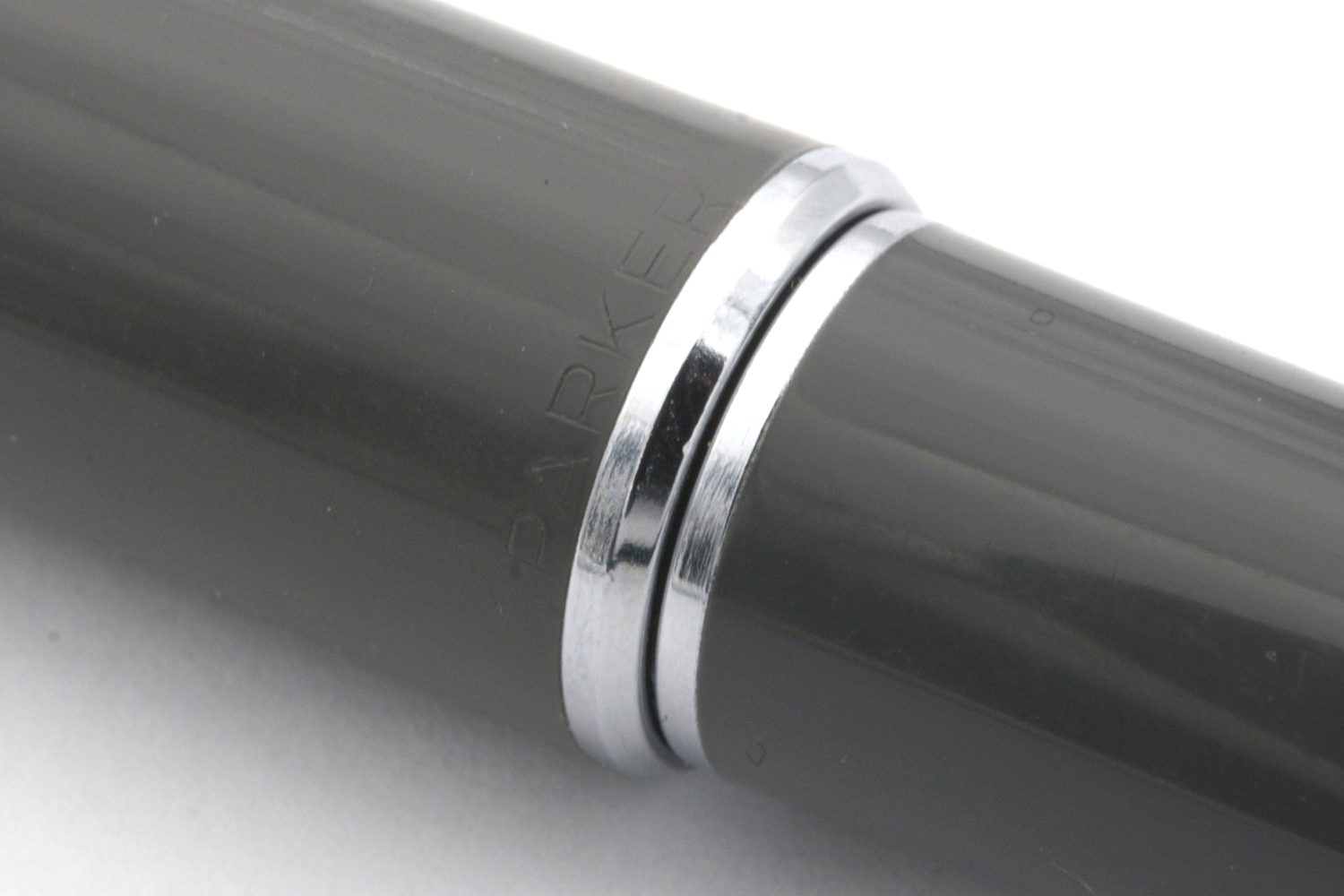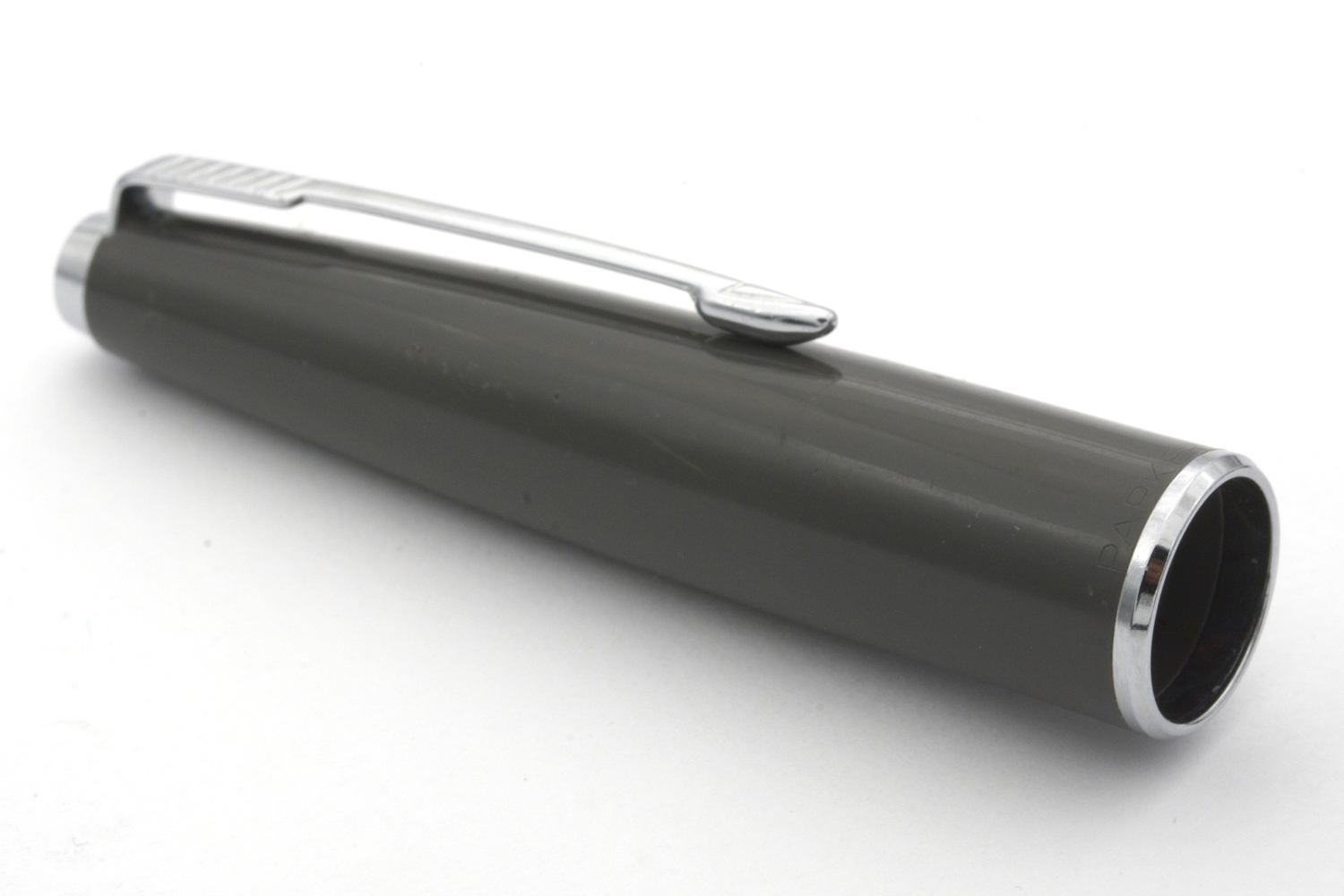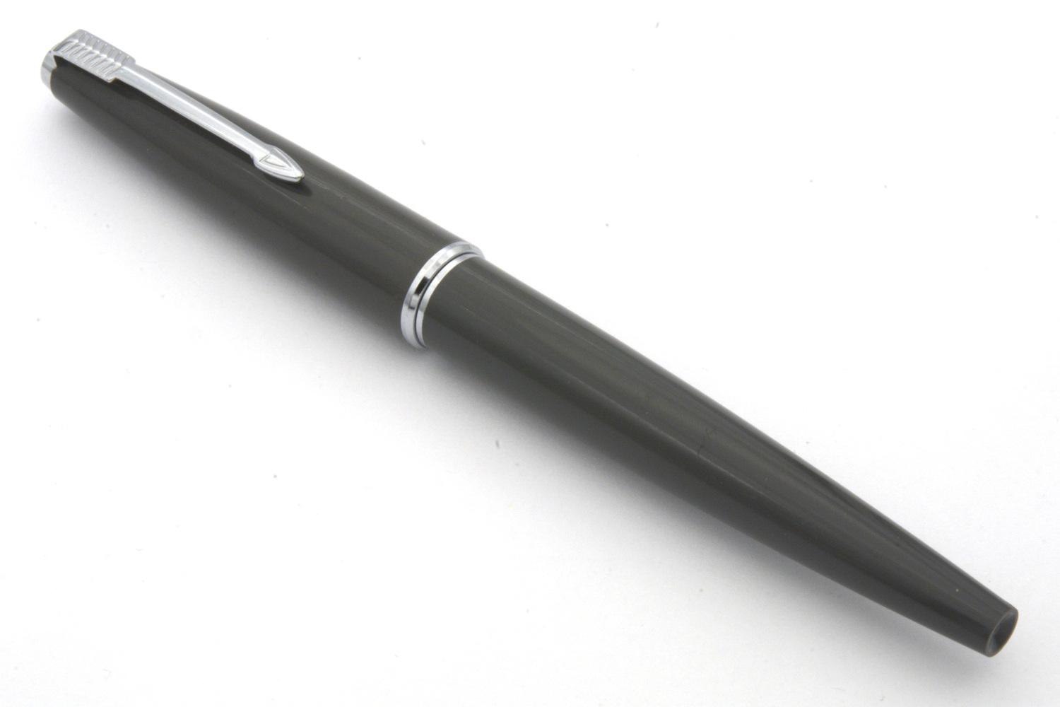 Parker 45 Arrow – senare också benämnd CT – introducerades 1962 som ett mer kostnadseffektivt alternativ till Classic-modellen, vilket dels skedde genom nya maskiner och dels genom att metallhuven ersattes med en huv i plast. Denna penna är tillverkad före 1970 då huvens clip-skruv fick ett annat utseende, varför jag tentativt daterar den till 1965.