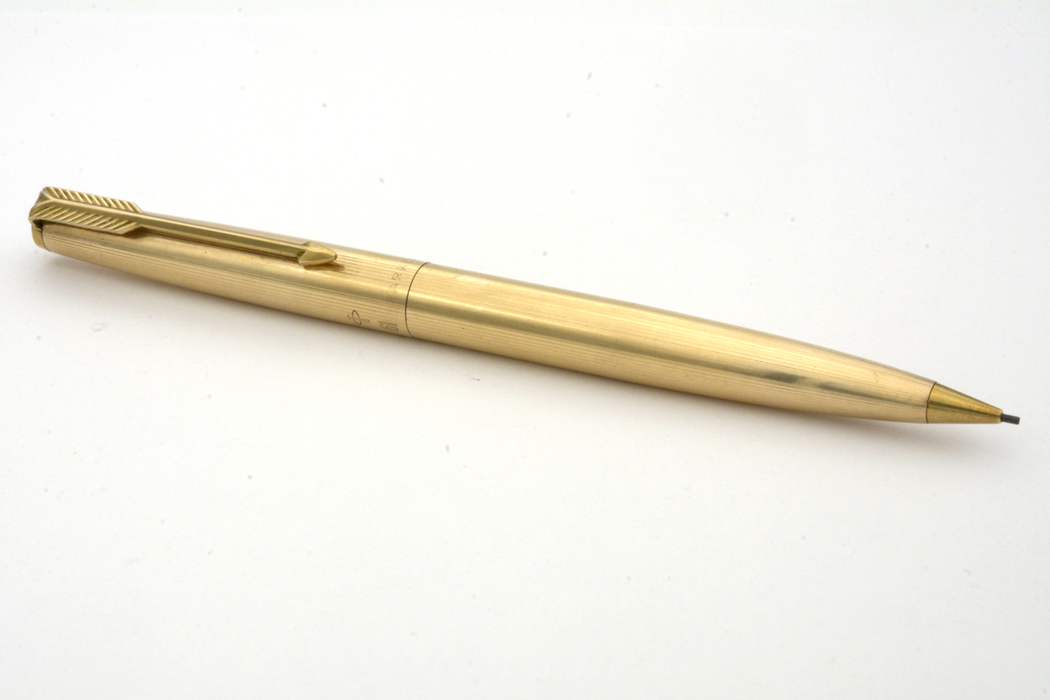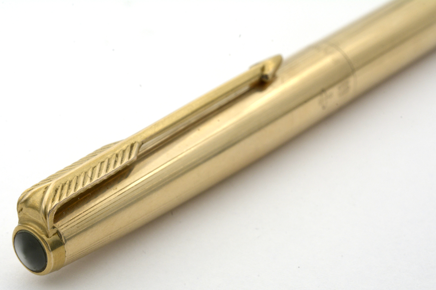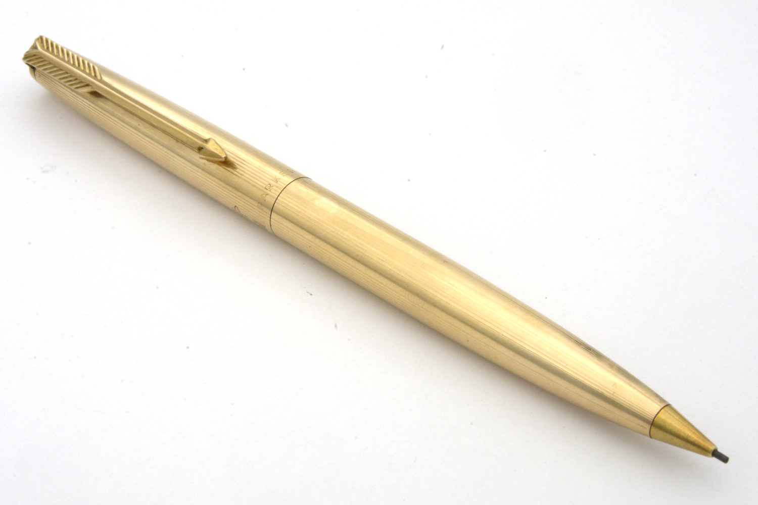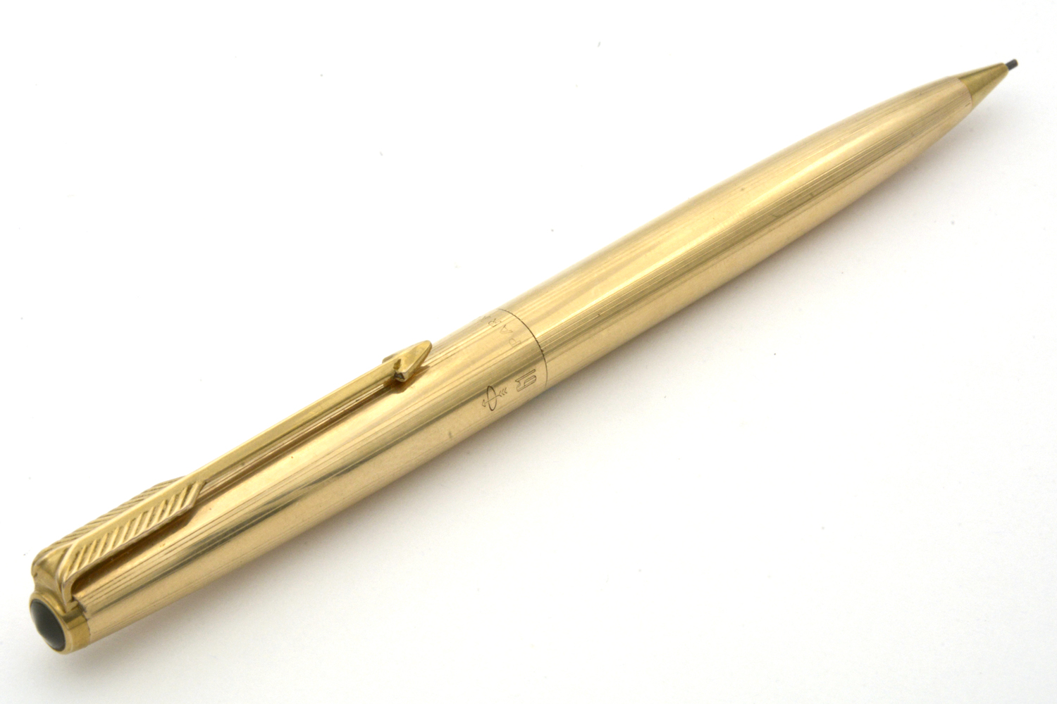 Denna USA-tillverkade, 12 karats förgyllda Parker 61 är en fullt fungerande stiftpenna i fint skick, avsedd för 0,9 mm stift. Pennans längd: 127 mm. Vikt: 22,9 gram.