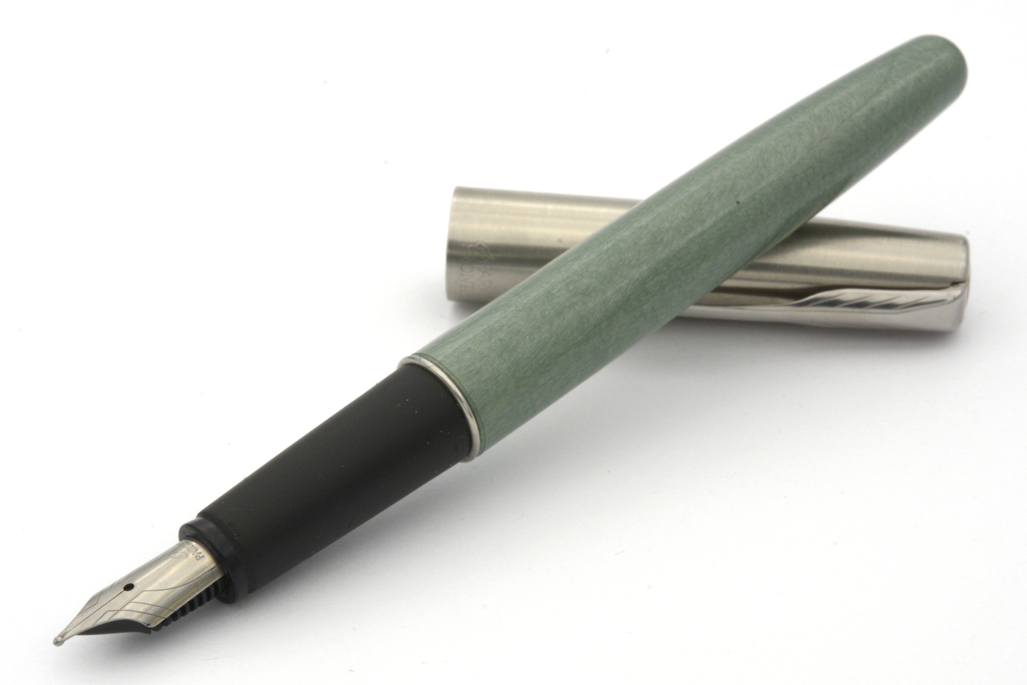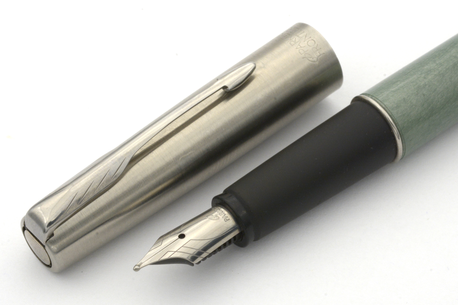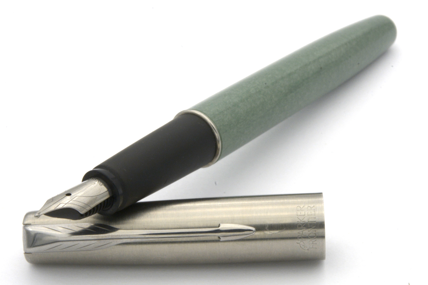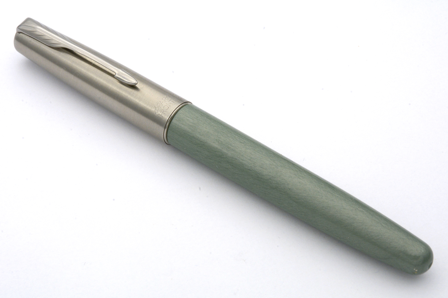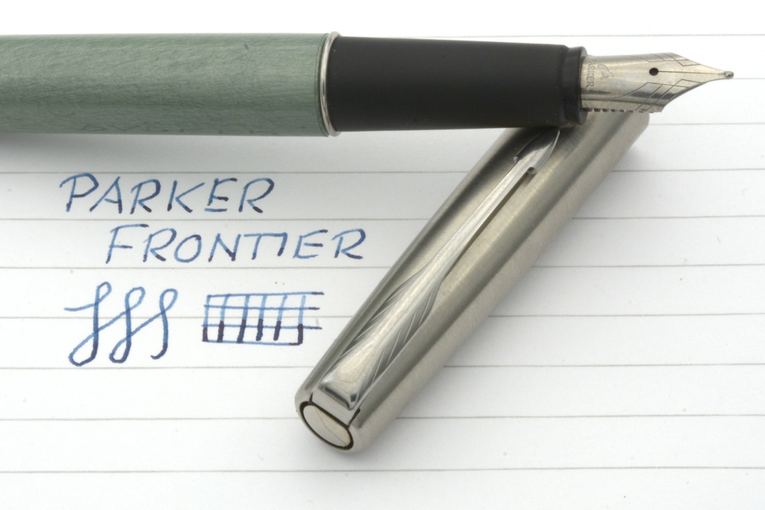 Denna fullt fungerande Parker Frontier är i det utförande som kallades »Luna CT» eller »Luna Blue CT» som endast verkar ha tillverkats under ett år: 2007. Datumkoden på pennans huv säger dock 2005, varför huven eventuellt inte är pennans ursprungliga. Pennan är i bra skick, försedd med ett stålstift som skriver lent och följsamt med F/M-bredd vid lätt spetstryck. Pennans längd: 133 mm. Vikt: 15,4 gram. Vid köp medföljer en bläckpatron.