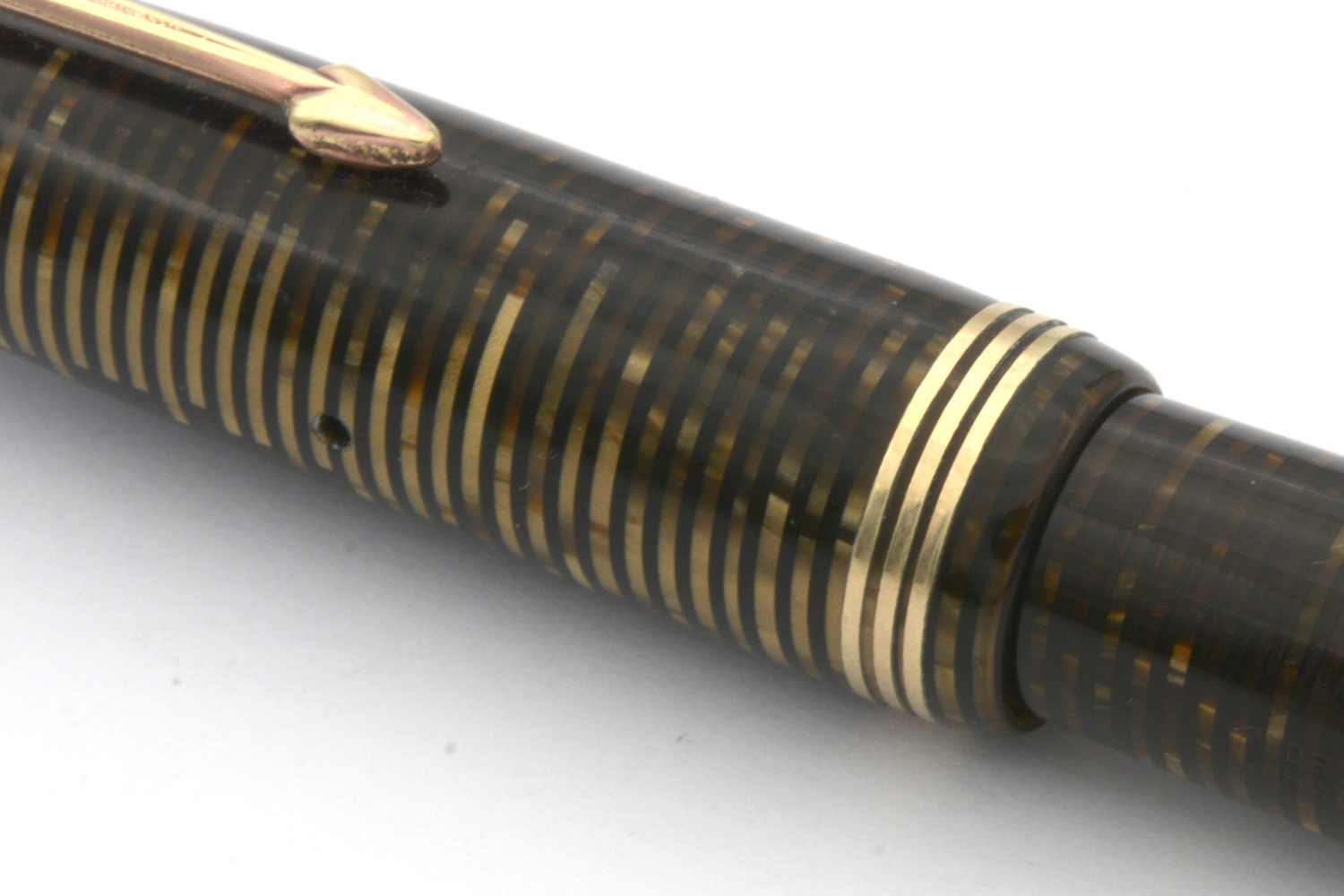 Denna Vacumatic är en svårklassificerad penna, troligen beroende på att den är tillverkad i Kanada. Pennans förgyllda ring på blindhättan tillsammans med de tre huvringarna leder tankarna till att det är en »Streamlined Standard», men i USA slutade den modellen att tillverkas ett år innan denna penna tillverkades. Denna penna är därtill försedd med plastversionen av Vacumatics fyllare, något som introducerades först året efter att Streamlined slutade tillverkas i USA. Trots dessa diskrepanser gissar jag att det i grund och botten är en Streamlined Standard – detta baserat på antalet huvringar och blindhättans förgyllda ring – som vid något senare tillfälle försetts med en spets från 1947.