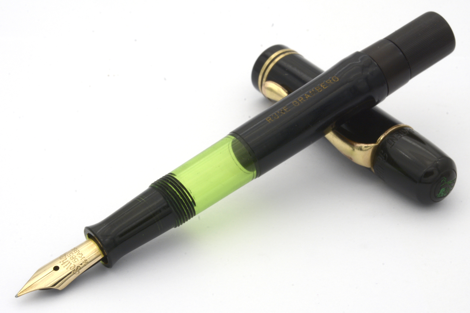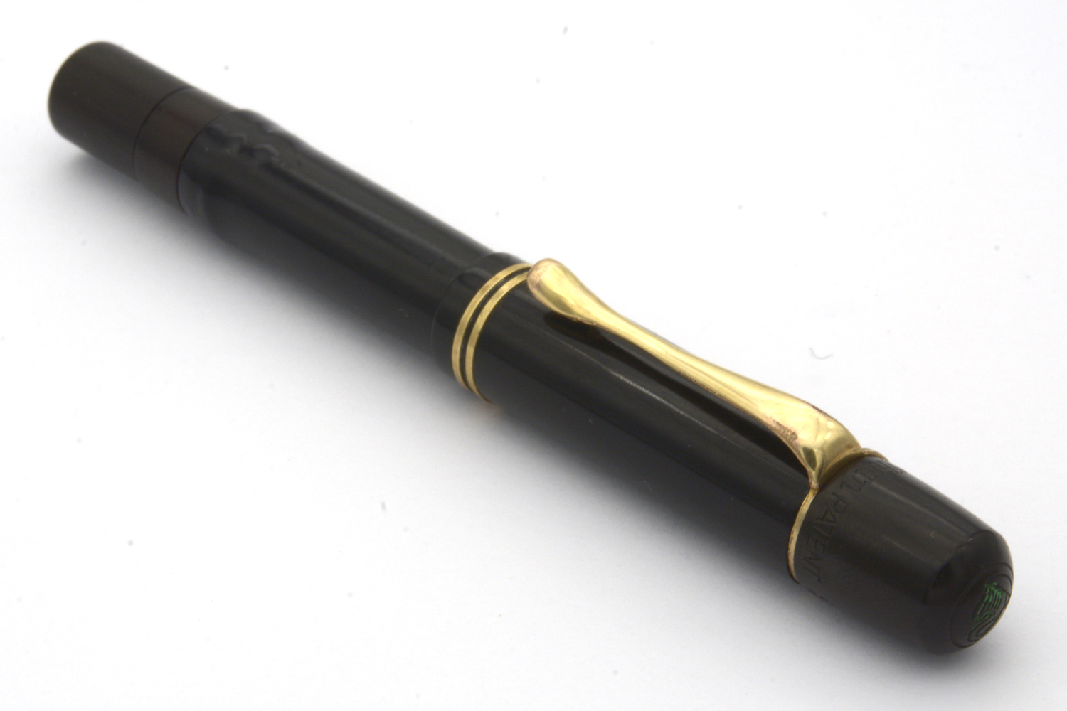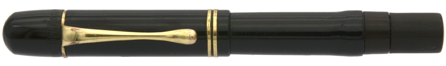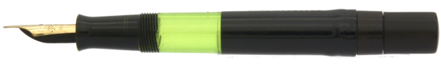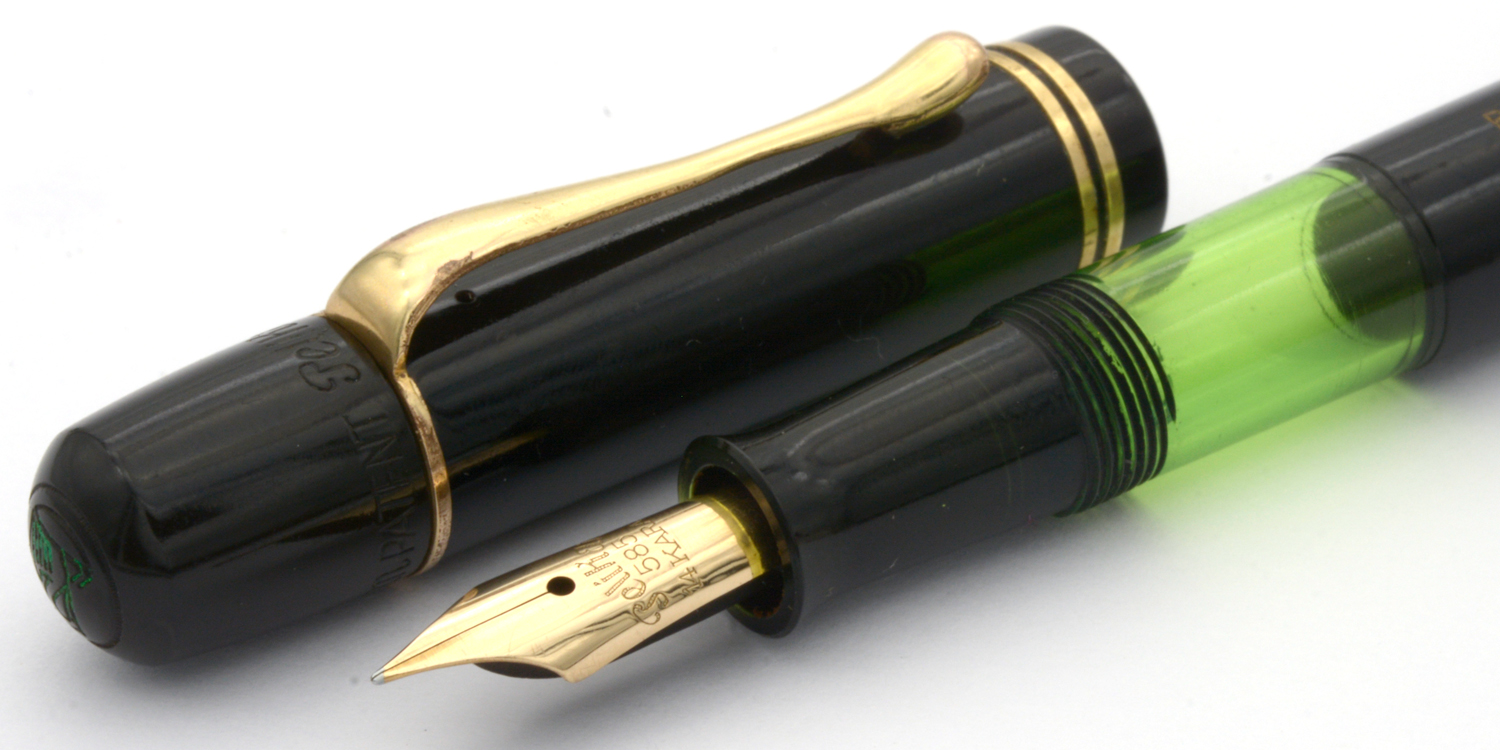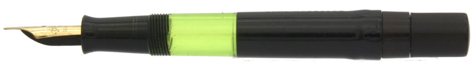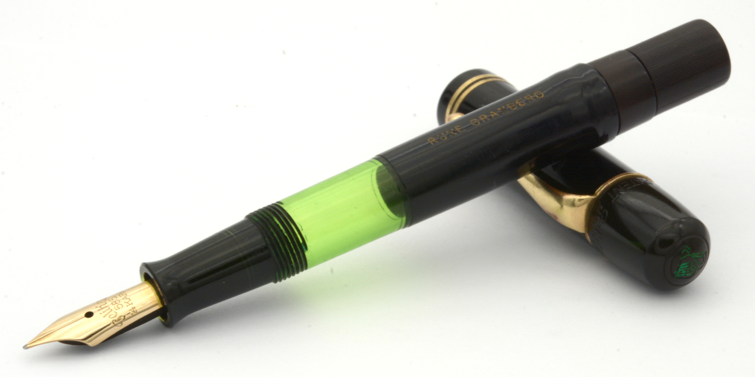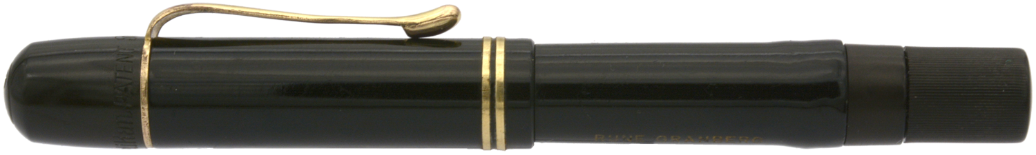 Detta är en penna i bättre bruksskick där bläckfönster och förgyllning åldrats väl, som numera är försedd med en nytillverkad kork. Som skrivare är en relativt kort penna, men inte obekvämt kort. Eftersom huven inte låter sig postas ordentligt är det dock ingen penna för den som önskar en lång penna. Dess stift har en svag flex men är i grunden styvt till karaktären. Vid lätt spetstryck skriver pennan med F-bredd för att med ett tydligt högre tryck (motvilligt) dra linjer upp till B-bredd.