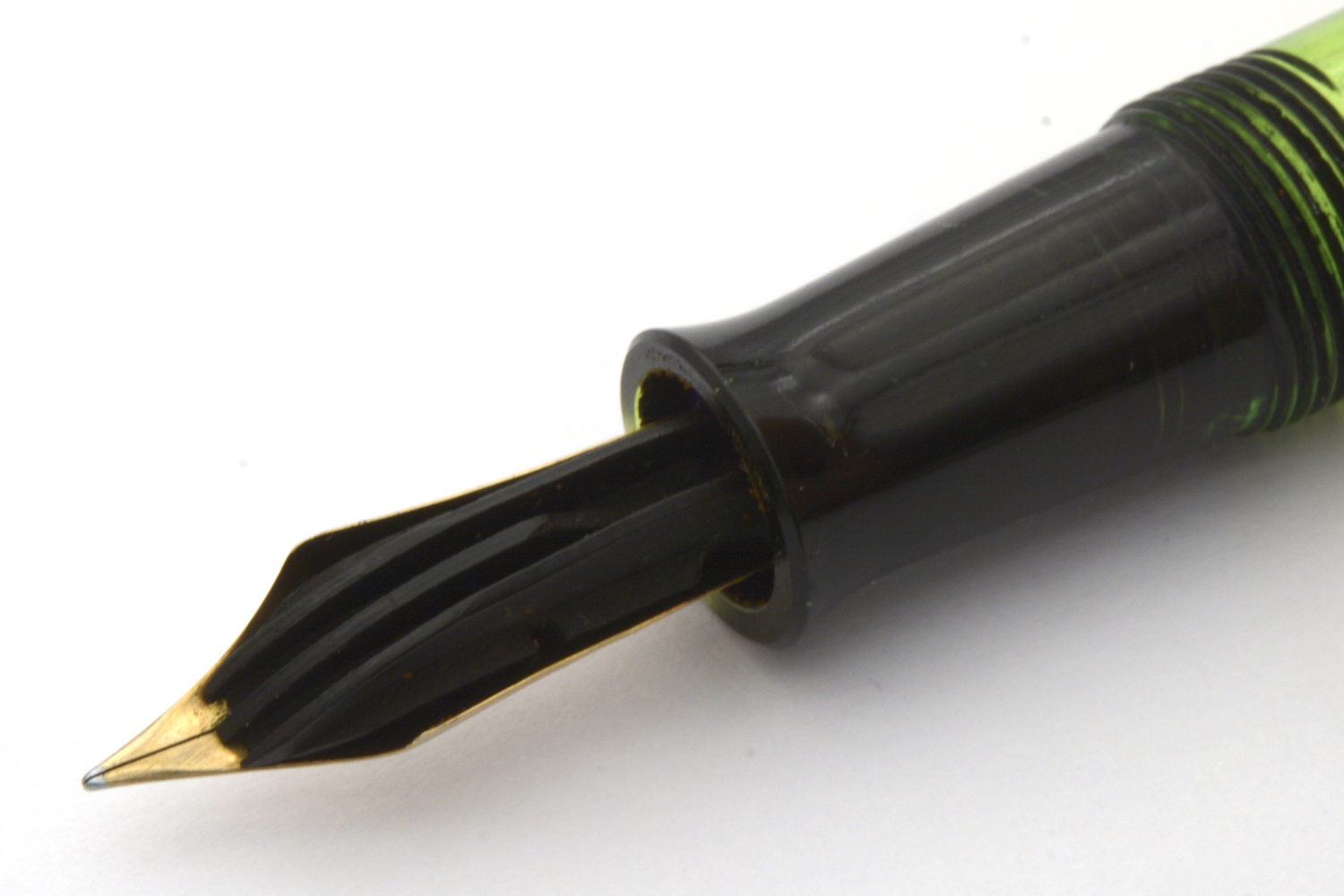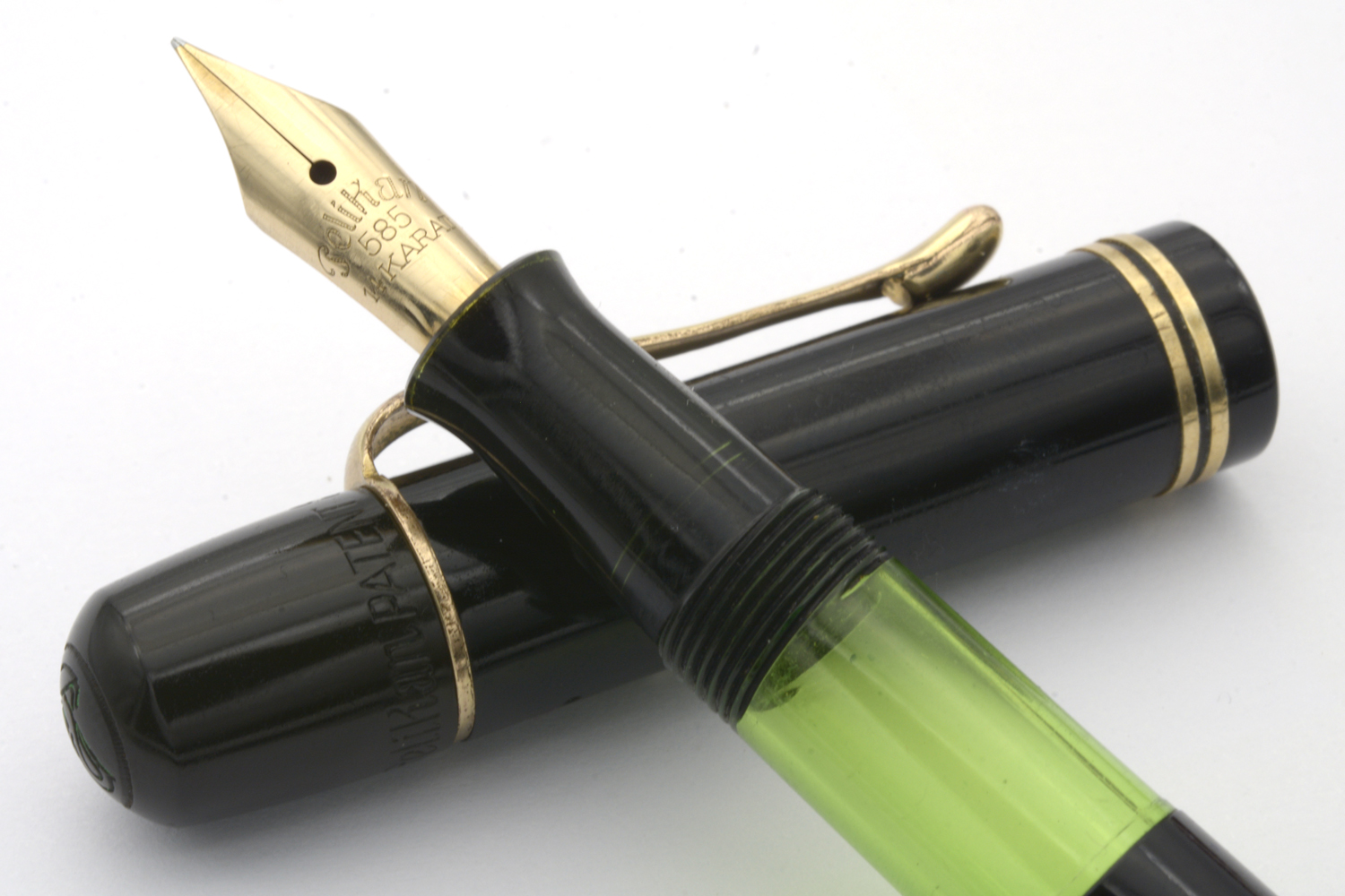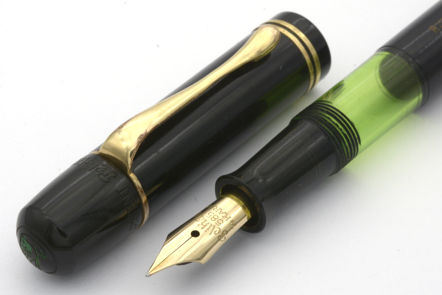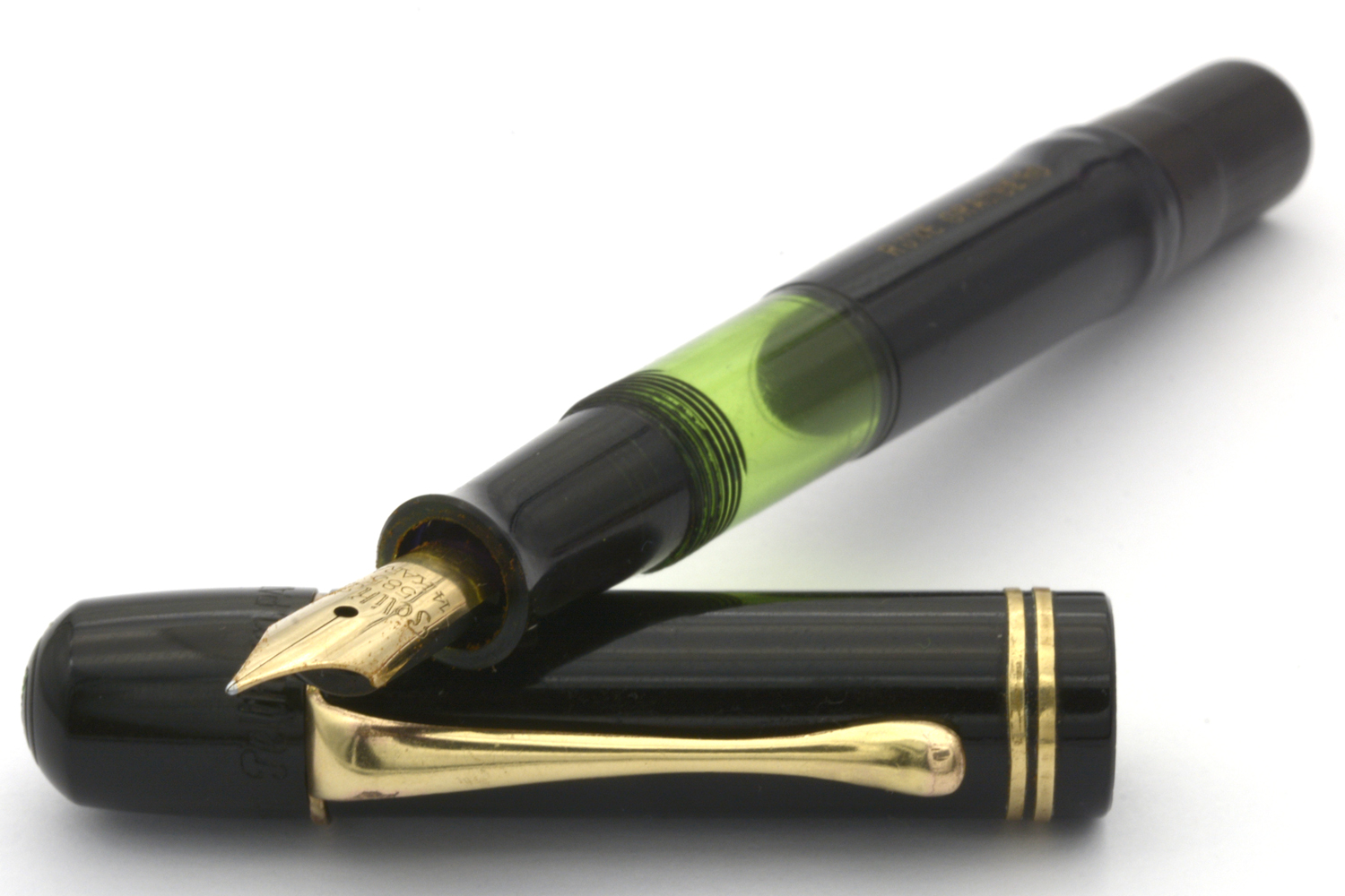 Detta är en penna i bättre bruksskick där bläckfönster och förgyllning åldrats väl, som numera är försedd med en nytillverkad kork. Som skrivare är en relativt kort penna, men inte obekvämt kort. Eftersom huven inte låter sig postas ordentligt är det dock ingen penna för den som önskar en lång penna. Dess stift har en svag flex men är i grunden styvt till karaktären. Vid lätt spetstryck skriver pennan med F-bredd för att med ett tydligt högre tryck (motvilligt) dra linjer upp till B-bredd.