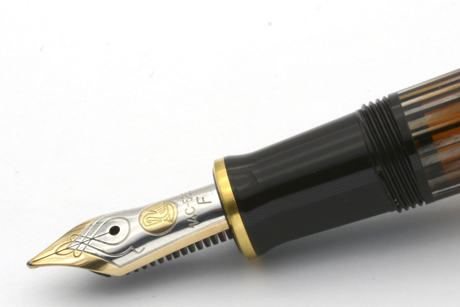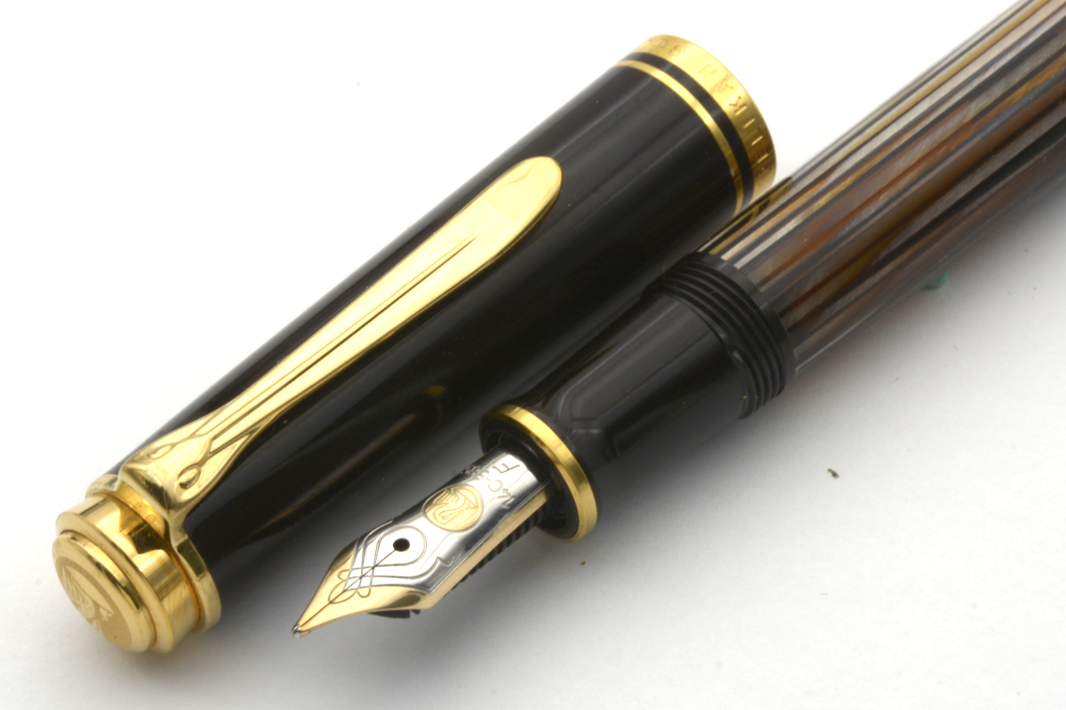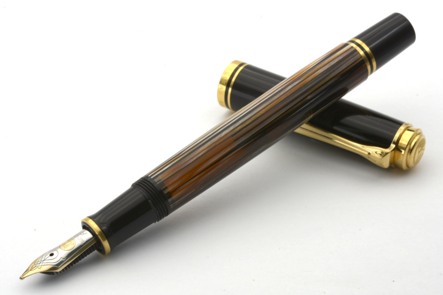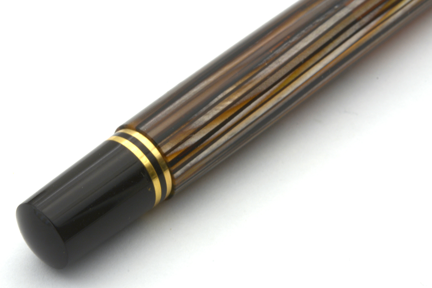 Denna Souverän M400 Tortoiseshell-Brown släpptes i en specialutgåva i september 2016 och såldes därefter under en begränsad tid med ett rekommenderat försäljningspris på 340 euro. Pennan har den ikoniska brunrandiga behållaren med orange ränder av cellulosaacetat och är försedd med clips och ringar pläterade med 24 karats guld och ett tvåfärgat guldstift.