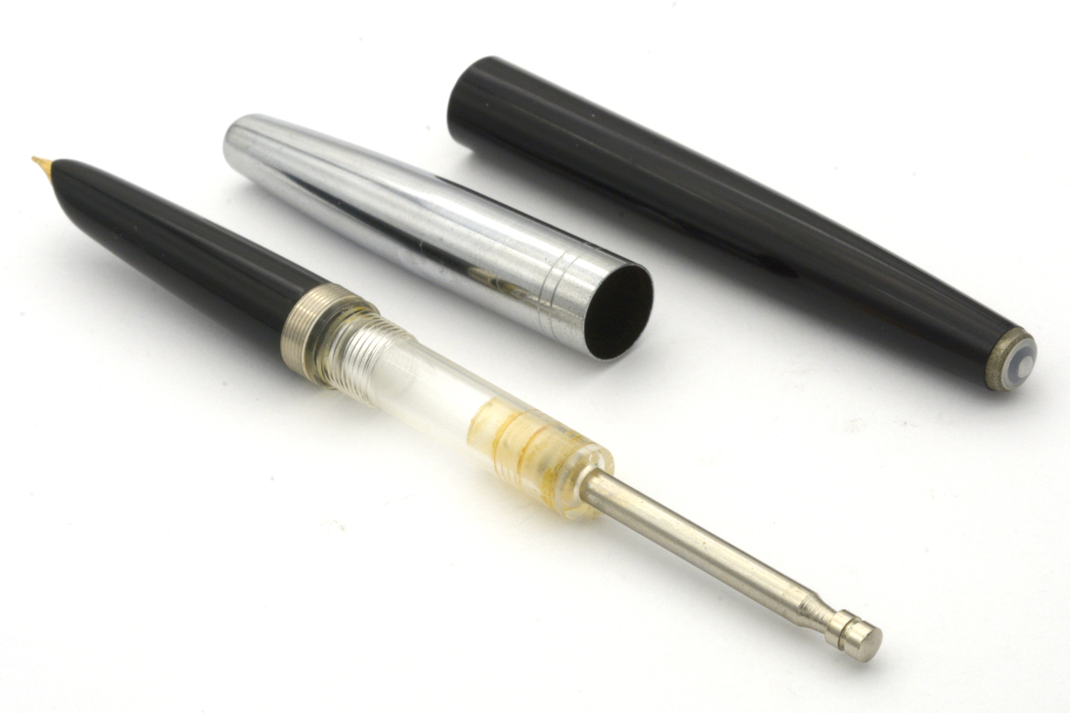 Pennan har ett täckt stift och intern kolvfyllare - som har vissa likheter med moderna konverters – som känns ganska skör i utförandet, men väl fungerar väl så länge den fungerar. Stiftet är smalt och stumt och liknar mer än kulspetspenna än en reservoarpenna till karaktären – med en spets som skriver med EF-bredd utan att kräva något spetstryck.