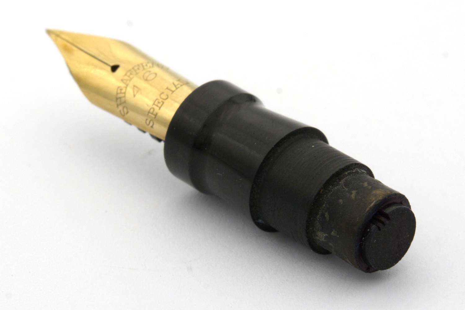 Denna över nittio år gamla penna är väldigt lätt att tycka om. Exteriört är den i riktigt bra skick med få ytliga skråmor, god förgyllning och bra prägling, men det är framför allt som skrivare som den utmärker sig. Utan huv är det en kort penna, dock inte kortare än att den fungerar att använda under kortare skrivsessioner, men med huven postad får pennan en längd och vikt som gör den till en väldigt trevlig skrivkamrat under längre sessioner. Än idag är stiftet precis som Shaeffer utlovade – stelt och på samma gång tillräckligt mjukt och följsamt för att skapa en njutningsfull skrivning – och skriver med F-bredd med bra bläckflöde och utan att kräva någon spetstryck alls. Med J Herbin-bläck blir skriften lite blöt, vilket samtidigt ger linjerna karaktär och en behaglig skuggning.