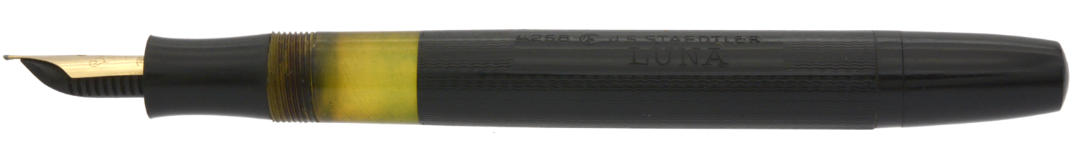 Denna Staedtler Luna är lätt att tycka om, speciellt om man som jag är förtjust i tyska 1940-talspennor. Pennan hittades på Erikshjälpen och när den fortfarande var osåld efter flera månader kunde jag inte låta bli att köpa den. Pennan låg hos mig några veckor innan jag började testa och visade sig då vara i bättre skick än jag vid första anblicken trott. Ytterligare några dagar senare var pennan utlånad till en potentiell köpare som var på jakt efter en penna med god flex.