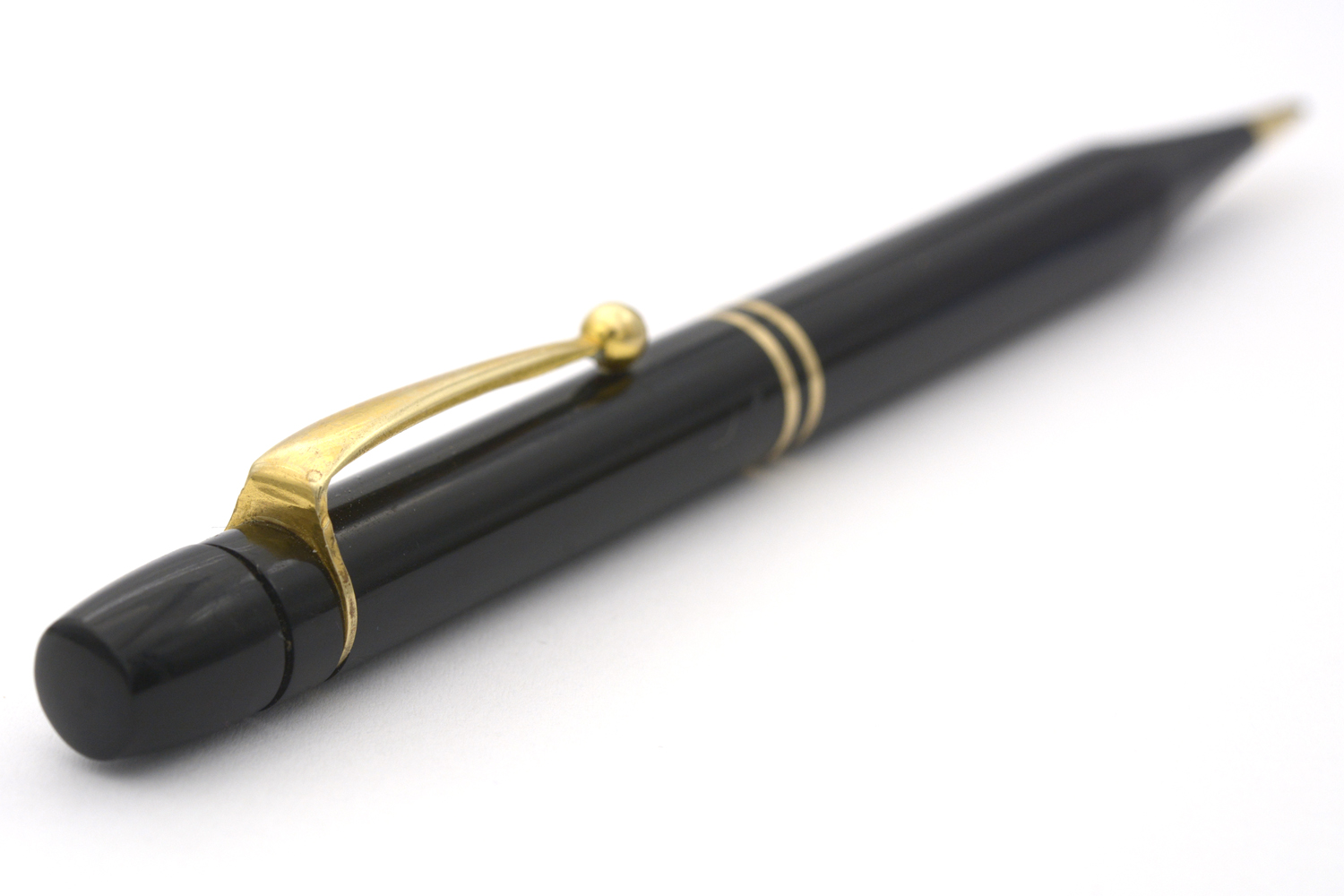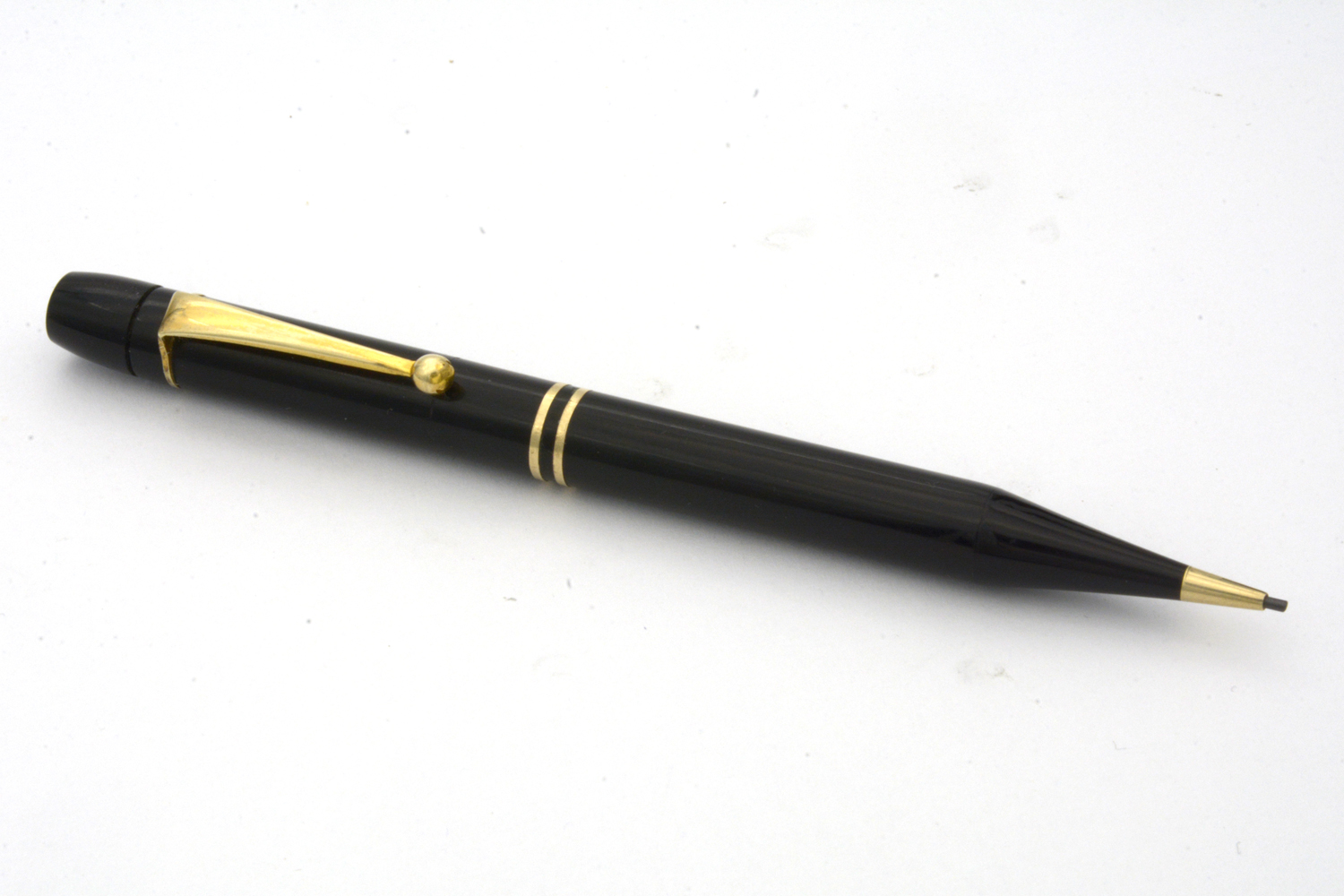 Denna fullt fungerande, namnlösa stiftpenna är gissningsvis från 1930/40-talet. Pennan ligger skönt balanserad i handen och använder 1,1 mm blyertsstift. Pennans längd: 132 mm. Vikt: 15,6 gram.