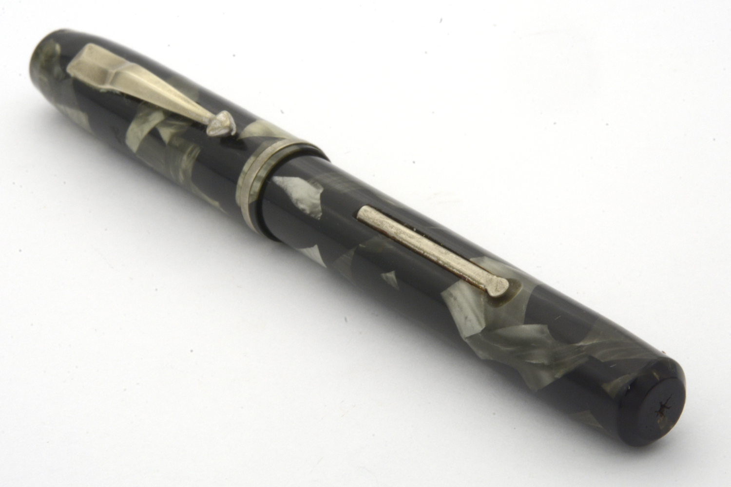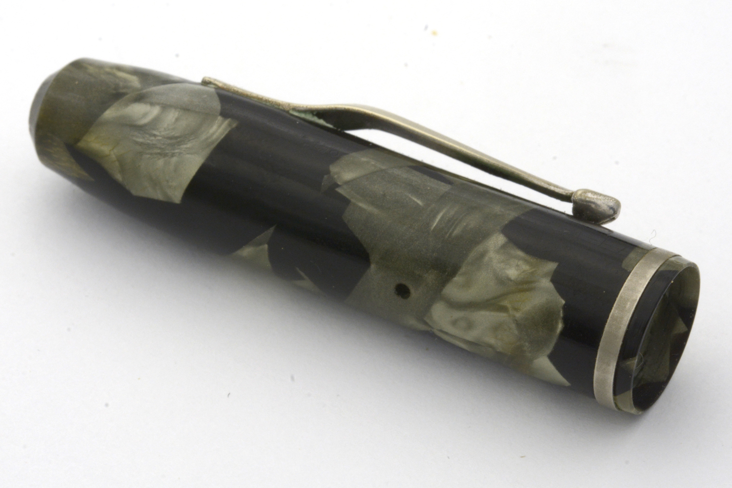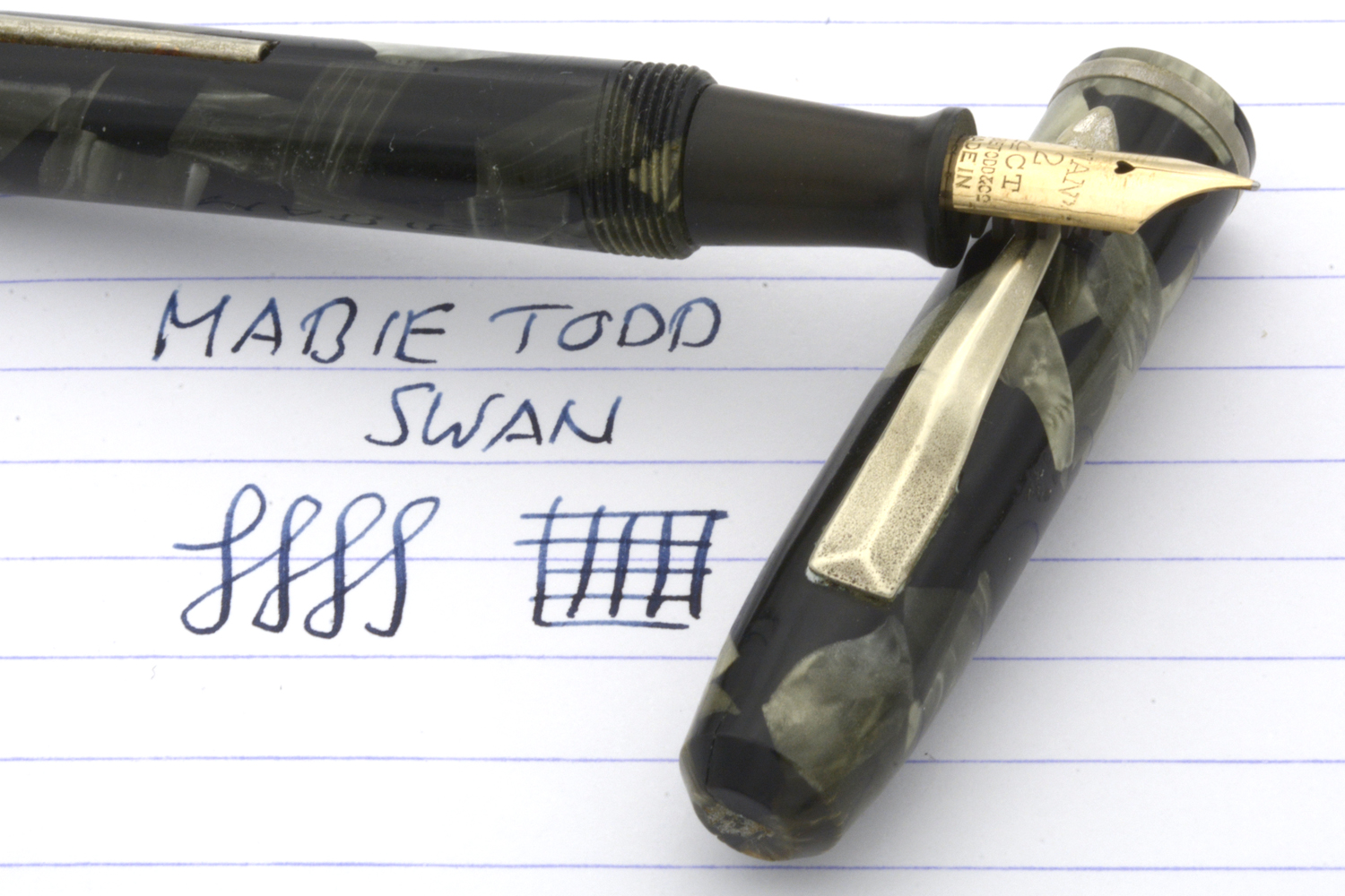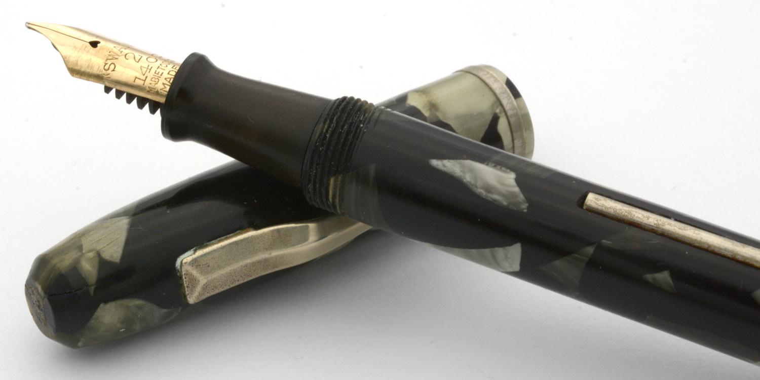 Denna Swan Self-Filling Pen har samma prägling som de pennor som tillverkades på 1920-talet, men har ett clips som signalerar att den med stor sannolikhet är tillverkad under Mabie Todds sista år i USA innan man lade ner tillverkningen där och flyttade allt till England. På pennans behållare finns en inpräglad »8.» som eventuellt kan tolkas som en datering a la samtida Parker-pennor.