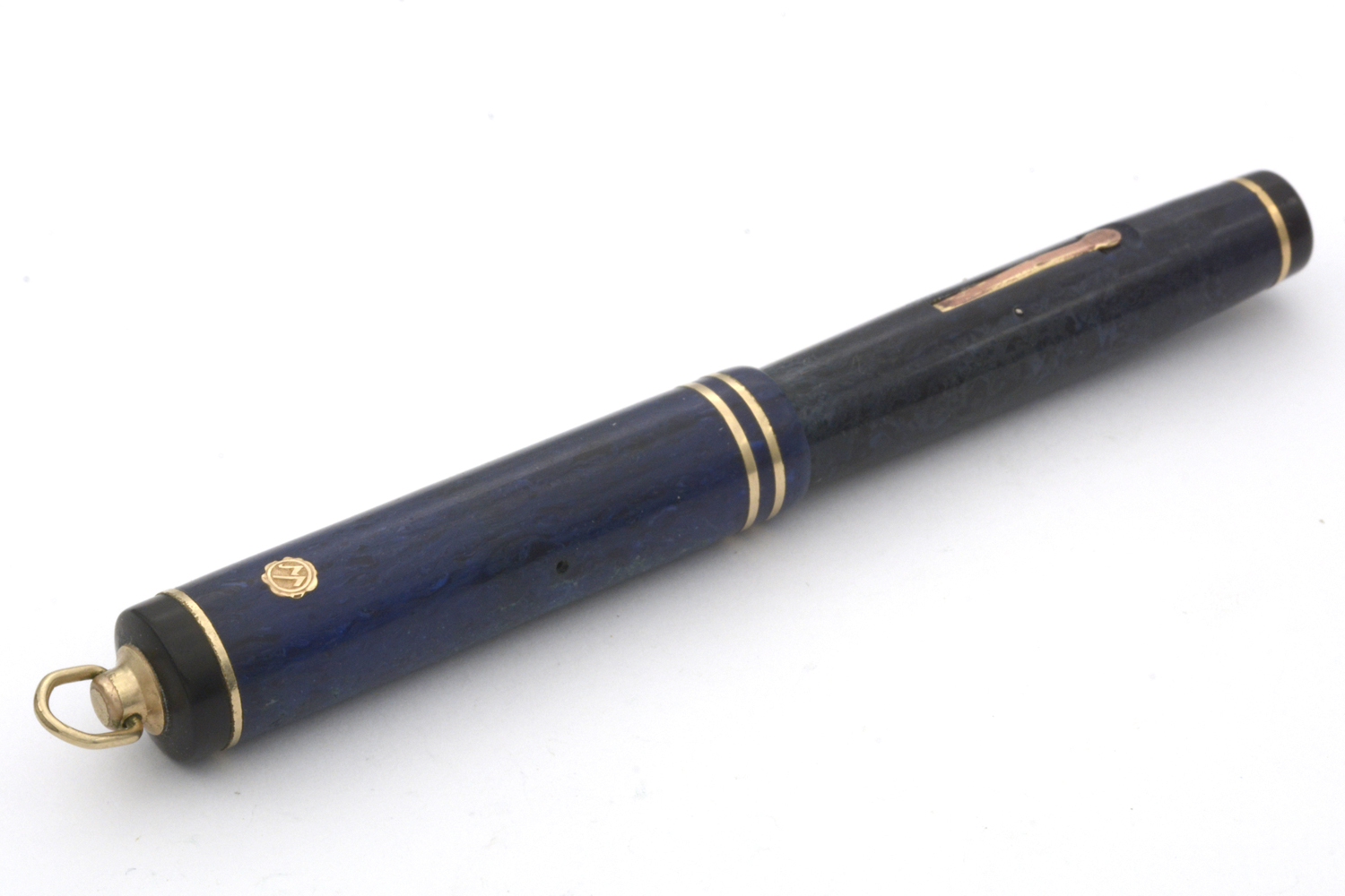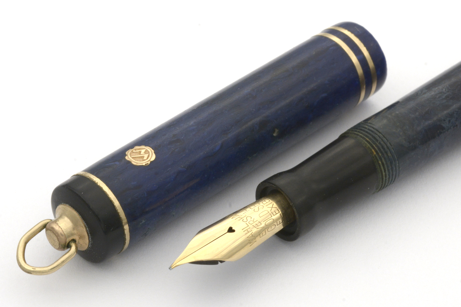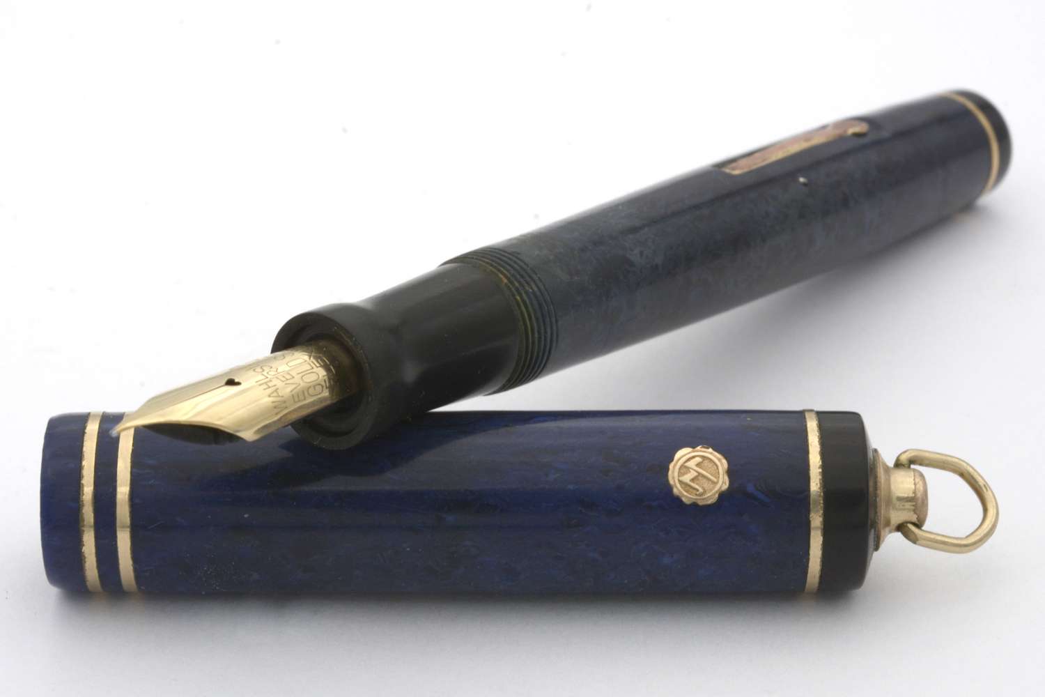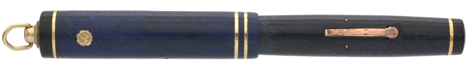 Denna renoverade, fullt fungerande blåmarmorerade (»Laculitic Blue») Wahl-Eversharp är en hävstångsfyllare tillverkad någon gång mellan 1929–32. Pennans behållare är svagt missfärgad och förgyllningen är lite sliten, men generellt är pennan i bra skick med tanke på dess ålder. Med lätt spetstryck skriver pennans urskruvbara »Personal Point»-guldstift (märkt »Gold Seal Flexible») med smal F-bredd för att med högre tryck – och allt tydligare feedback – ha flex till BB-bredd, hela tiden med bra bläckflöde. Längd: 115 mm. Vikt: 14,9 gram.