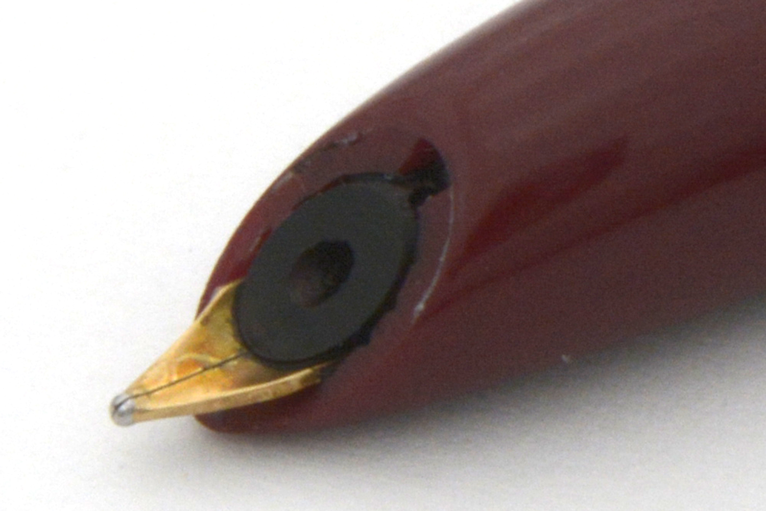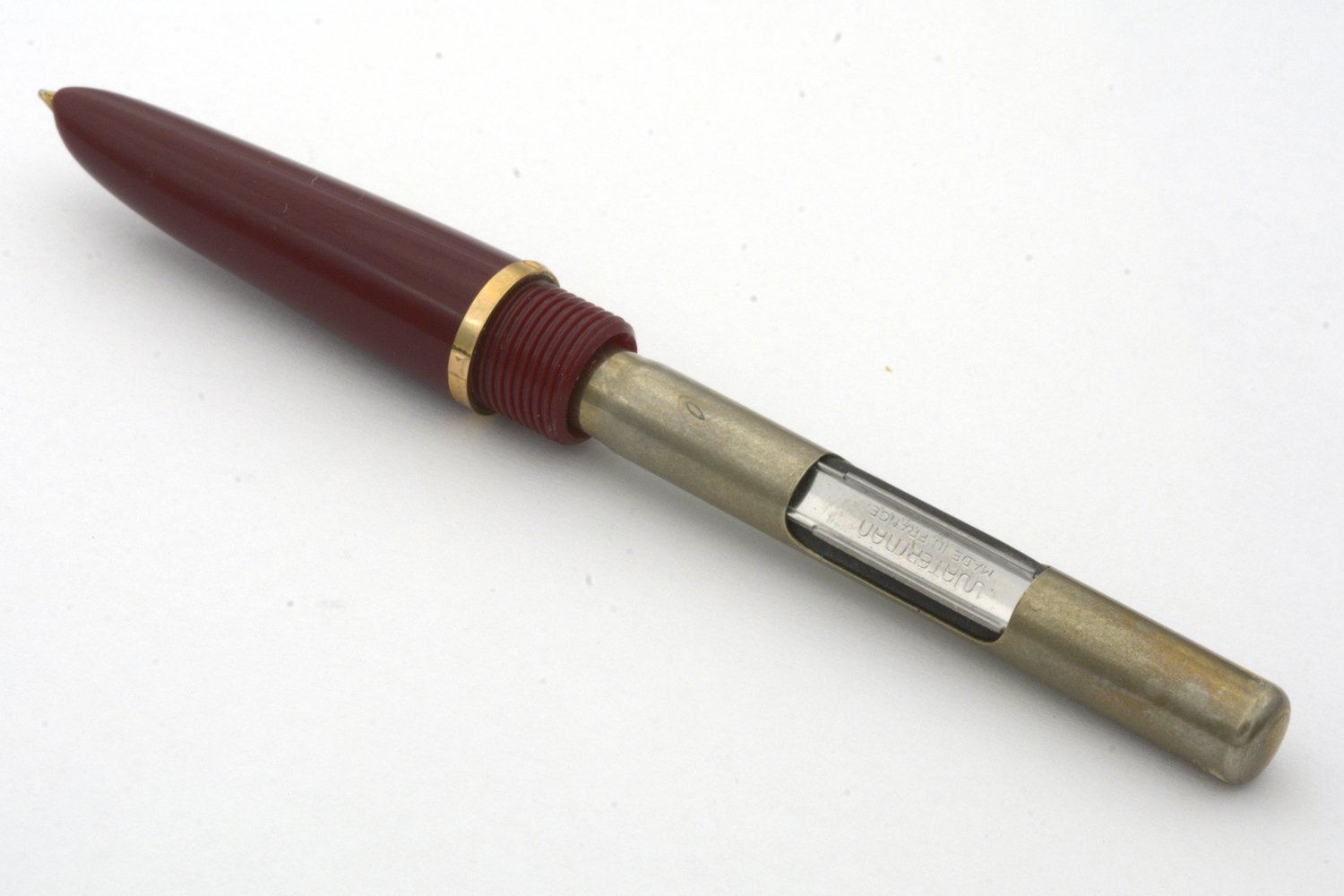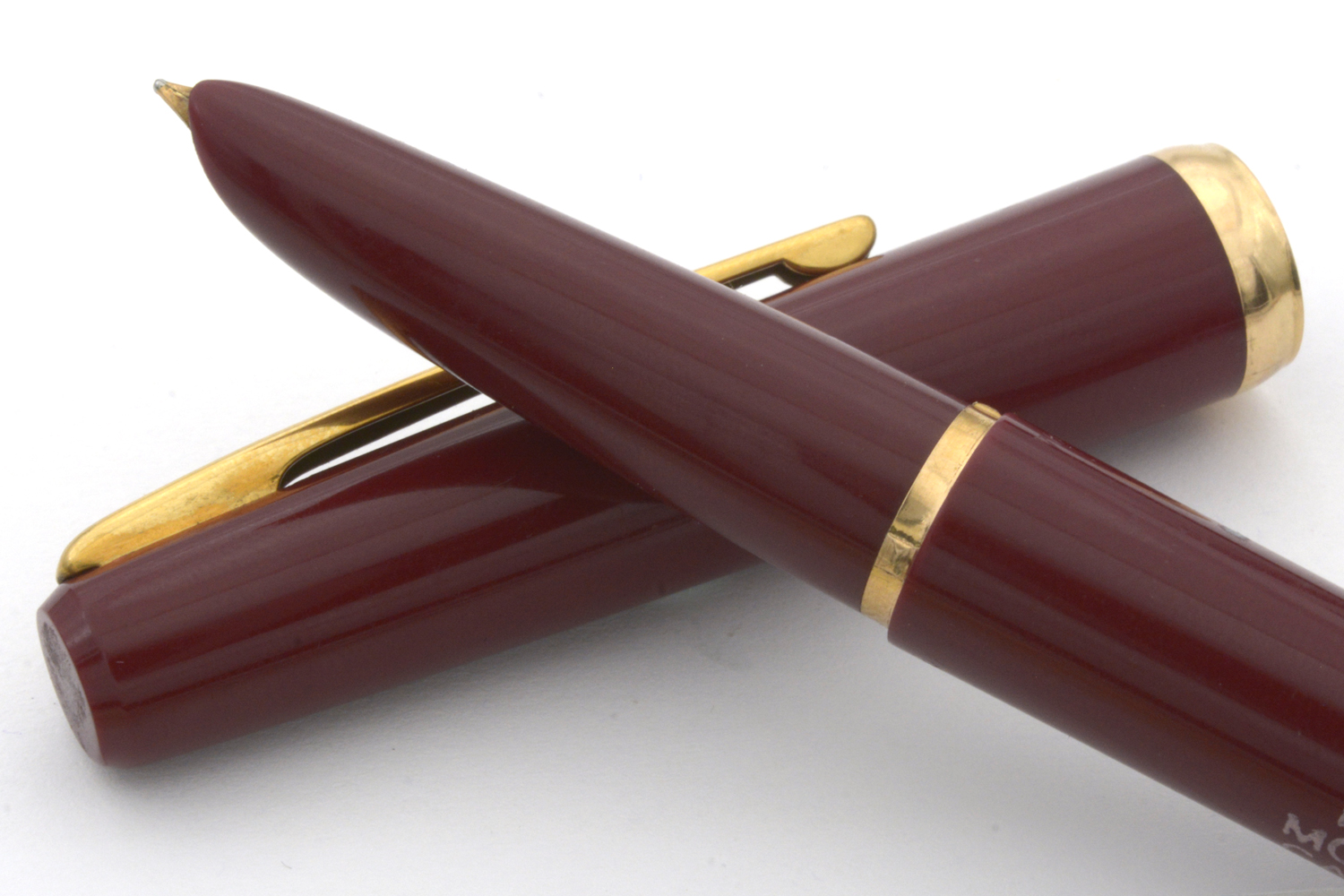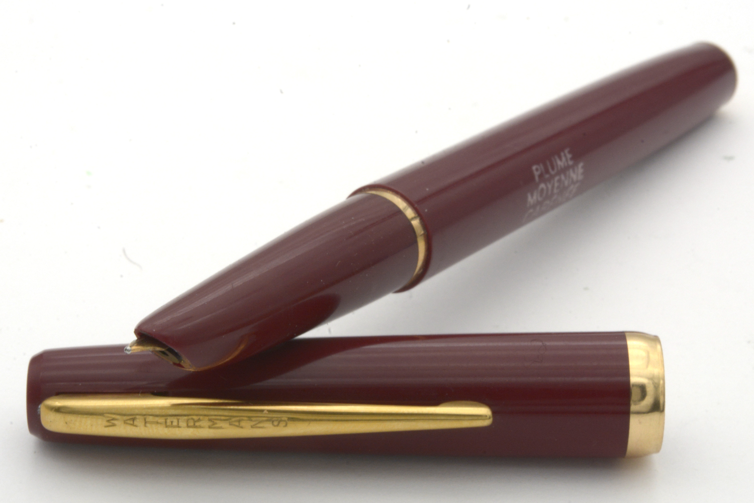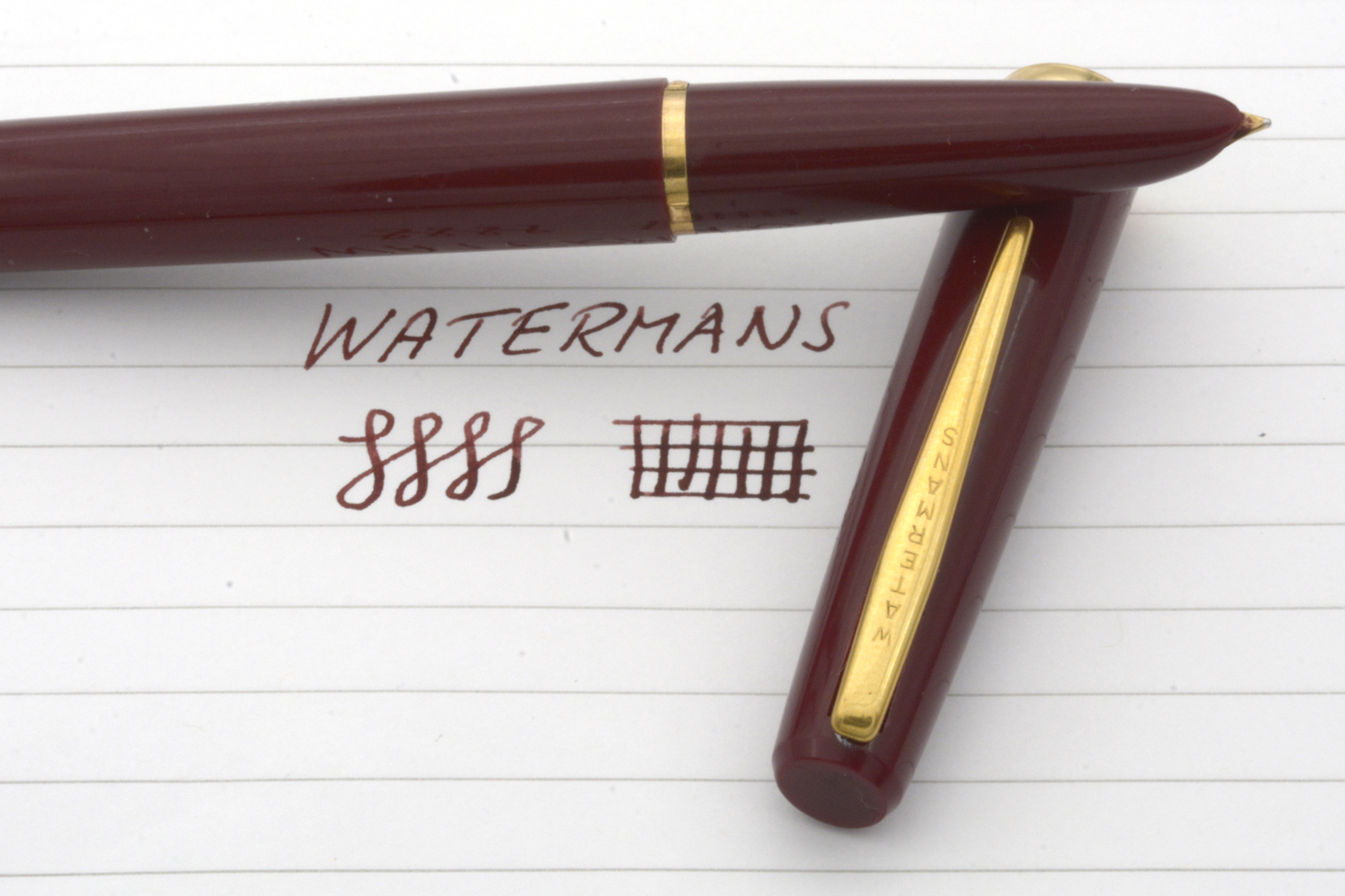 Denna fullt fungerande vinröda Waterman Ligne 60, tillverkad i Frankrike på 1960-talet, är en nätt och trevlig skrivare försedd med Watermans »Jif-Matic-fyllning» som troligen använts synnerligen sparsamt. Pennans dolda guldstift (troligen 18 karat) flyter mjukt och lätt över pappret och skriver med M-bredd. Pennans längd: 133 mm. Vikt: 13,7 mm.