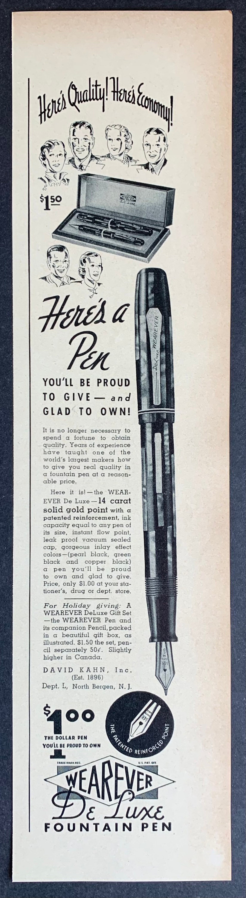 Wearever, Jefferson, Leeds, Onward och Pioneer är modellnamn på pennor tillverkade av David Kahn, Inc. Företaget grundades 1896 i North Bergen, N.J., vilket troligen var något eller några år efter att Kahn emigrerat till USA för att verka som gravör, men det var först runt 1918 som Wearever – Kahns mest kända penna – dök upp som modellnamn.